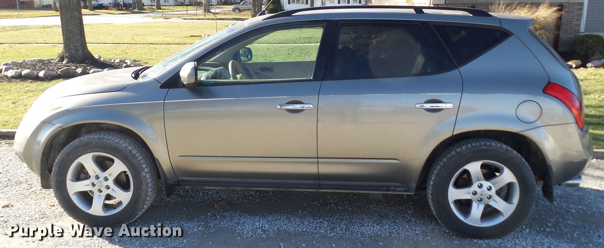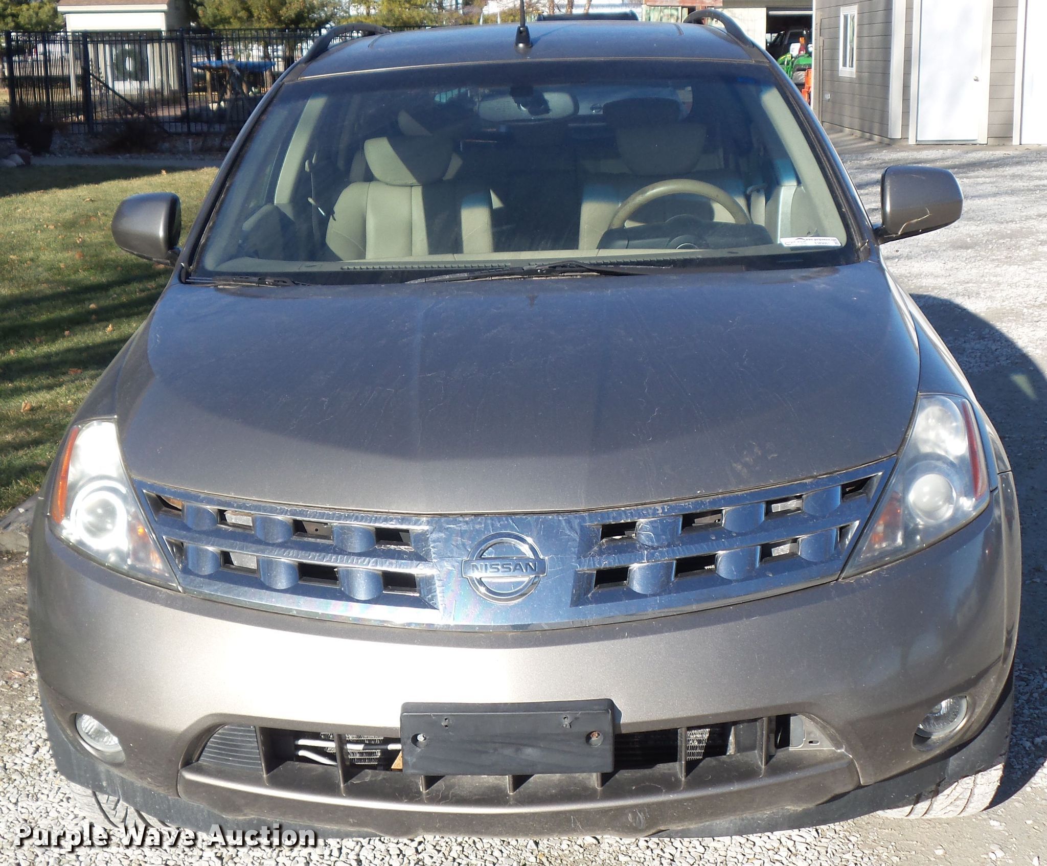 Purple Wave is selling a used Passenger Vehicle in Iowa. This item is a 2004 Nissan Murano SL SUV with the following: 145,149 miles on odometer, 3.5L V6 DOHC 24V gas engine, Automatic transmission, All wheel drive, AC and heat, Cruise, Power windows and locks, Heated seats, Power sunroof, 245/60R18 tires, Possible transmission issues, shifts slowly