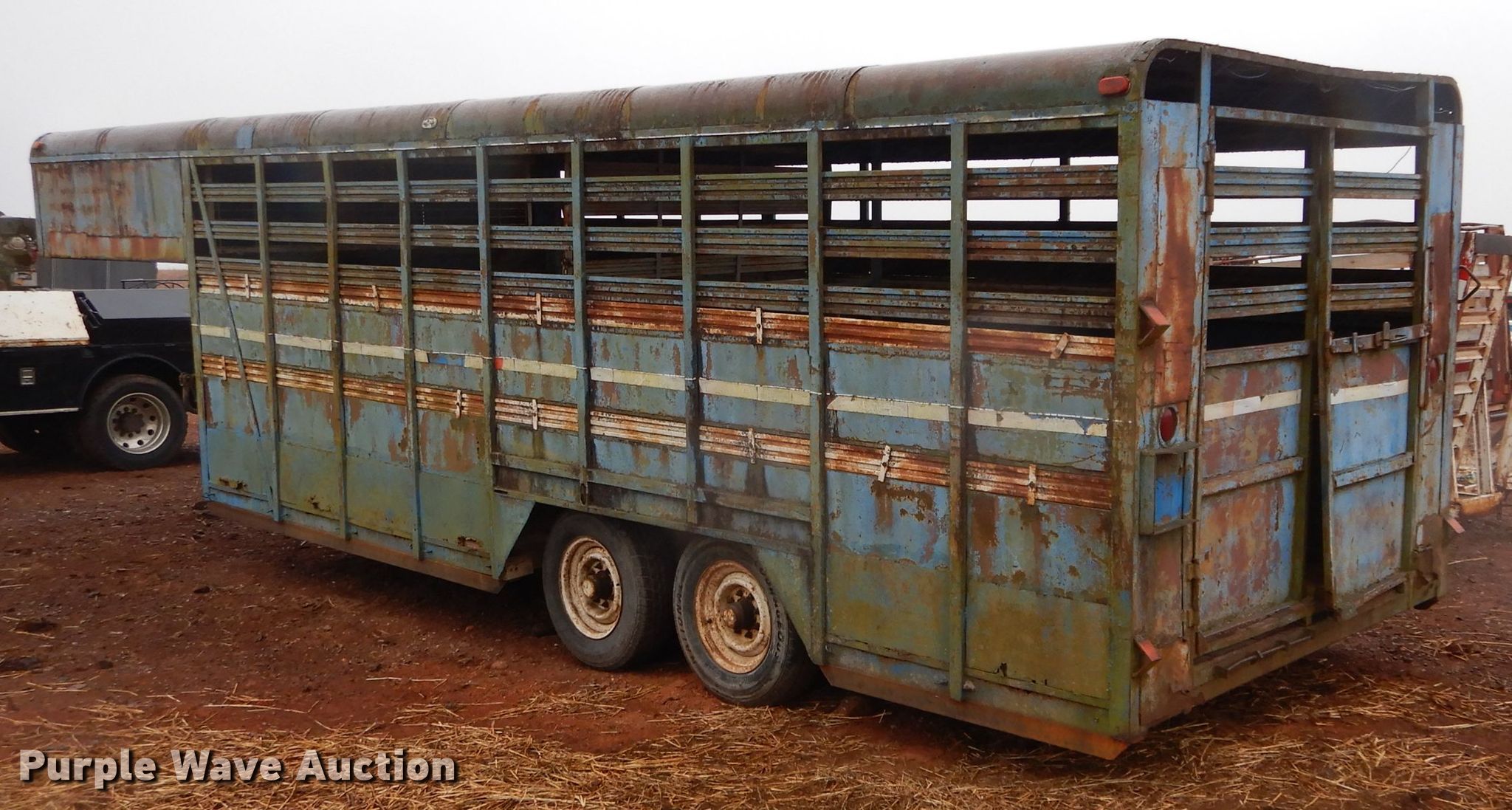 Purple Wave is selling a used Livestock Trailer in Oklahoma. This item is a Star livestock trailer with the following: 27'L overall, 20'L x 96"W deck, 94" interior width, Center gate, Tandem axle, Spring suspension, Electric brakes, 225/75R16 tires, Serial 102675