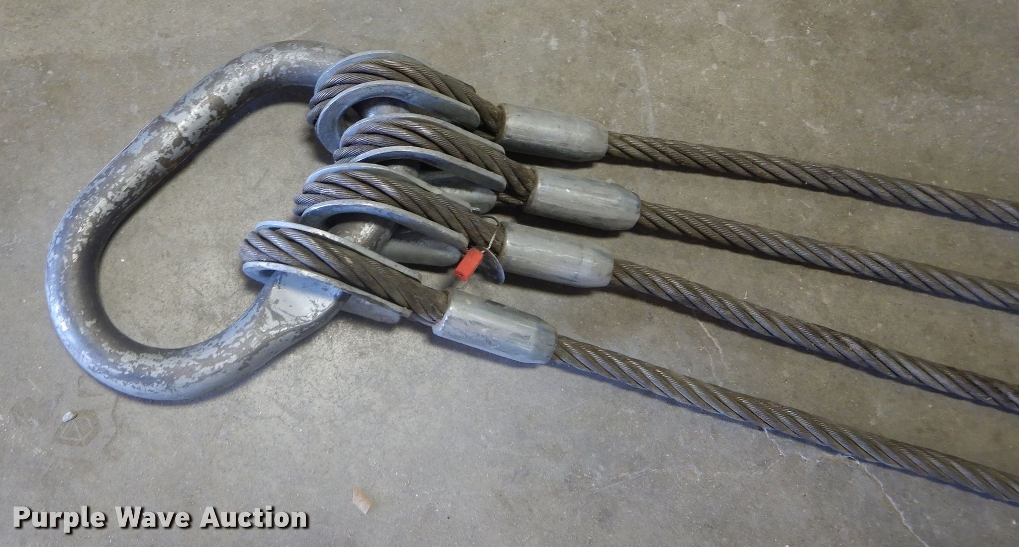 Purple Wave is selling a used Lifting and Rigging in Kansas. This item is a Four leg cable lifting sling with the following: Approx. 5'L cables