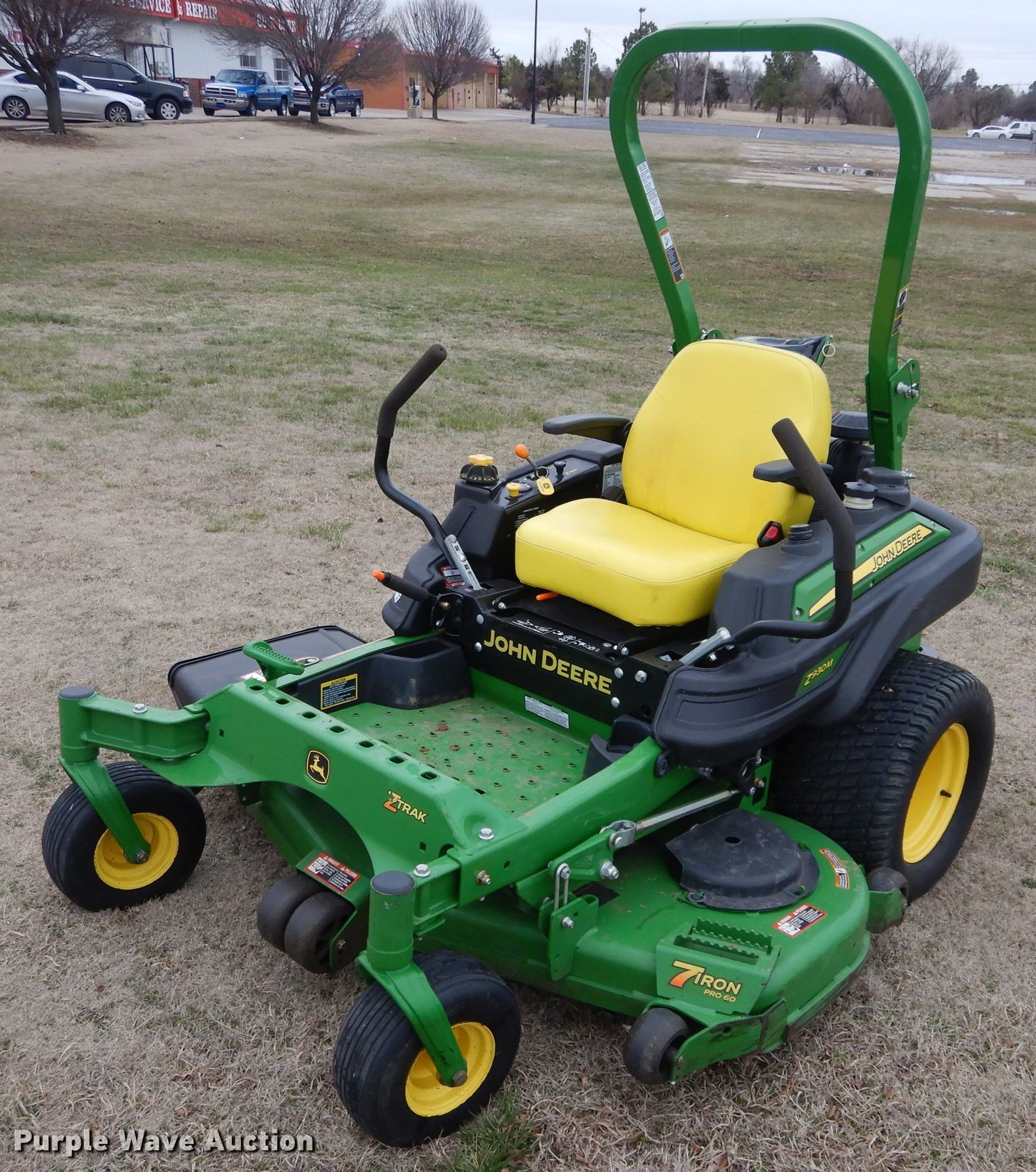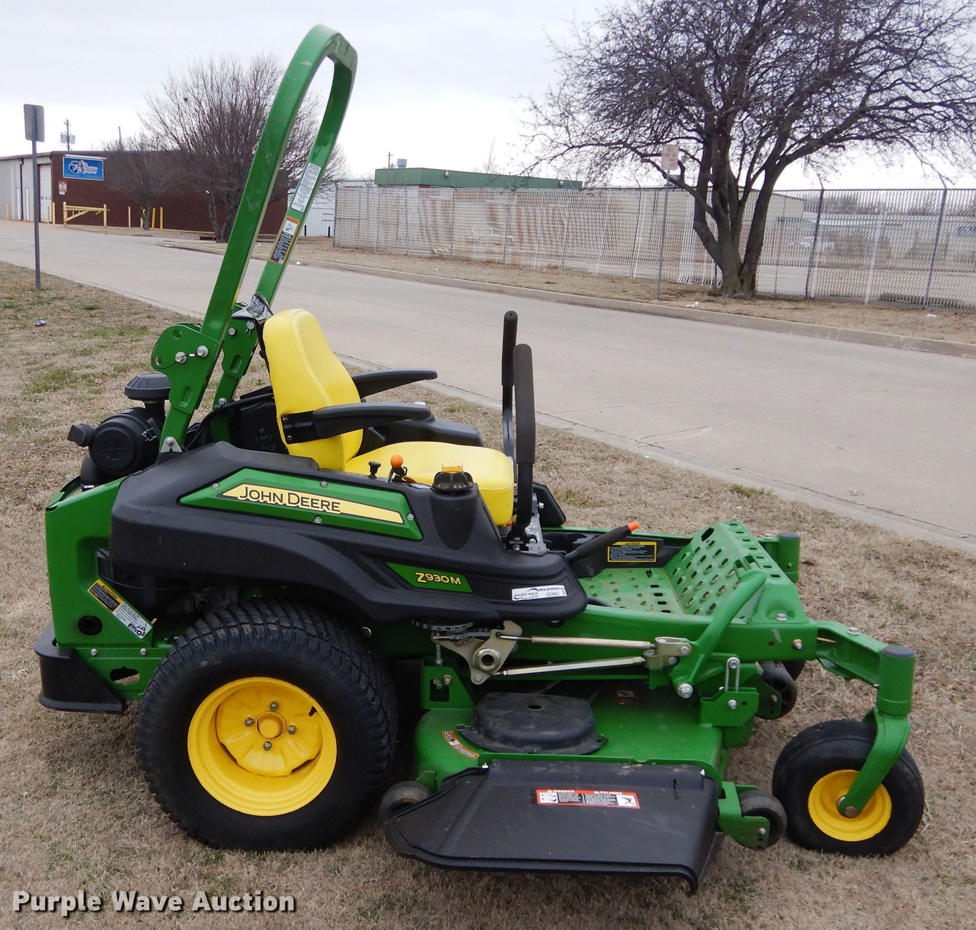Purple Wave is selling a used Commercial Turf Mower in Oklahoma. This item is a John Deere Z930M ZTR lawn mower with the following: 135 hours on meter, 60" cut, Kawasaki 0.852L two cylinder gas engine, Hydrostatic transmission, 18x6.50-6/4.50 front tires, 24x12.00-12 rear tires, Serial 1TC930MCCFT030307