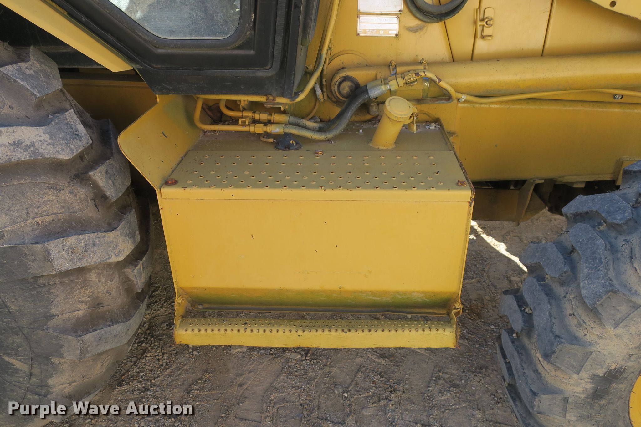 Purple Wave is selling a used Tractor Loader Backhoe in Missouri. This item is a 1994 Caterpillar 426B backhoe with the following: 6,373 hours on meter, Caterpillar four cylinder diesel engine, Serial 5HK17643, Shuttle shift transmission, Four wheel drive, Differential lock, EROPS, Heat, Wobble stick backhoe controls, 87"W loader bucker, Bolt-on cutting edge, 24"W backhoe bucket, Weld-on cutting edge, (5) teeth, 12.5/80-18 front tires, 19.5L-24 rear tires, Glass cracked, Serial 5YJ02093