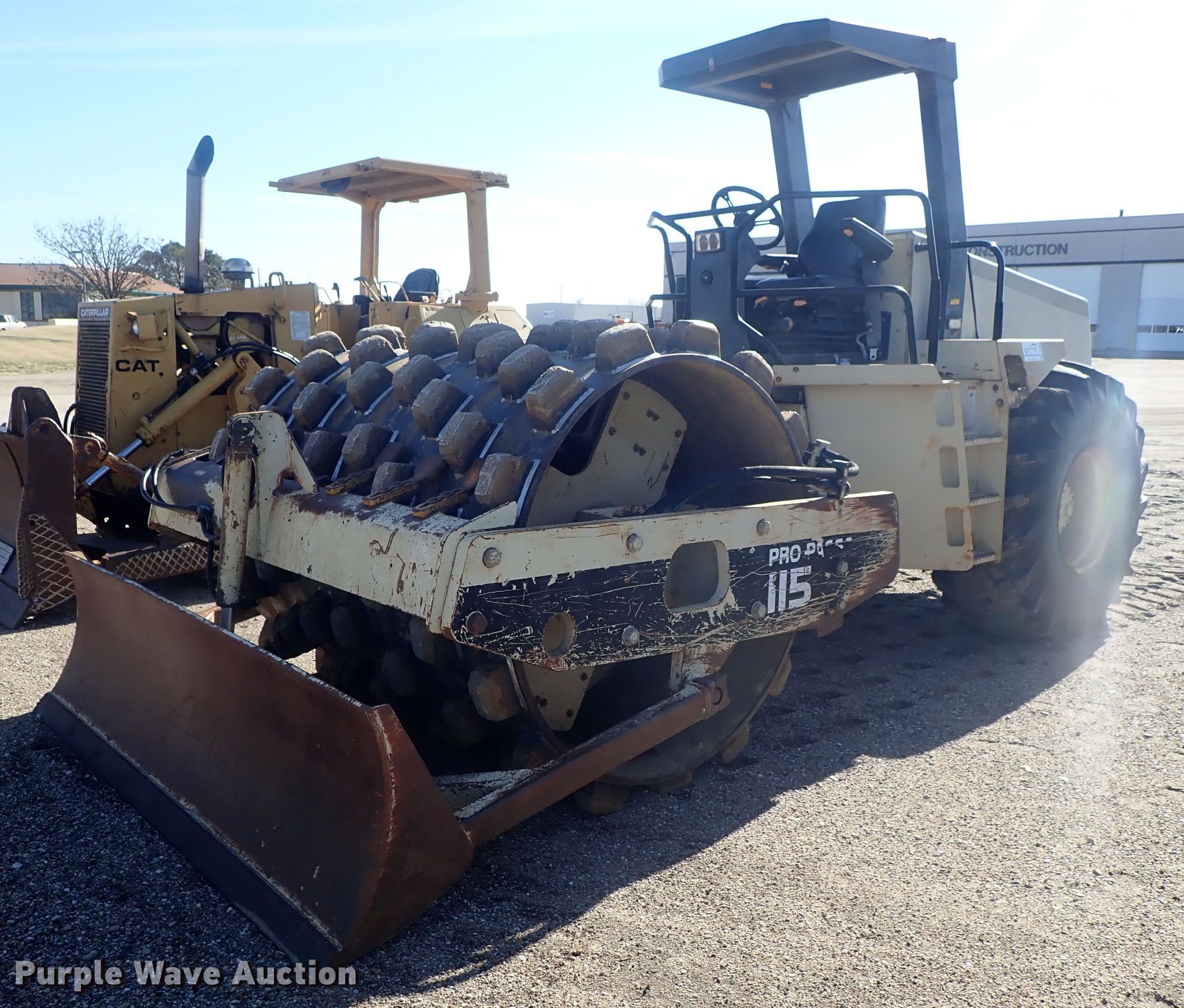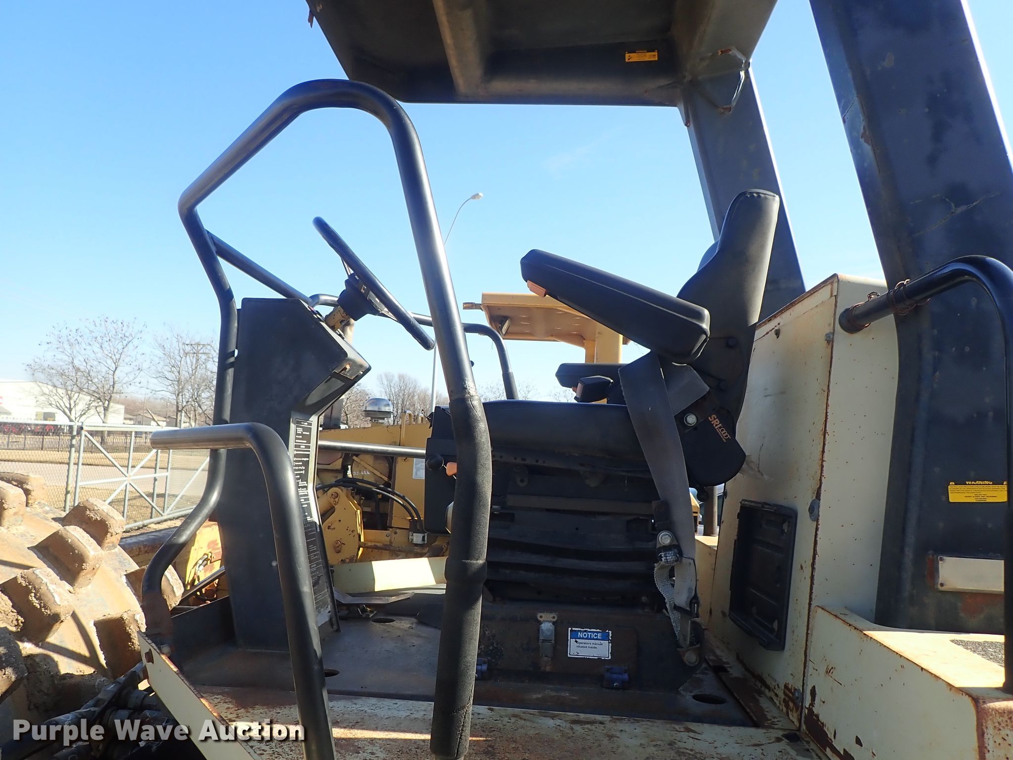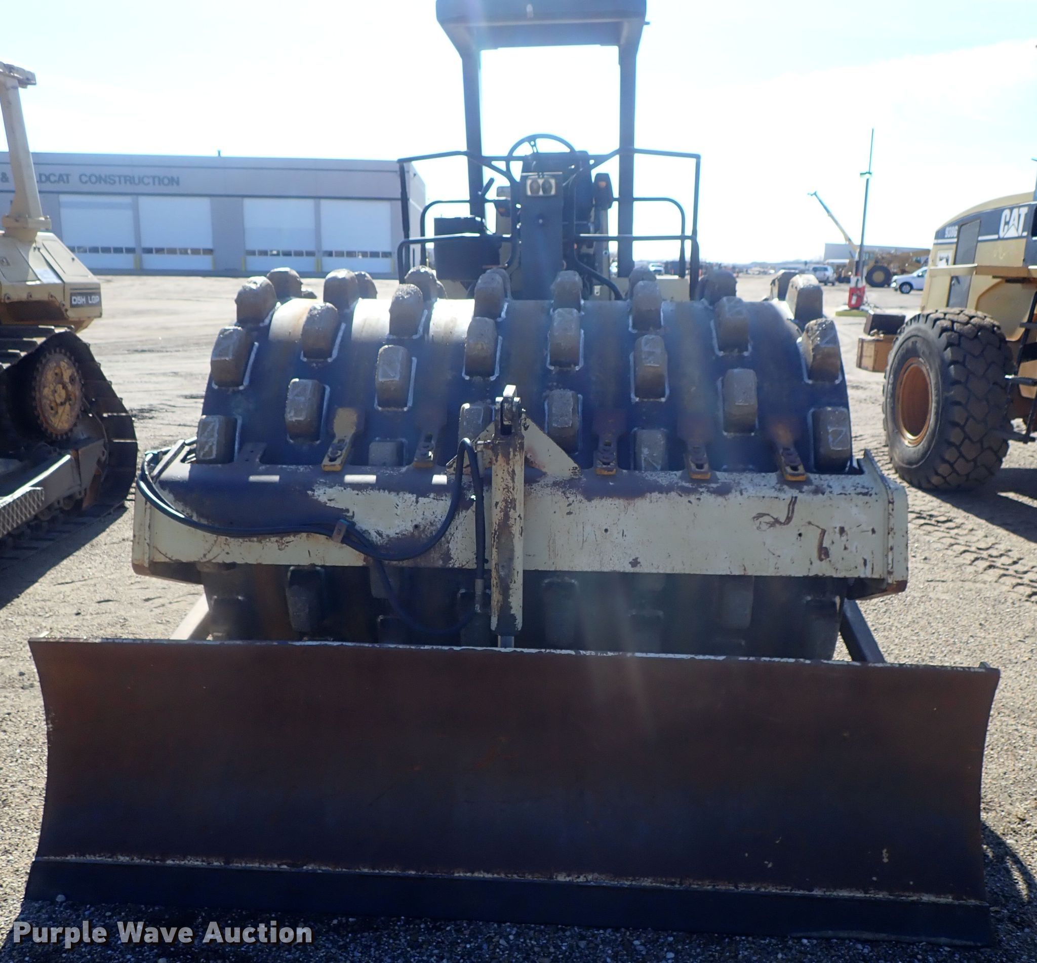 Purple Wave is selling a used Single Drum Roller Compactor in Kansas. This item is a 1997 Ingersoll Rand SD-115F single drum vibratory roller with the following: 5,714 hours on meter, Cummins six cylinder diesel engine, Hydrostatic transmission, OROPS, 84"W x 59" diameter pad foot drum, Two speed vibratory system, 100"W front blade, Steel wheels, 23.1-26 tires, Serial 151568, Unit# 64.07L