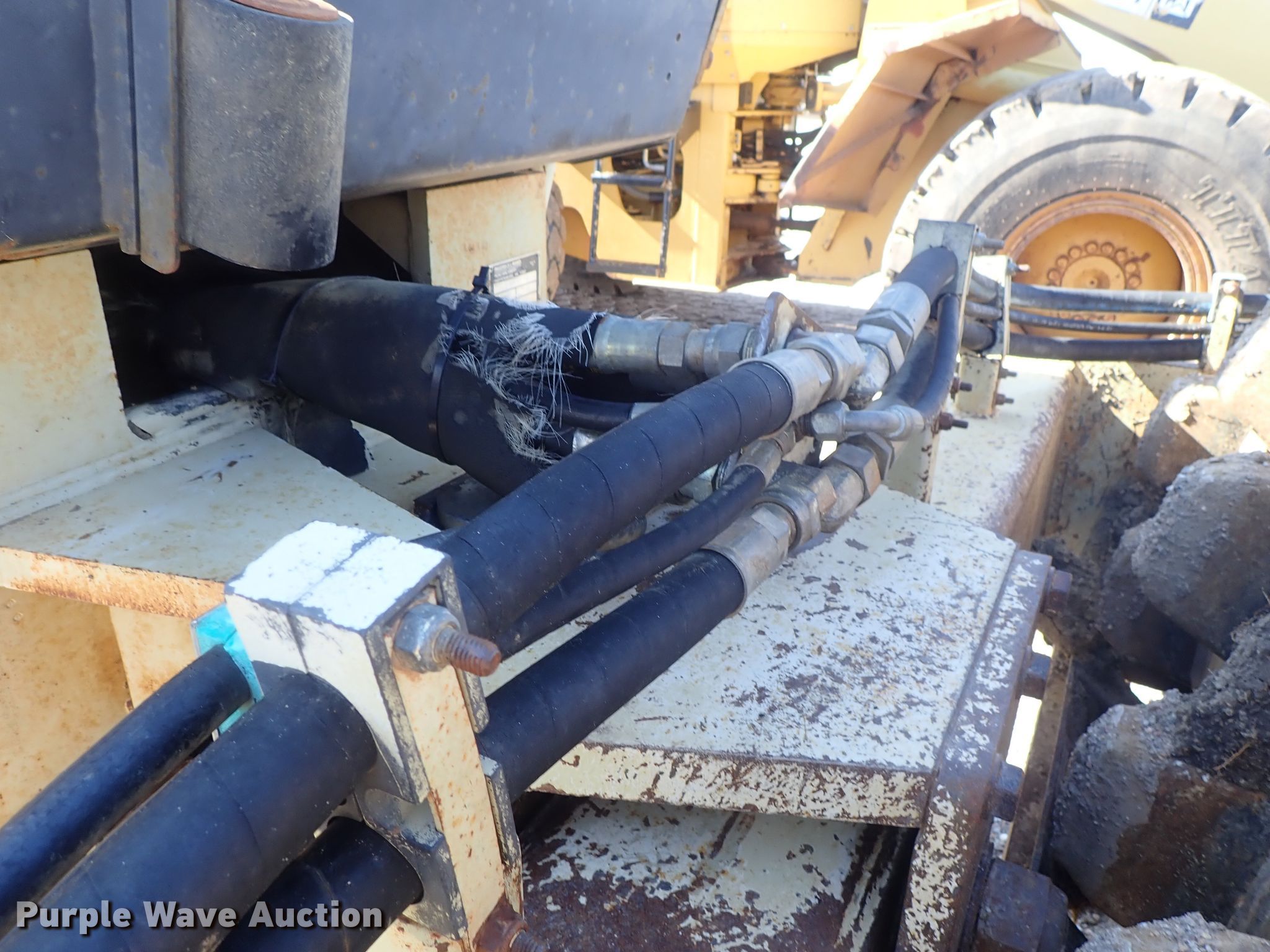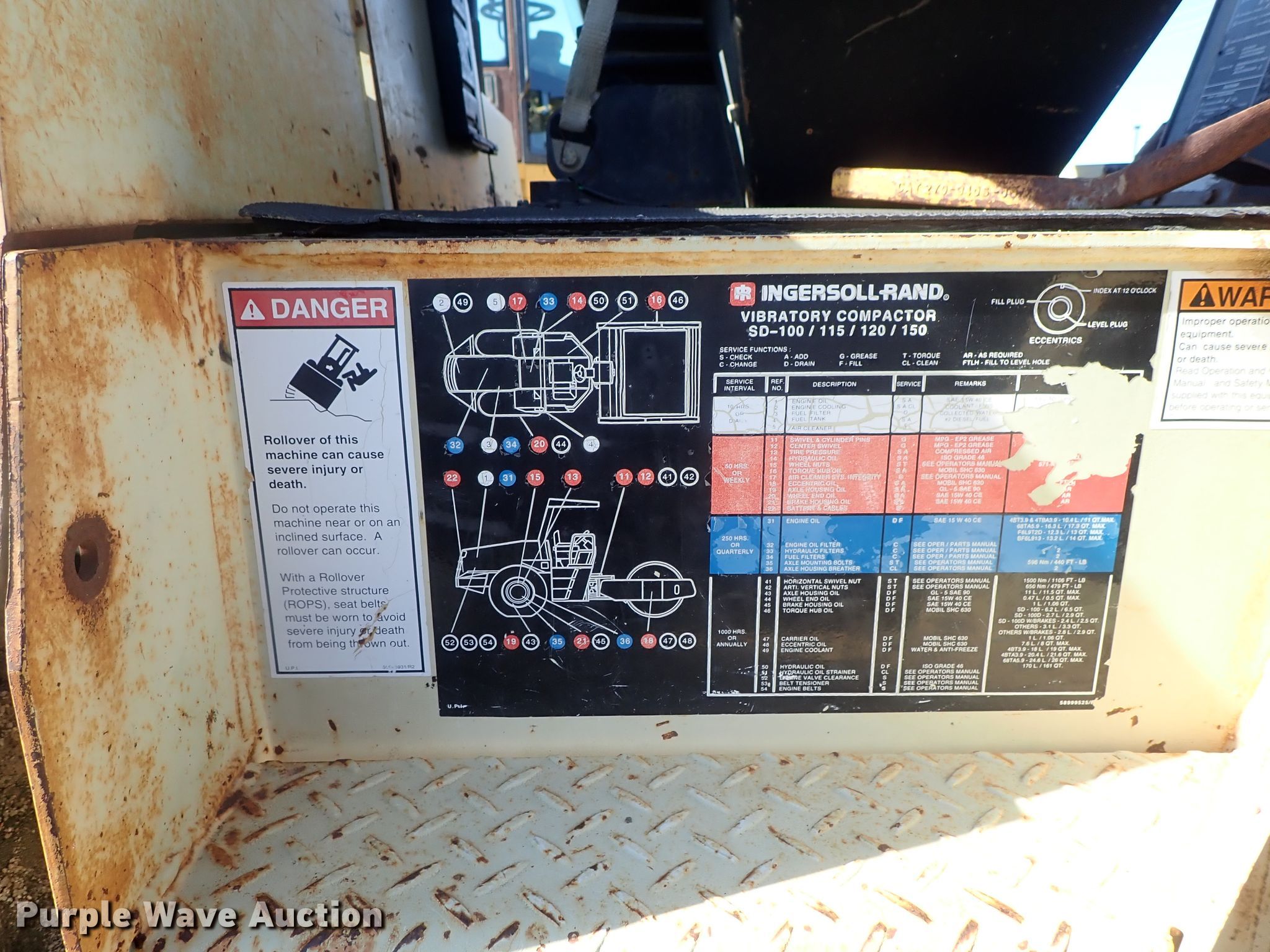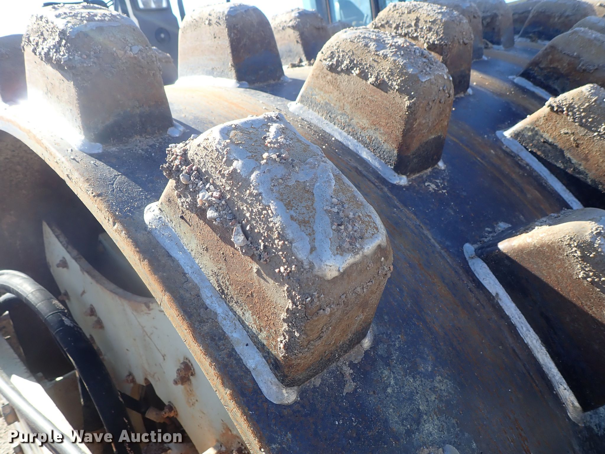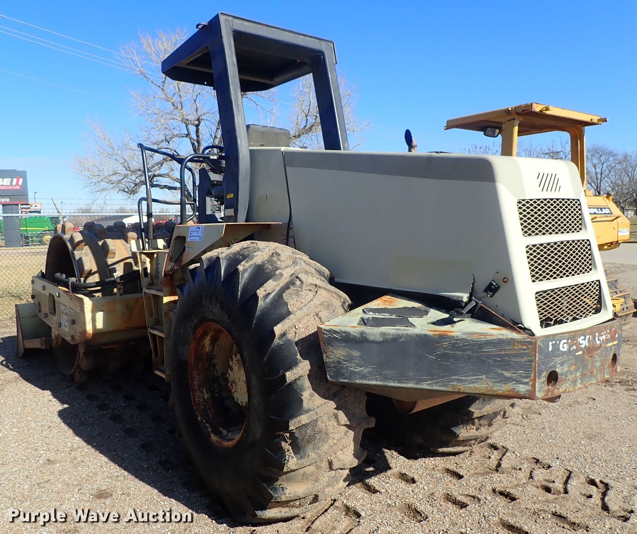 Purple Wave is selling a used Single Drum Roller Compactor in Kansas. This item is a 1997 Ingersoll Rand SD-115F single drum vibratory roller with the following: 5,714 hours on meter, Cummins six cylinder diesel engine, Hydrostatic transmission, OROPS, 84"W x 59" diameter pad foot drum, Two speed vibratory system, 100"W front blade, Steel wheels, 23.1-26 tires, Serial 151568, Unit# 64.07L