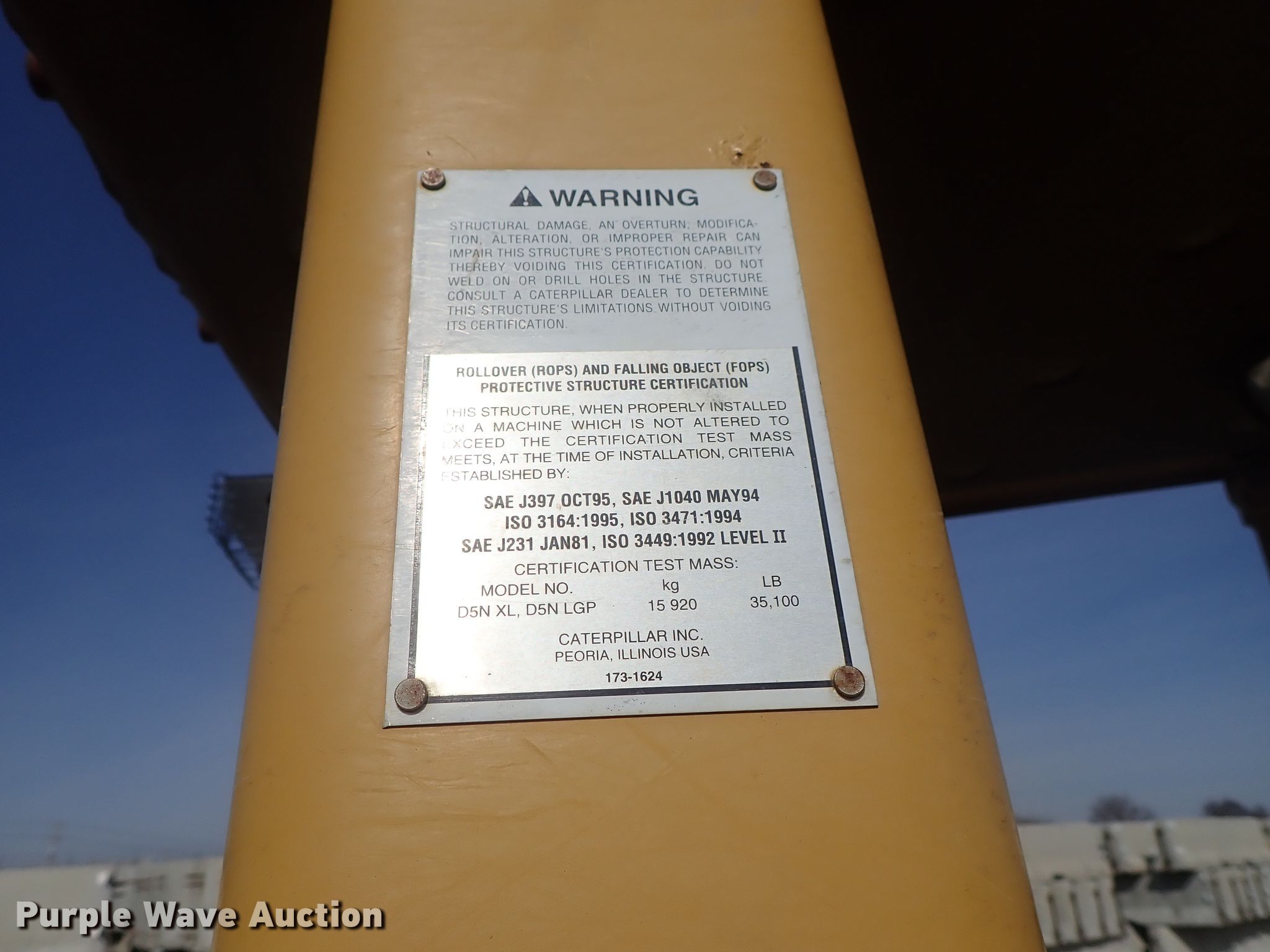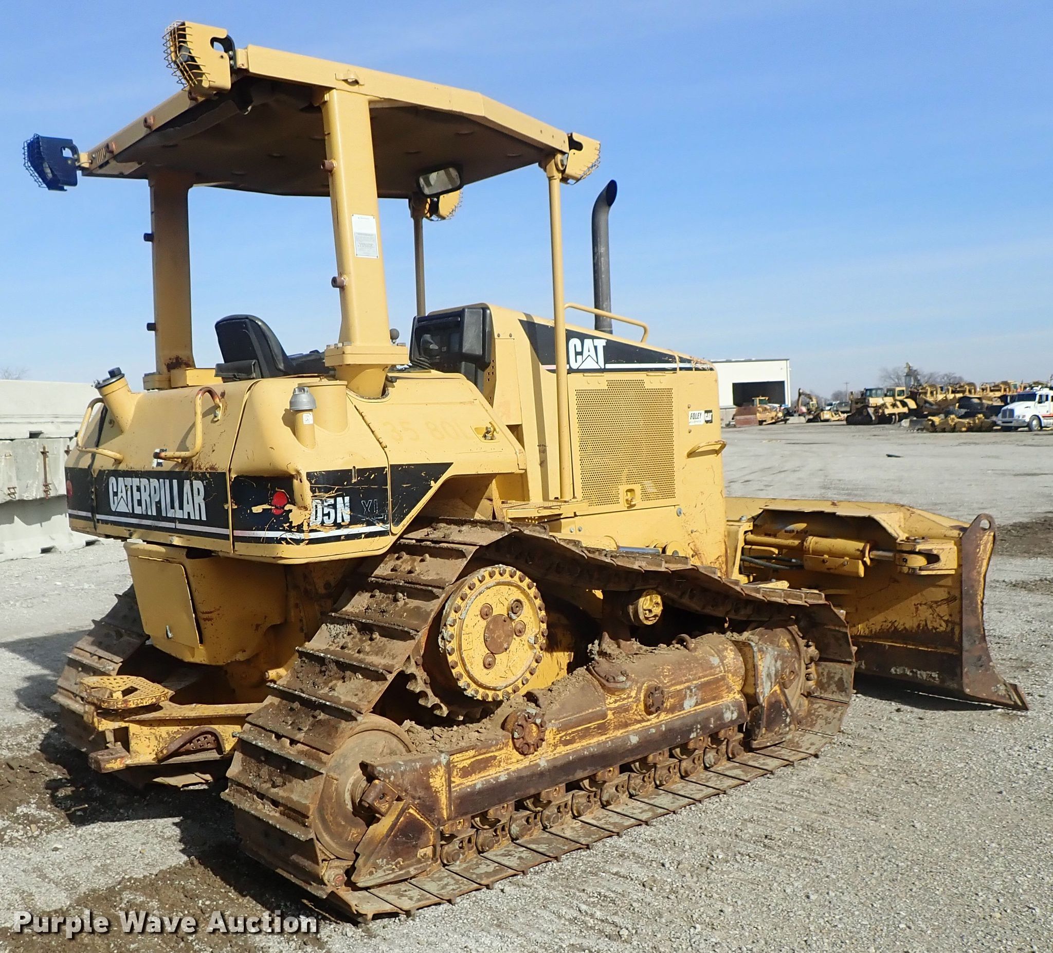 Purple Wave is selling a used Crawler Dozer in Oklahoma. This item is a 2004 Caterpillar D5N XL dozer with the following: 9,901 hours on meter, Caterpillar 3126B six cylinder diesel engine, 121 HP, Powershift transmission, 3F-3R gears, OROPS, Finger tip control, 118"W six-way dozer blade, Rear drawbar, Seven bottom rollers, 22"W single grouser track pads, Serial CAT00N5NVACG00636, Unit# 35.80L