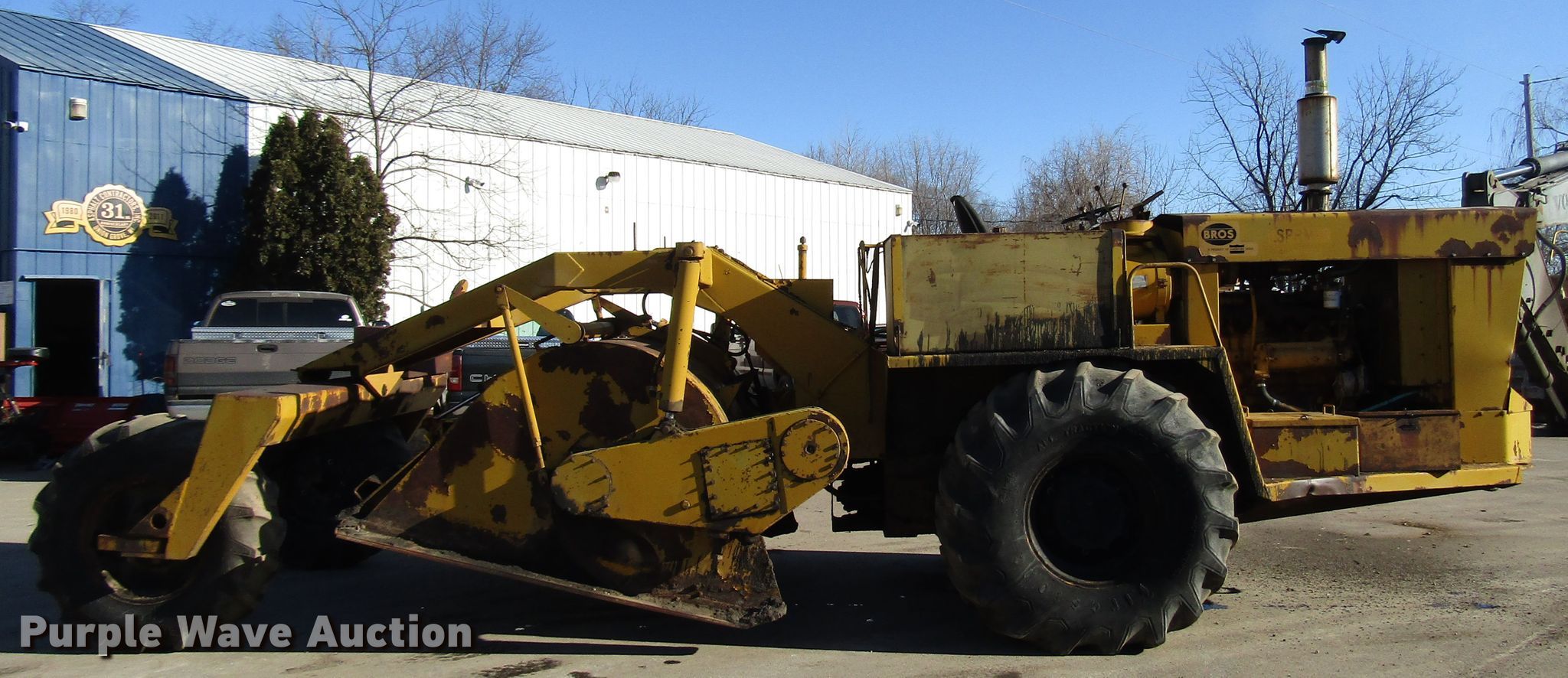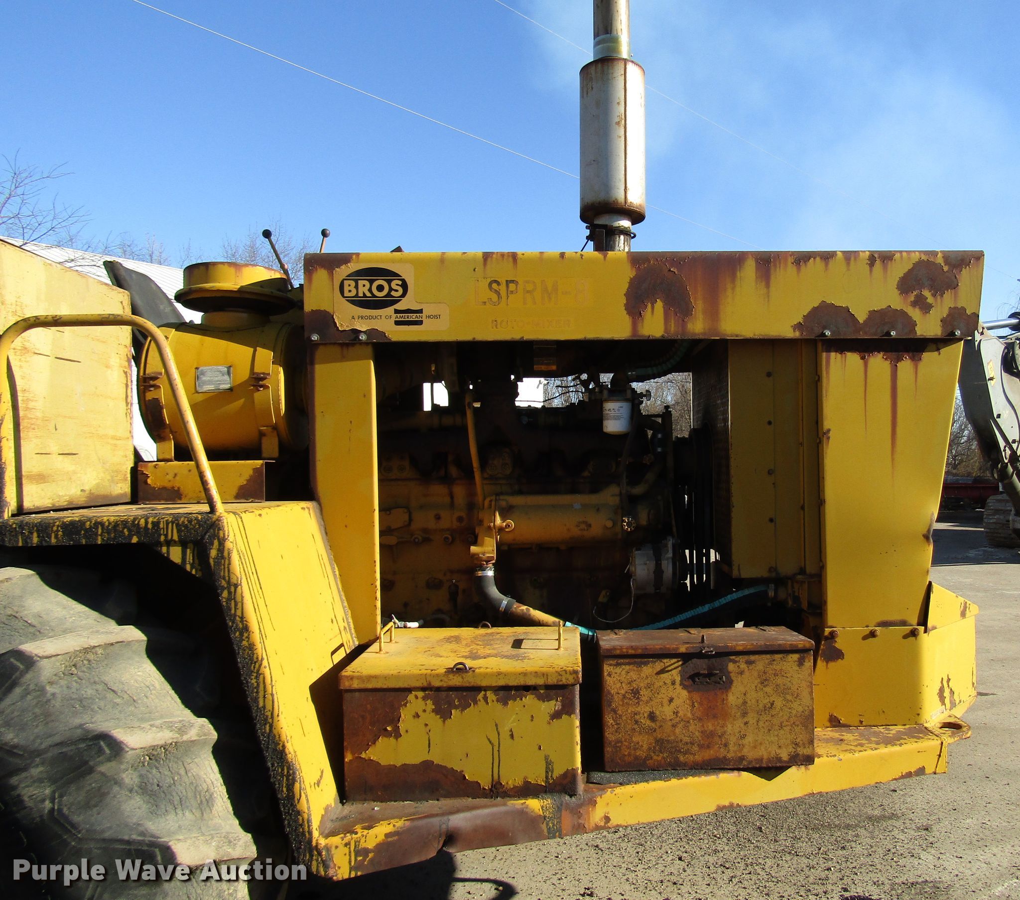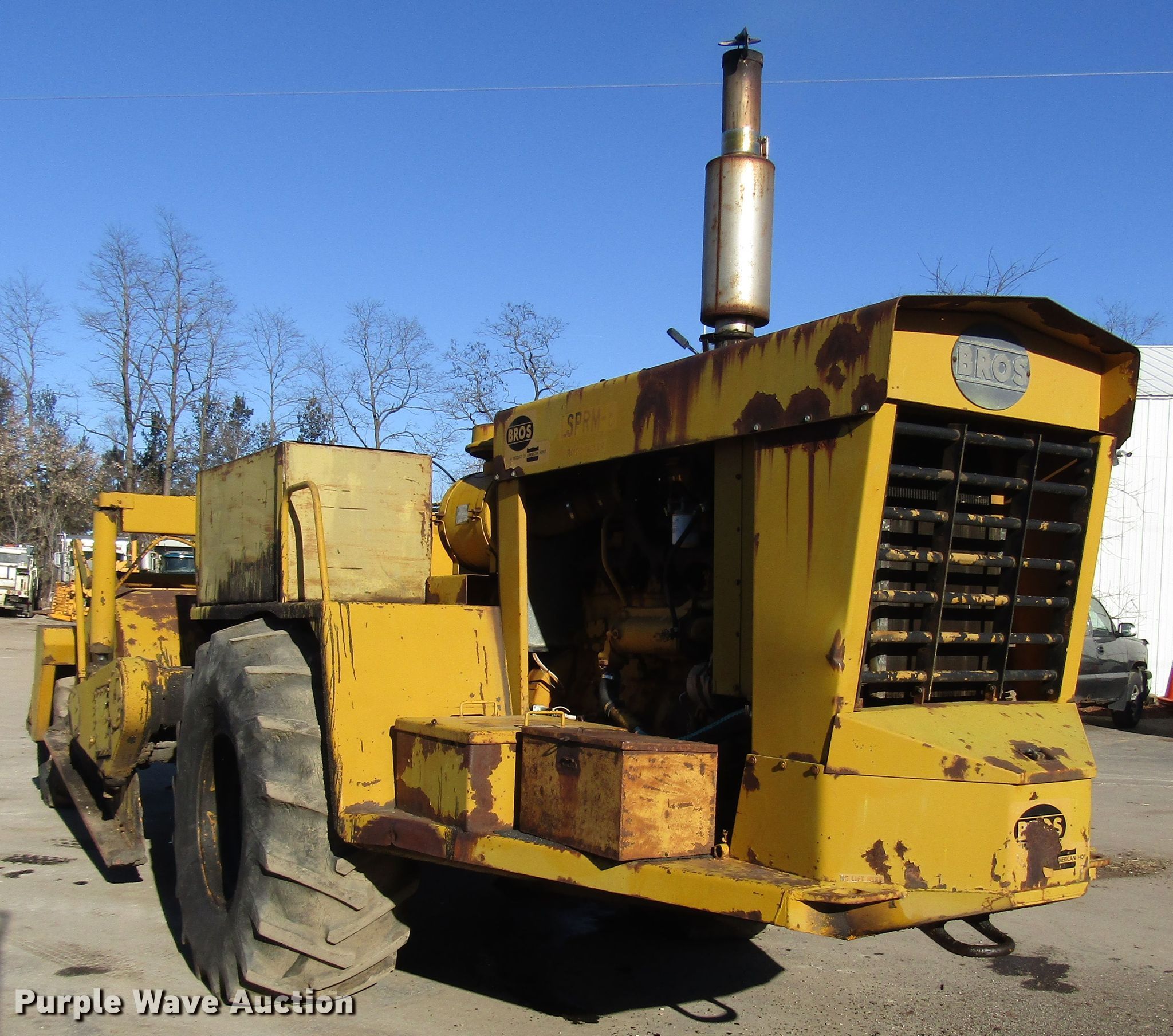 Purple Wave is selling a used Reclaimer or Stabilizer in Wisconsin. This item is a Bros SLPRM-8 soil stabilizer with the following: Cummins NT855C335 six cylinder diesel engine, Serial 787968, Hydrostatic transmission, 100" bowl width, 92" working width, 29.1-26 front tires, 14.9-24 rear tires, Hydraulic leak, Serial 4087