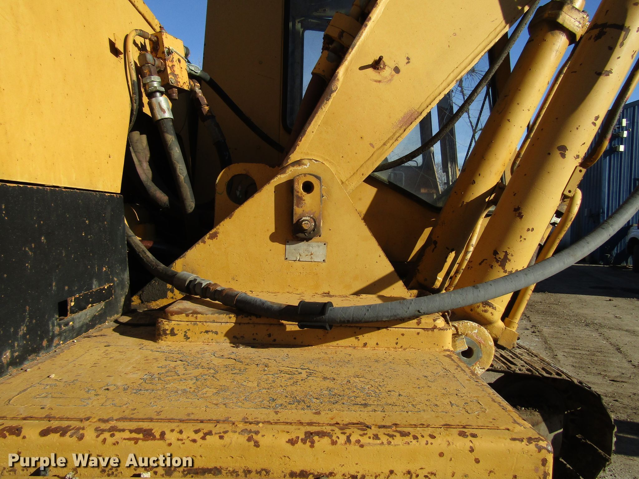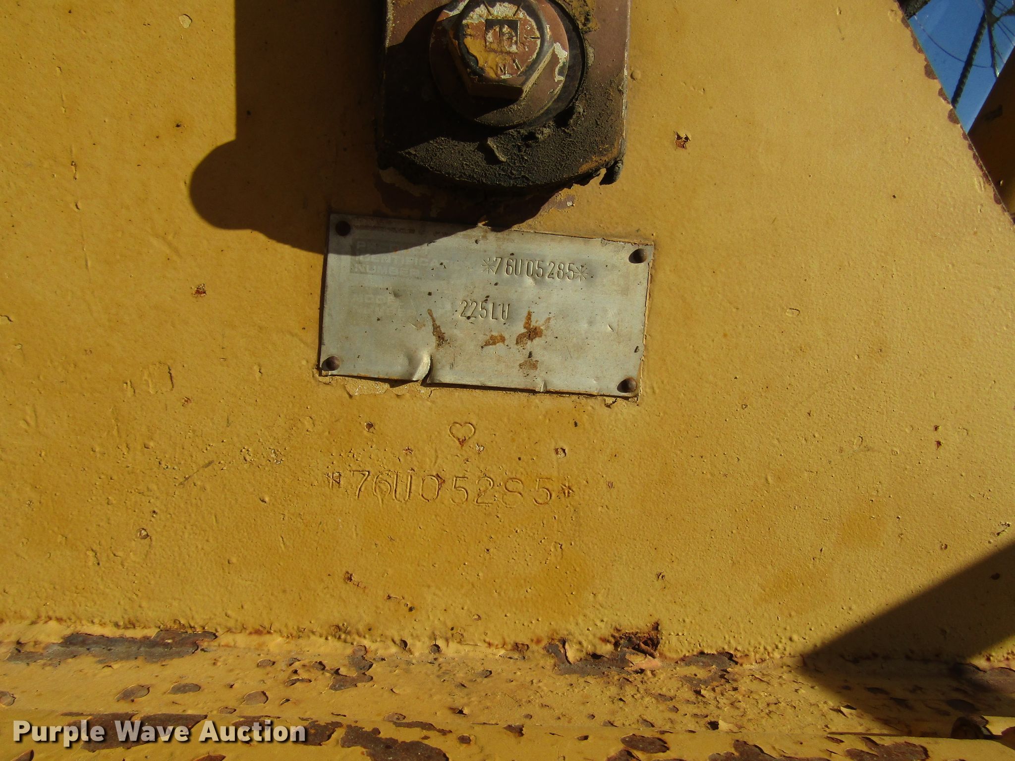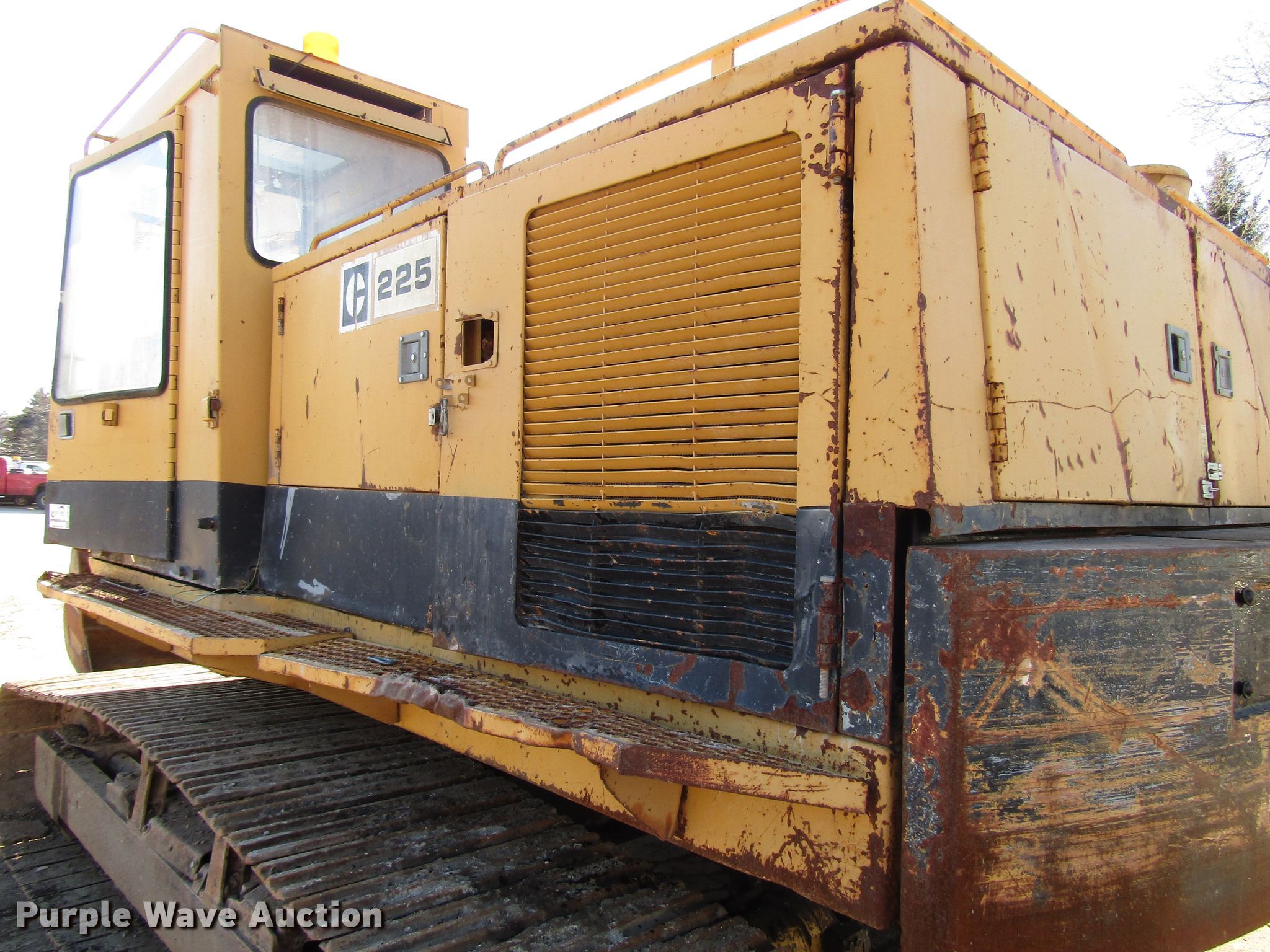 Purple Wave is selling a used Hydraulic Excavator in Wisconsin. This item is a 1985 Caterpillar 225 excavator with the following: 7,332 hours on meter, Caterpillar six cylinder diesel engine, Hydrostatic transmission, EROPS, Standard boom, 7' stick length, 40"W bucket, Weld-on cutting edge, (5) teeth, Auxiliary hydraulics, Counter weights, 30"W steel triple grouser track pads, Possible hydraulic leak, Hydraulic cylinder leak, Glass cracked, Serial 76U05285