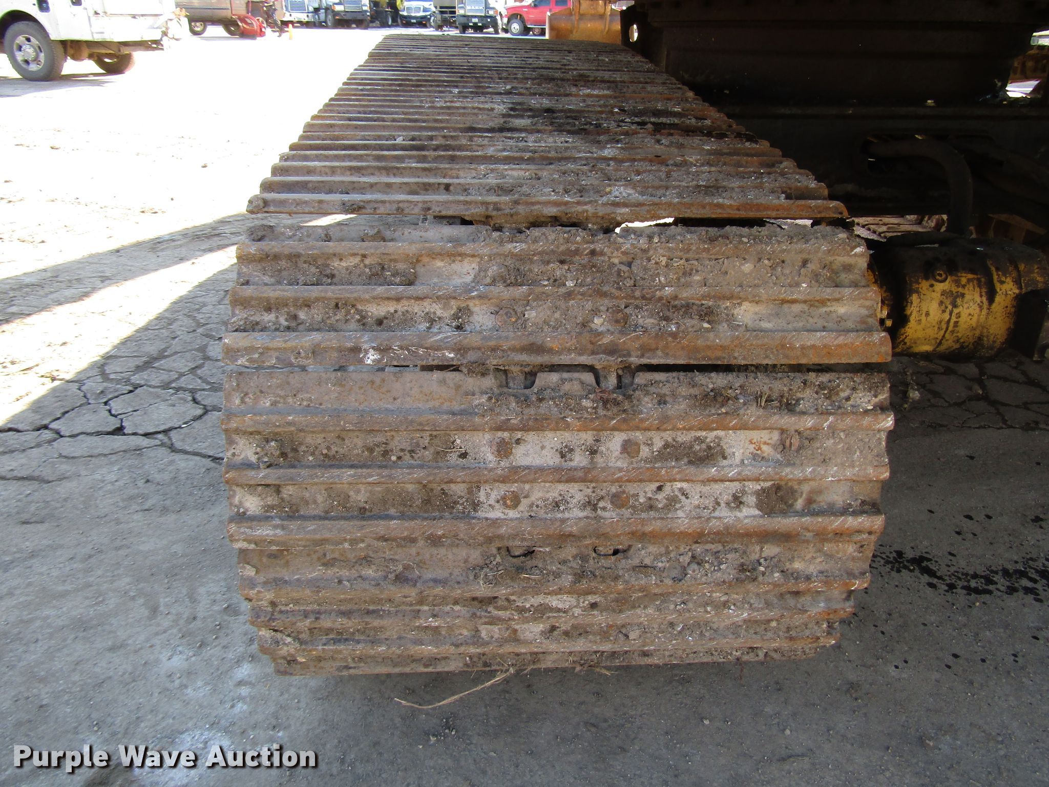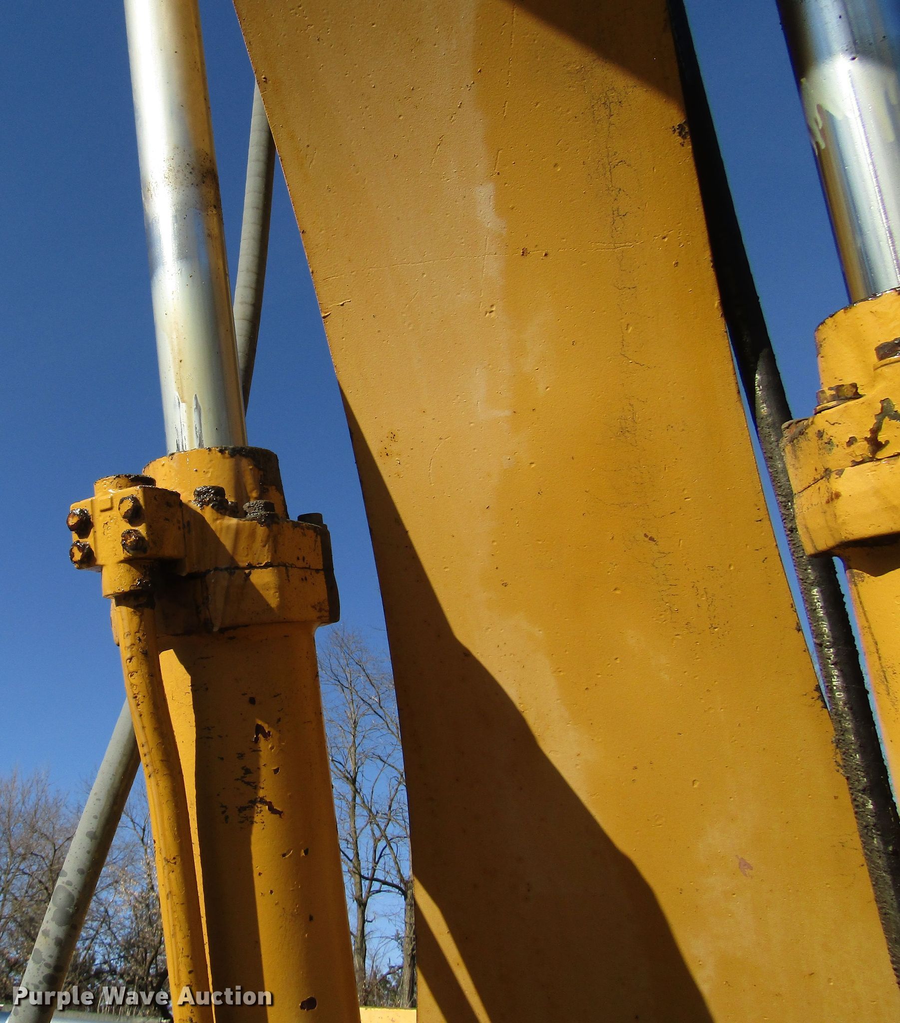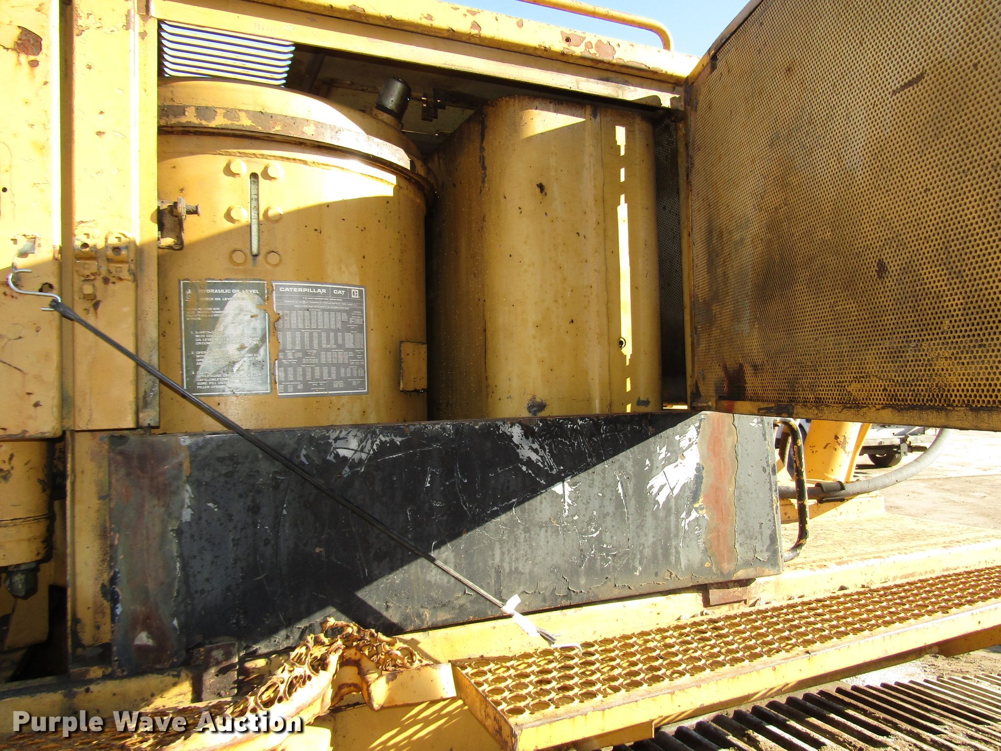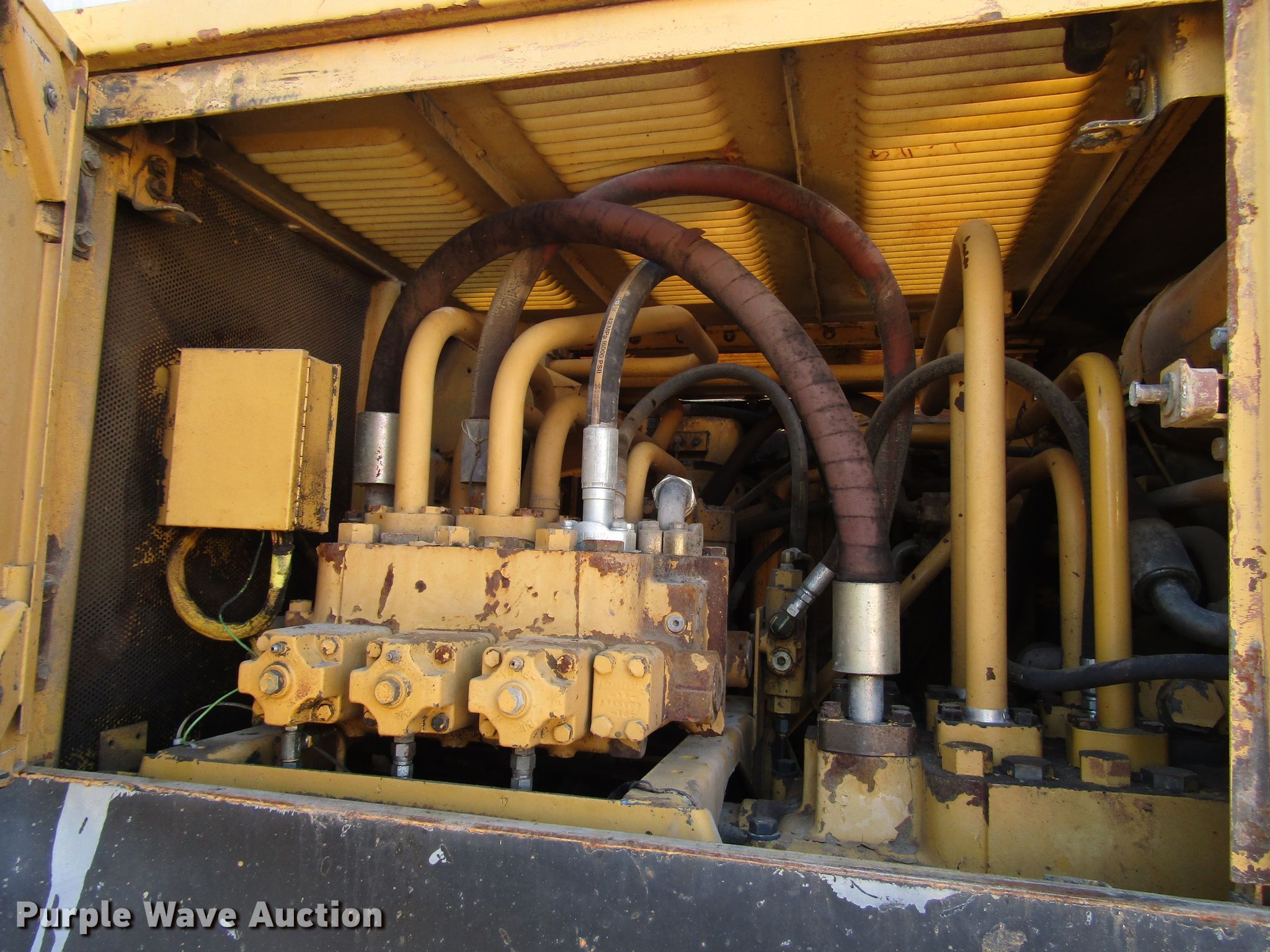 Purple Wave is selling a used Hydraulic Excavator in Wisconsin. This item is a 1985 Caterpillar 225 excavator with the following: 7,332 hours on meter, Caterpillar six cylinder diesel engine, Hydrostatic transmission, EROPS, Standard boom, 7' stick length, 40"W bucket, Weld-on cutting edge, (5) teeth, Auxiliary hydraulics, Counter weights, 30"W steel triple grouser track pads, Possible hydraulic leak, Hydraulic cylinder leak, Glass cracked, Serial 76U05285