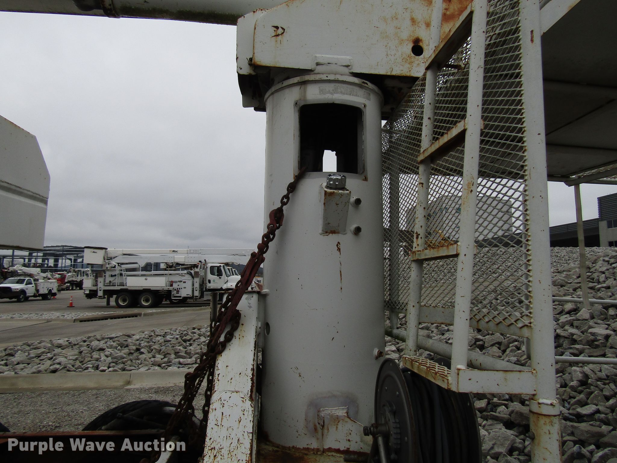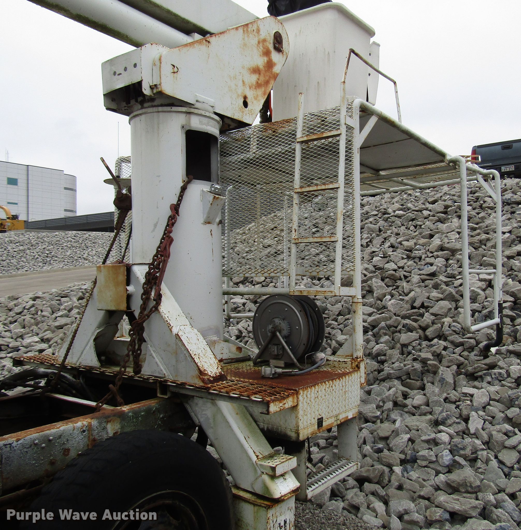 12'L x 92"W chip bed with boom. Single ram hoist, Cab guard, 1992 Versalift VO50PI boom 350 lbs max lift capacity, 50' max lift height, Articulating boom, Platform controls, (2) outriggers, Last used in 2012, Unknown operating condition , Trailer not included, Serial M9203. Carroll Electric Cooperative Corporation. 920 US-62 Spur. Berryville, AR 72616