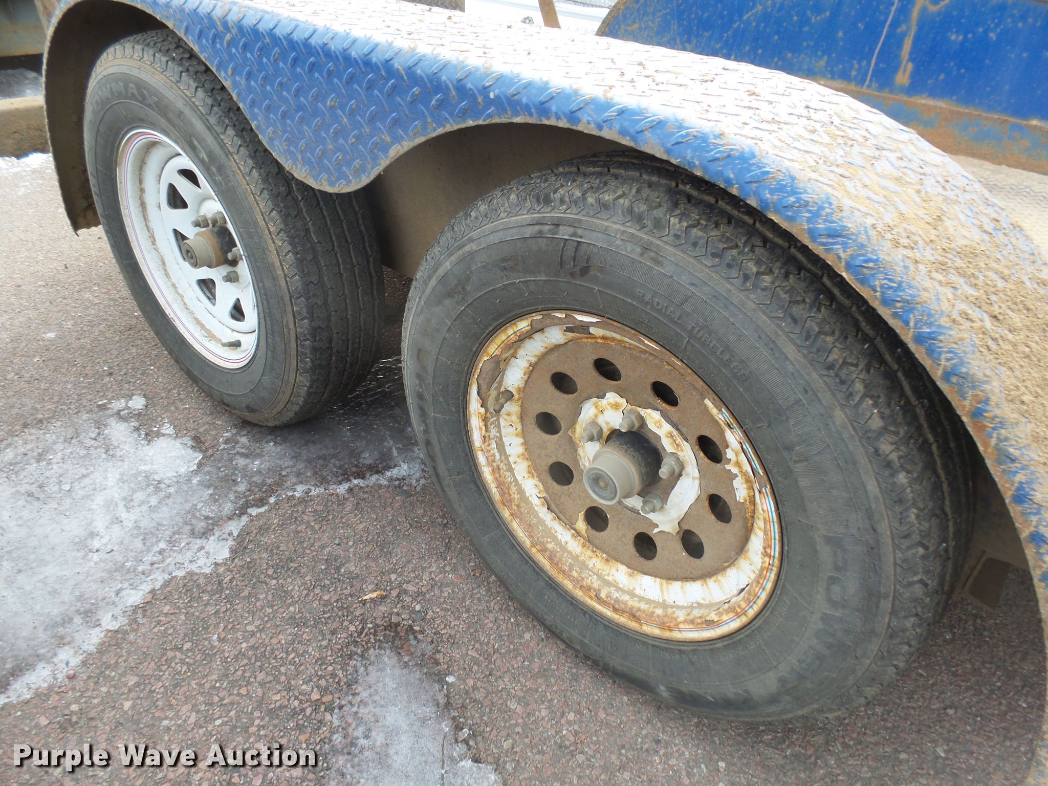 Purple Wave is selling a used Car or Utility Trailer in South Dakota. This item is a 2011 M&S 60X12UT utility trailer with the following: 12'L x 60"W overall, 5'L ramps, Steel deck, Single leg landing gear, 2 5/16" ball hitch, Spring suspension, Electric brakes, Tandem axle, Steel wheels, ST205/75R15 tires, Unit# T6