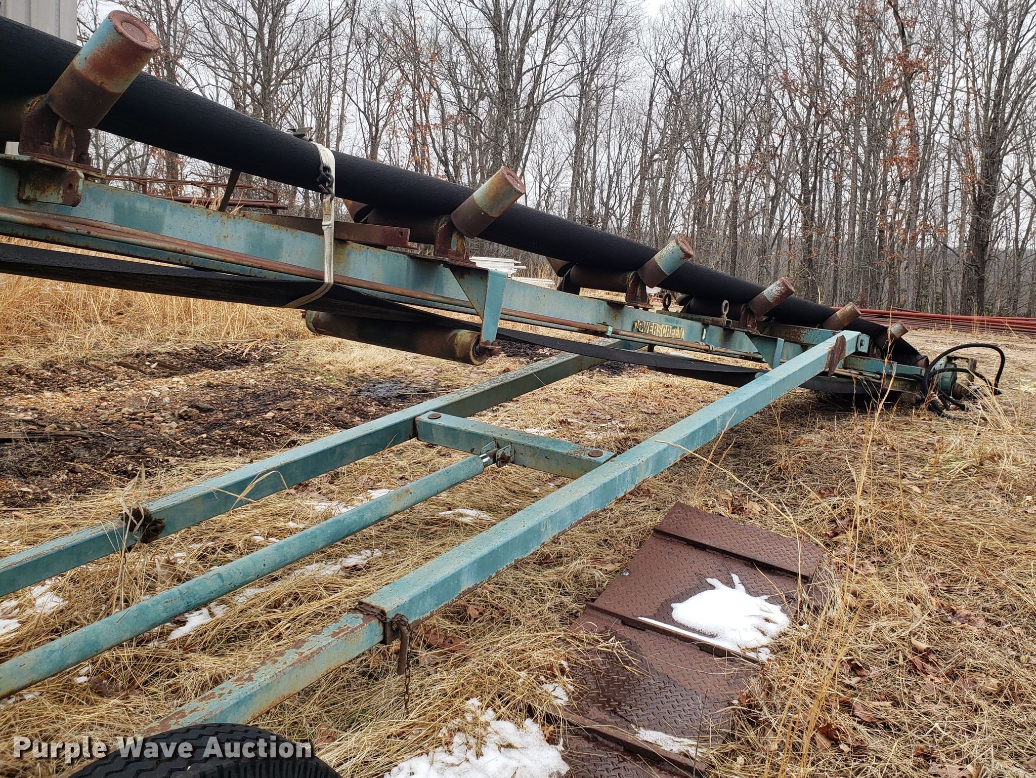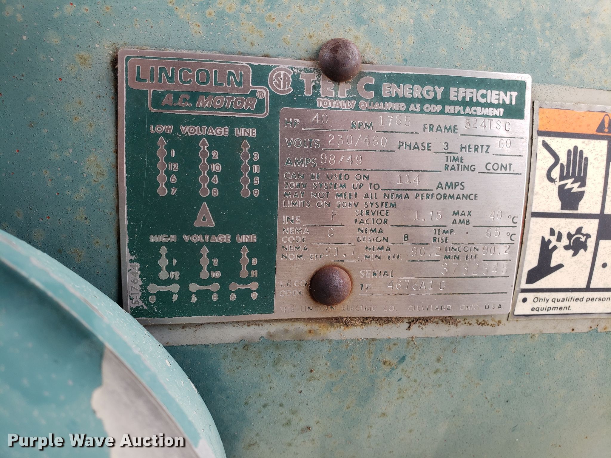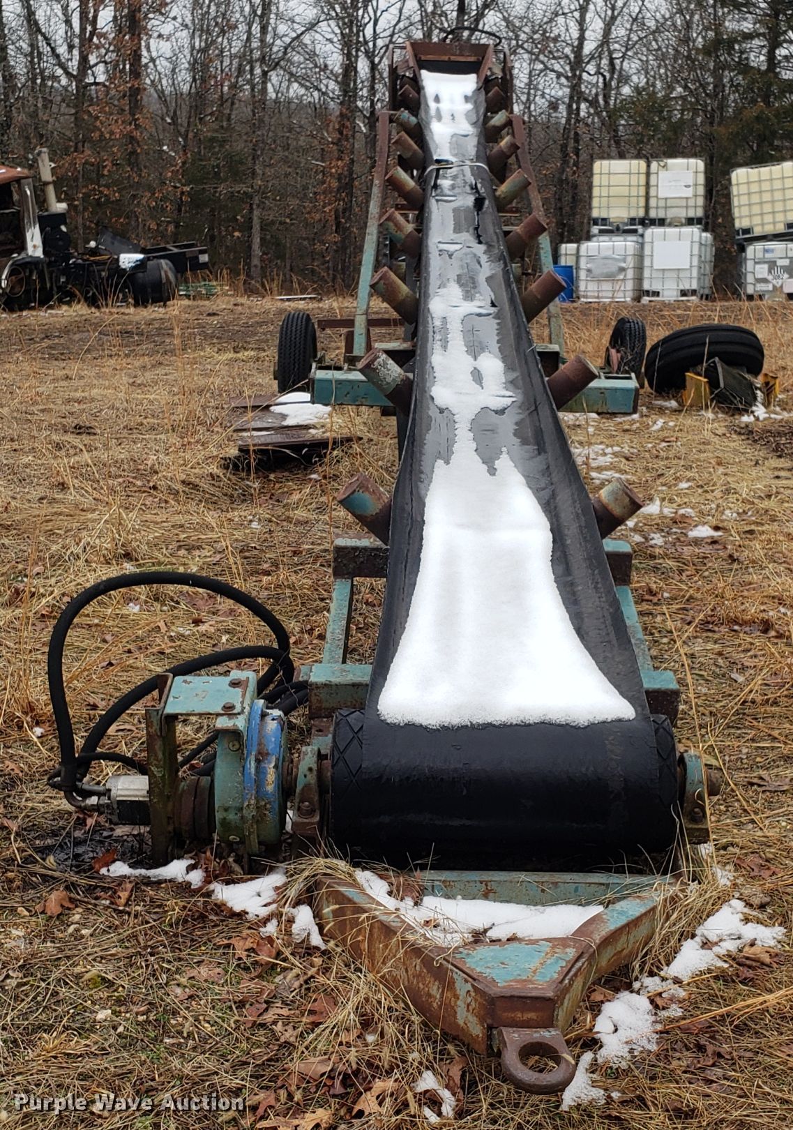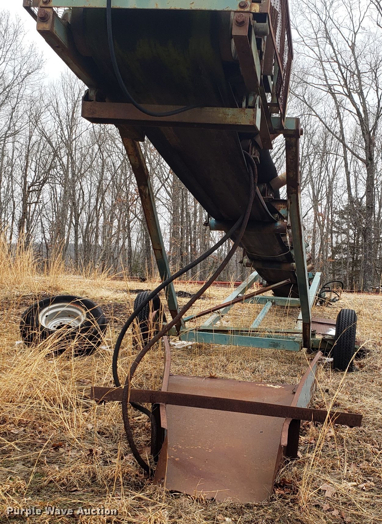 Screen Machine screen. Lincoln electric motor 40 HP, Three phase, 230/460V, 40'L discharge conveyor 24"W belt, 225/90D16 tires. Lucas Cattle Company. 26511 County Rd 50. Cross Timbers, MO 65634