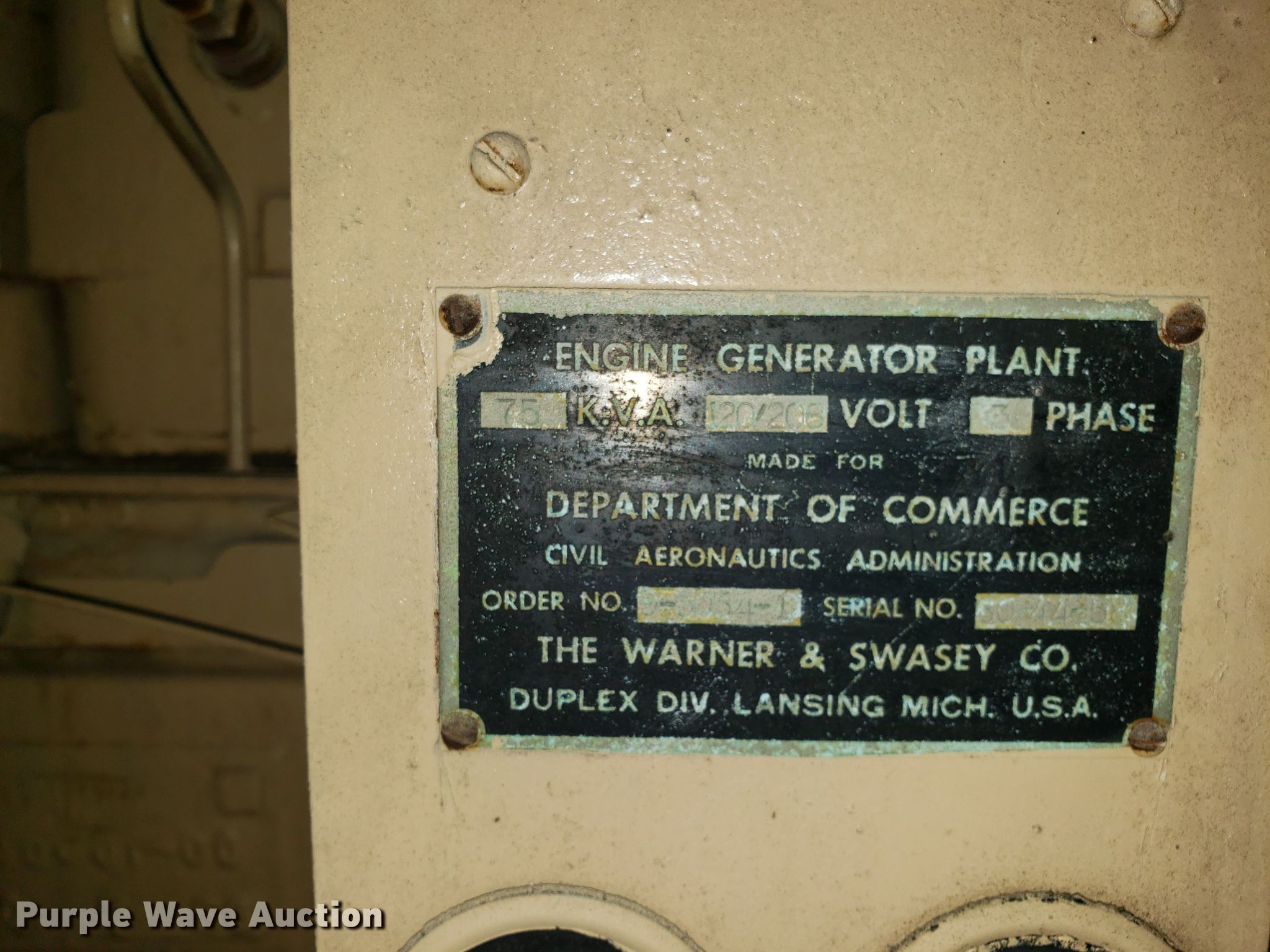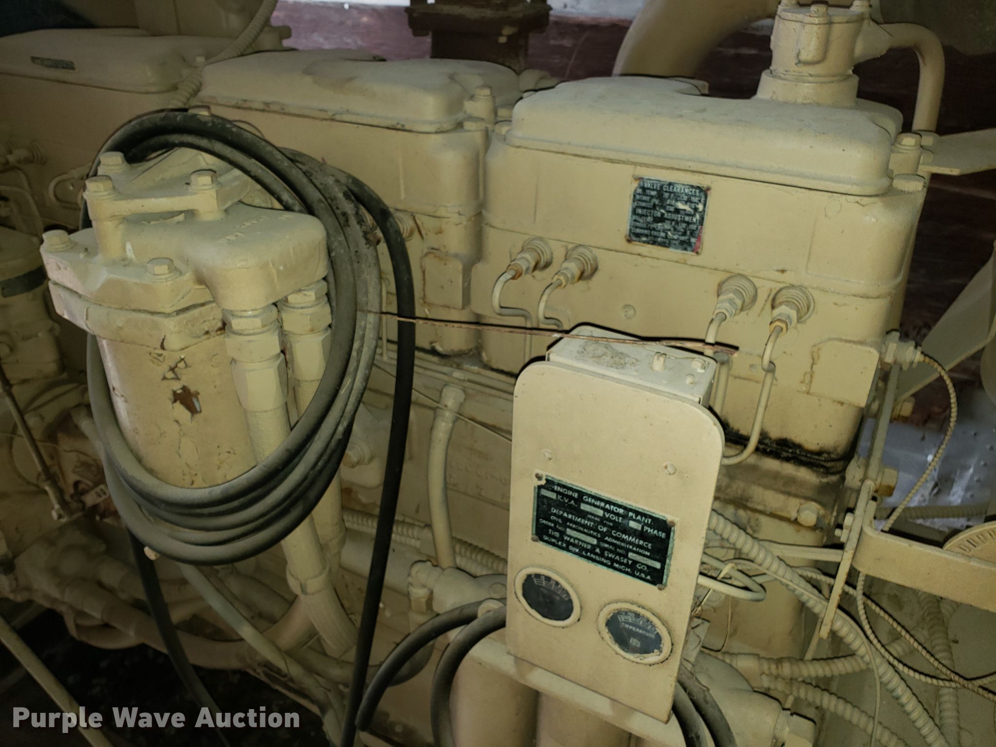 Purple Wave is selling a used Generator Set in Missouri. This item is a Cummins generator with the following: Cummins six cylinder diesel engine, 150 kW, Three phase, Serial 30-44358