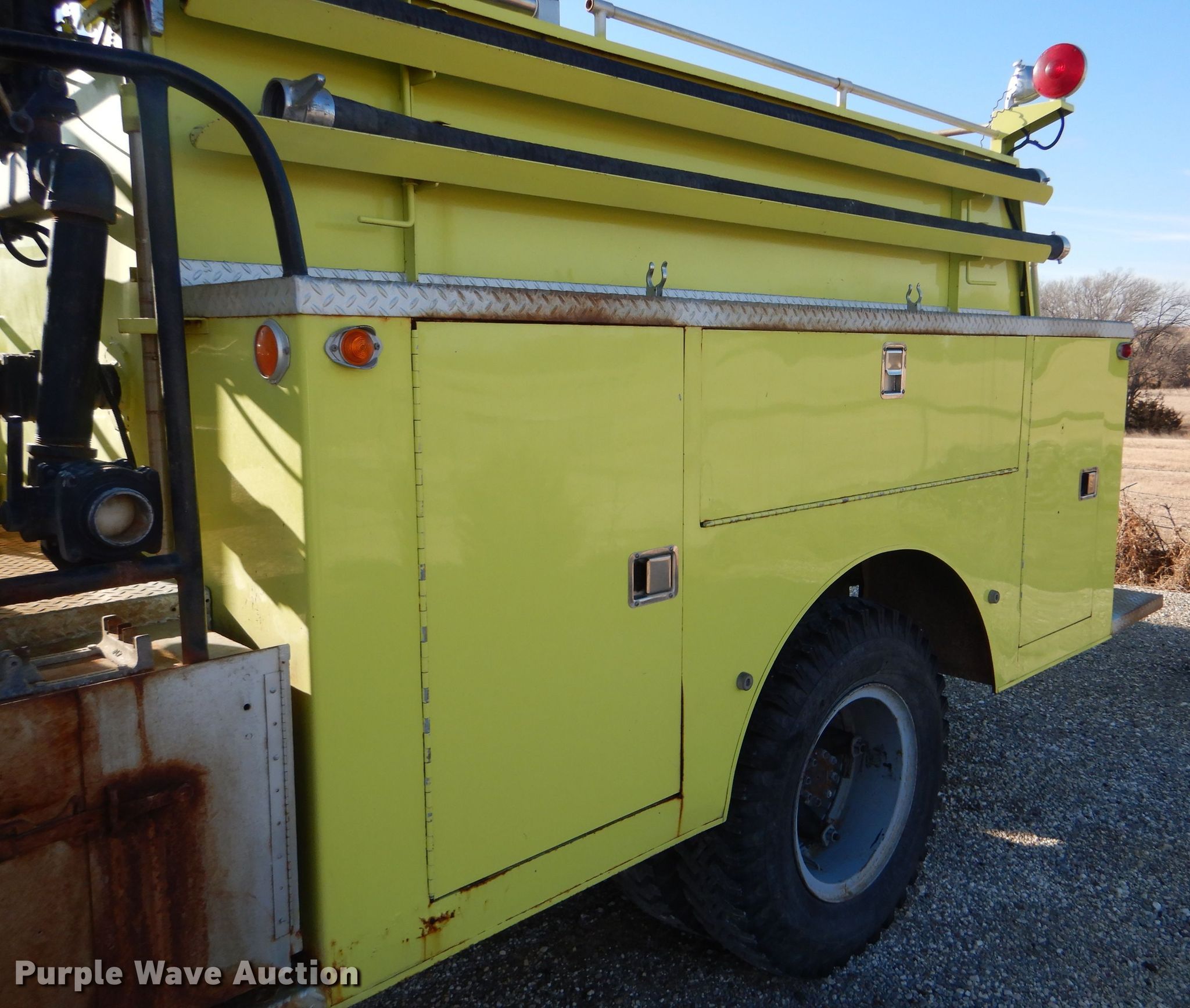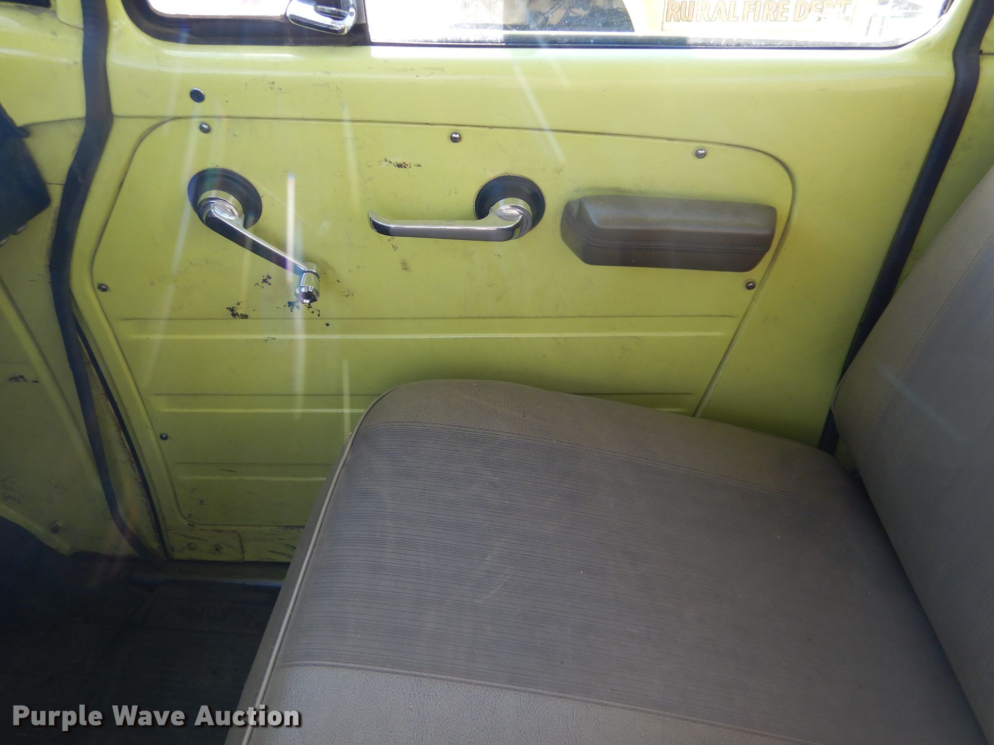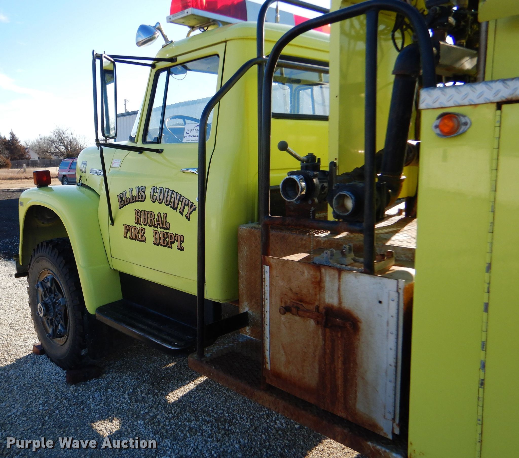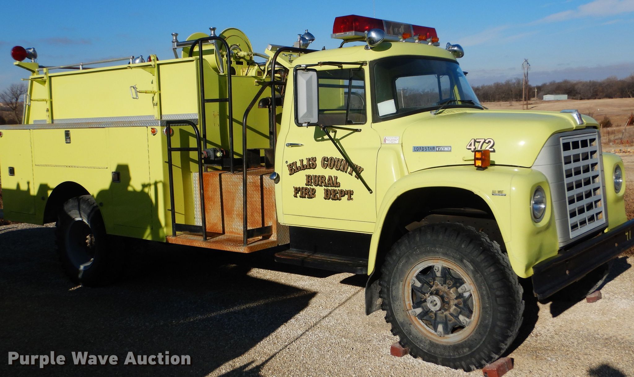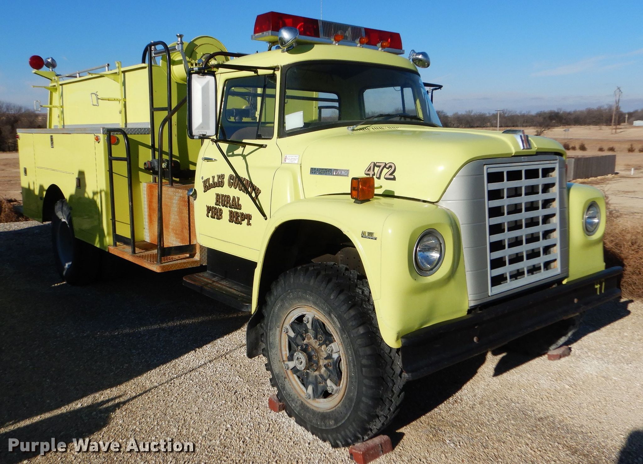 Purple Wave is selling a used Fire Truck or Emergency Vehicle in Kansas. This item is a 1978 International Loadstar 1700 pumper truck with the following: 11,353 miles on odometer, International 345 C.I.D. V8 gas engine, Five speed manual transmission, Four wheel drive, Heat, Pump, Spring suspension, Hydraulic brakes, 9.00-20 tires, Pump motor missing, Vehicle has not been used in four years