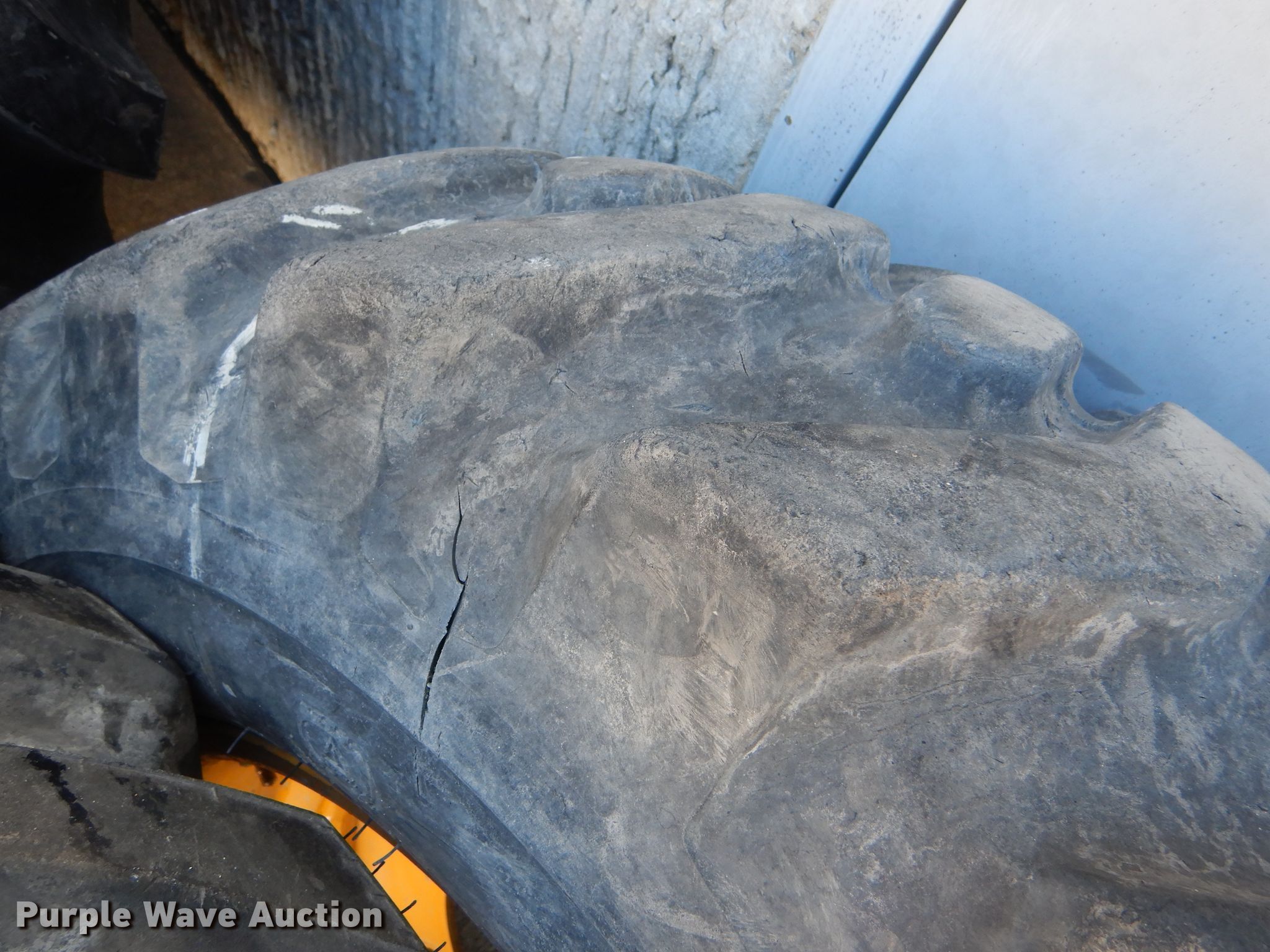 Purple Wave is selling a used Industrial Tires or Tracks in Kansas. This item is a (4) tires and wheels with the following: (2) 19.5L-24 tires, 10 bolt wheels, (2) 12.5/80-18 tires, Eight bolt wheels, Removed from John Deere 310SJ backhoe