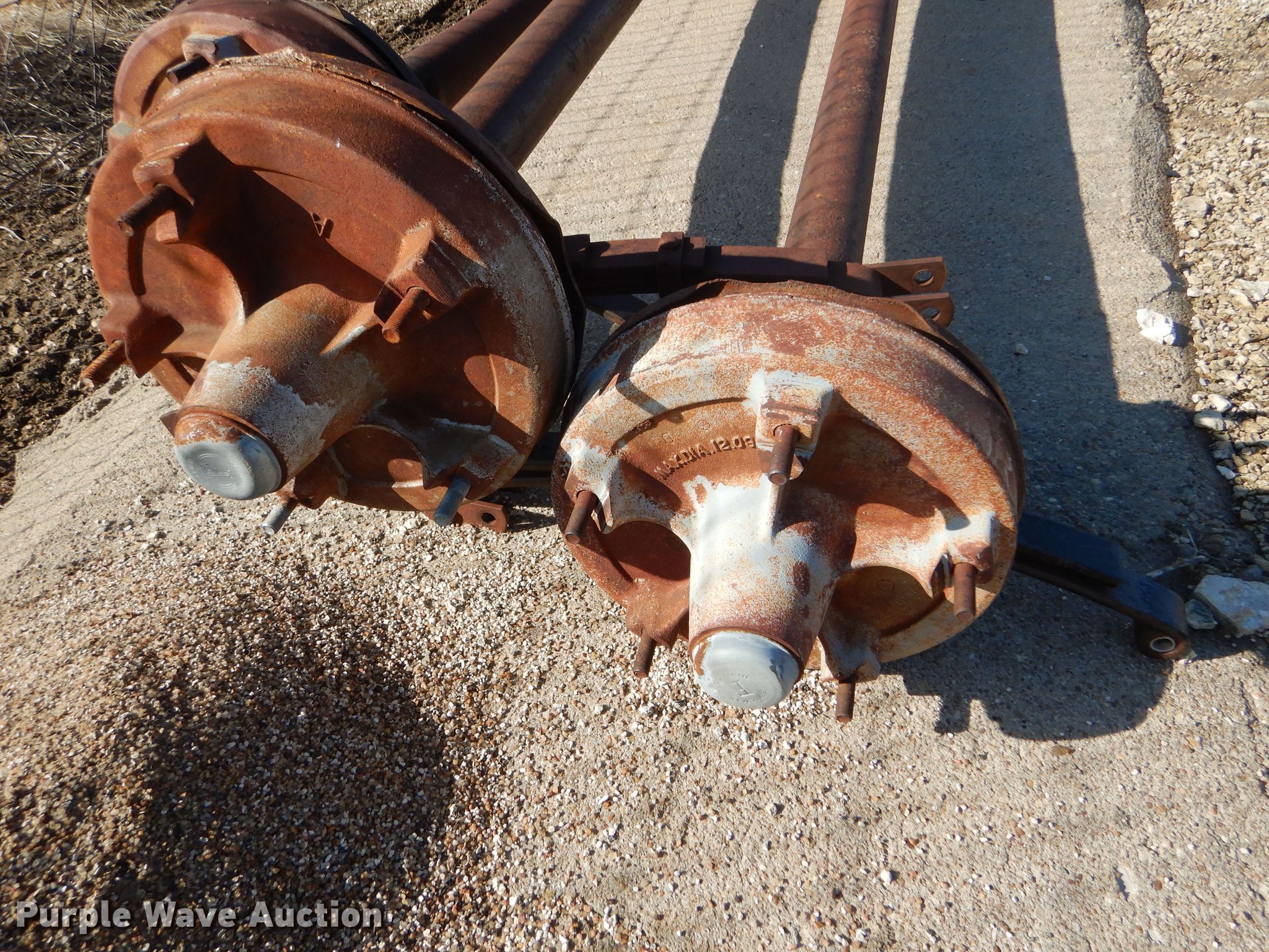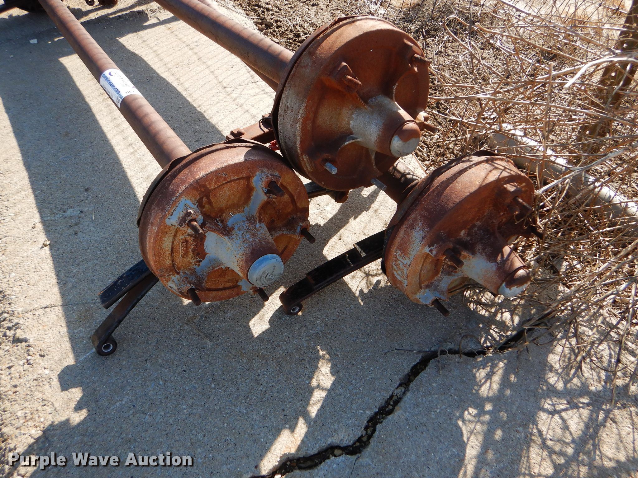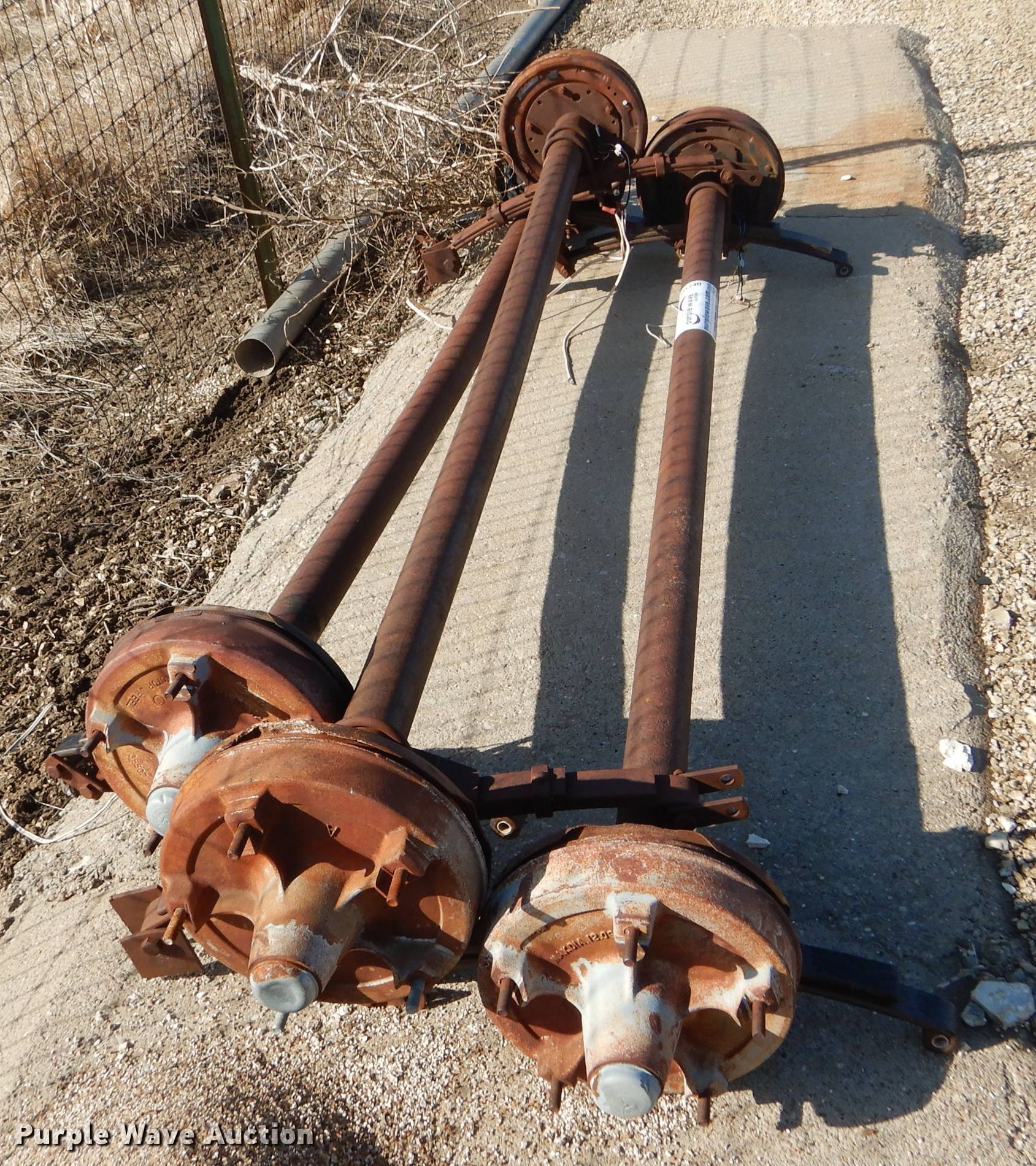 Purple Wave is selling a used Trailer Other in Kansas. This item is a (3) trailer house axles with the following: Approx. 98"W overall, Approx. 80" spring to spring