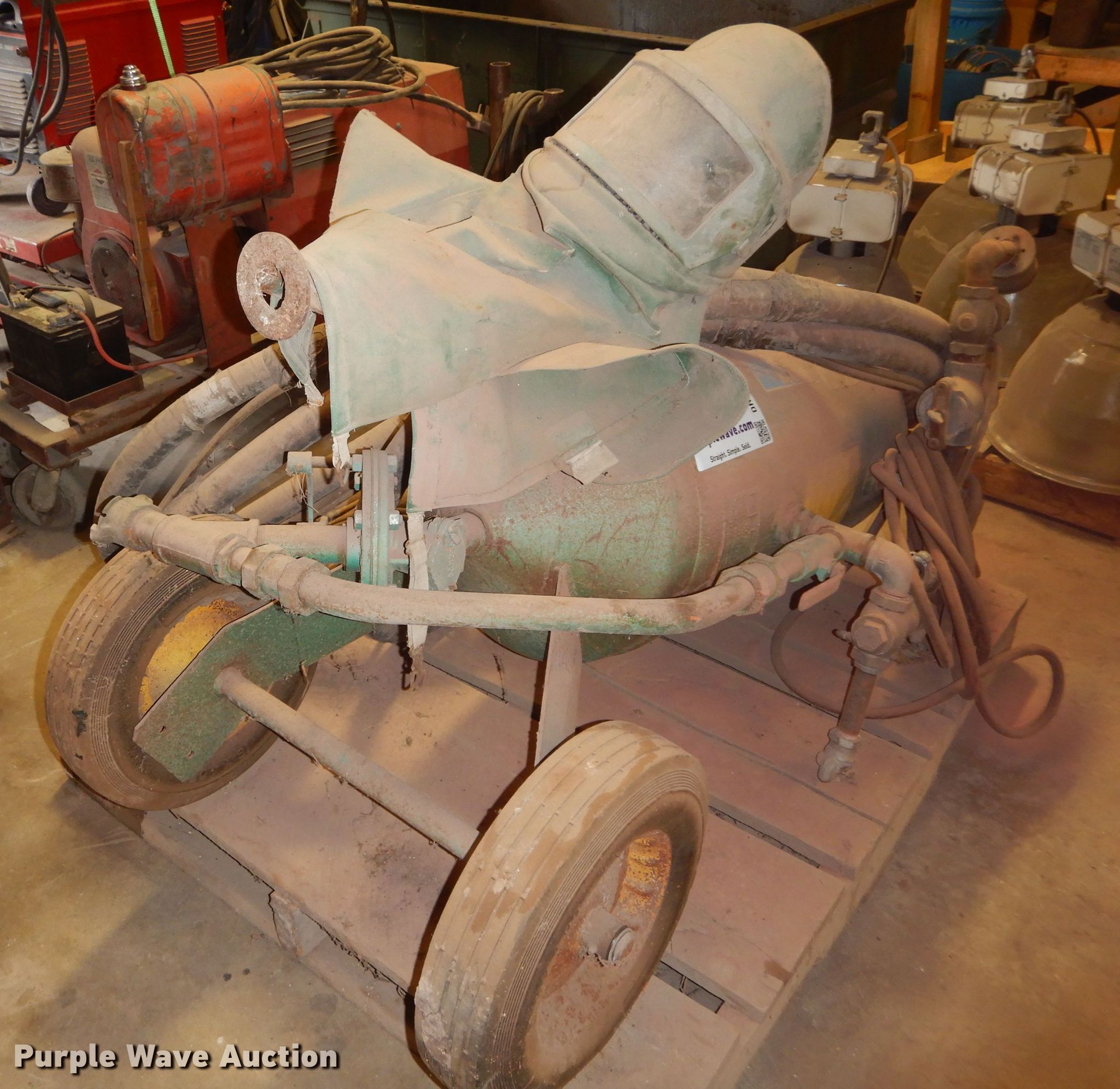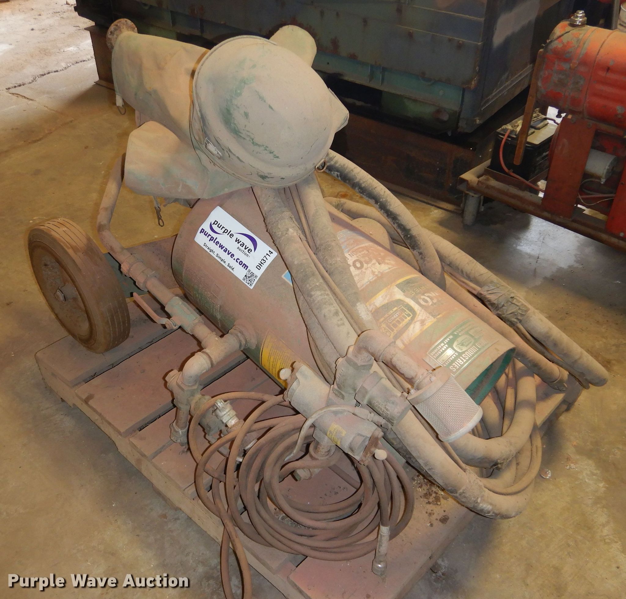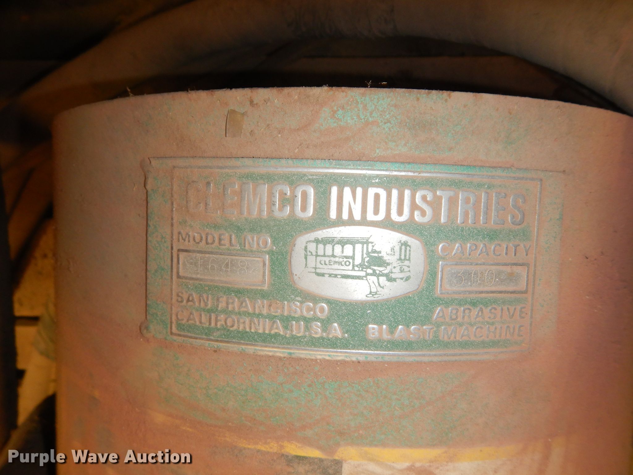 Purple Wave is selling a used Tools in Kansas. This item is a Clemco 1648 sandblaster with the following: 300 lbs capacity, Hoses, Mask