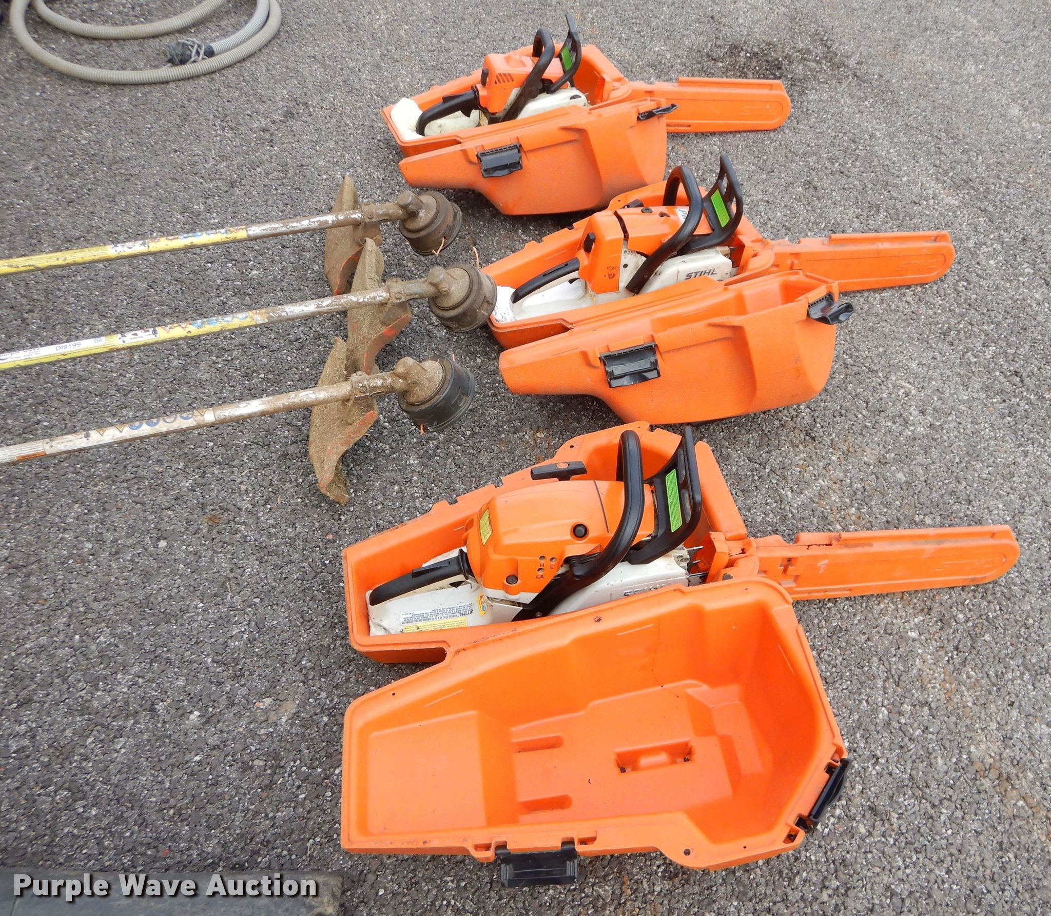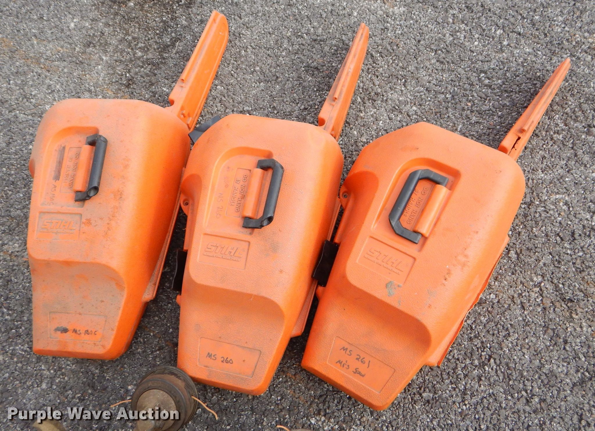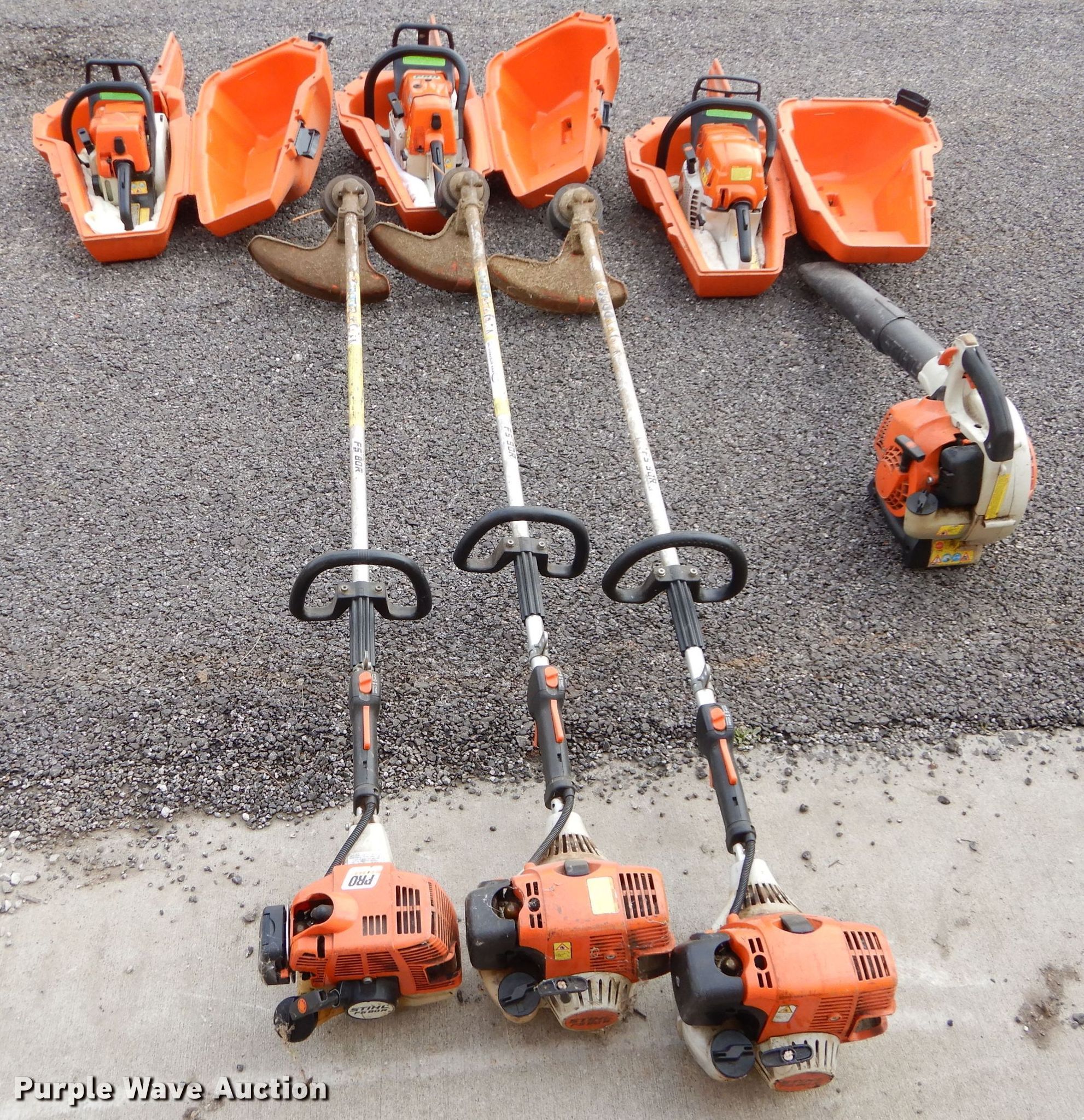 Purple Wave is selling a used Lawn and Garden in Kansas. This item is a Lawn and garden equipment with the following: (3) Stihl string trimmers, Model FS80R, (2) model FS90R, Stihl leaf blower, (3) Stihl chainsaws, Model MS180C, Model MS260, Model MS261, Cases, No chains