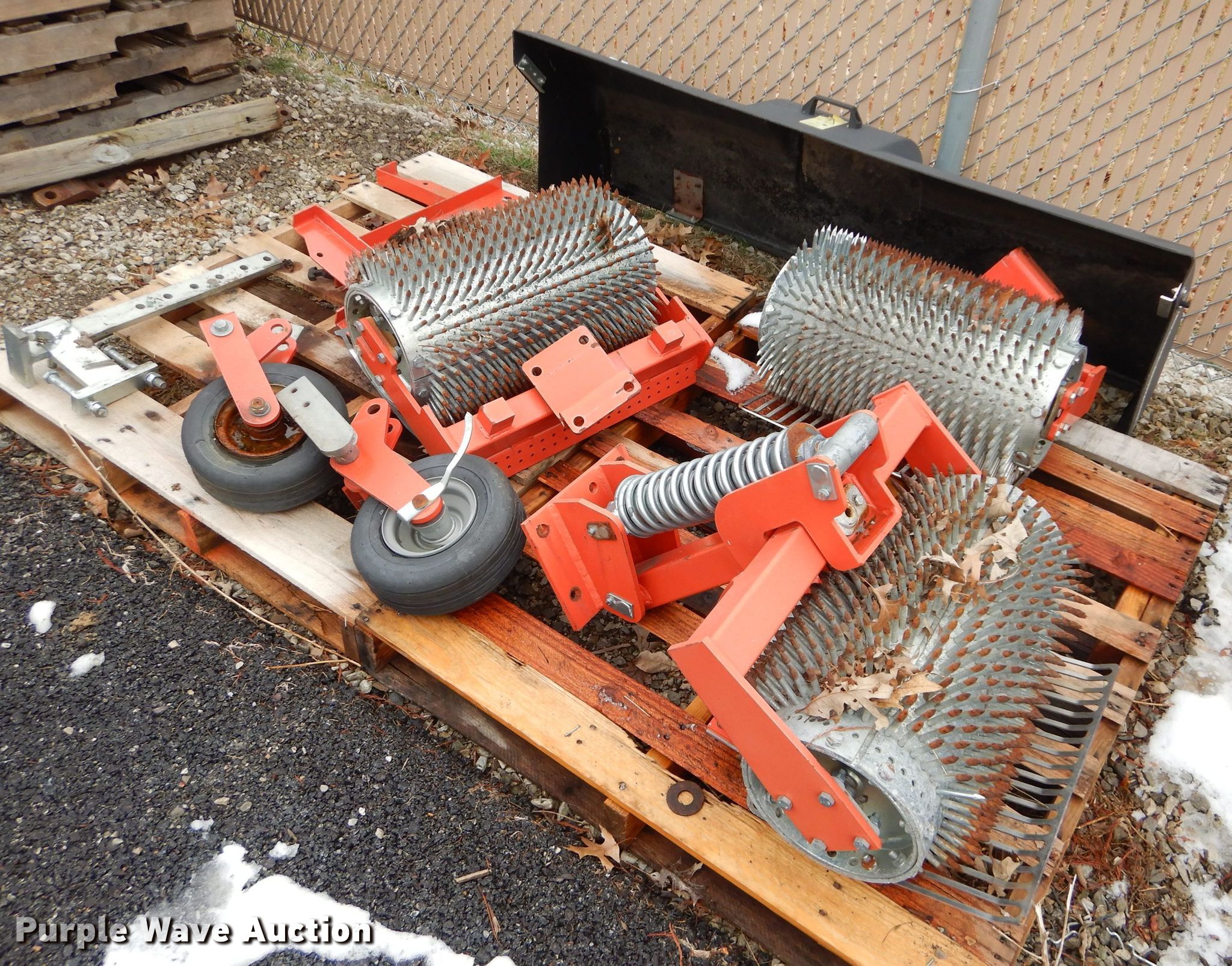 Wiedenmann Terra-Combi TC160 aerator/seeder. 63"W, Spike roller, Heaving rotor 8" blades, Overseeder with press wheels, Three point, Unit is disassembled, No cart included, Serial 500KG1413. Johnson County Parks and Recreation. Overland Park, KS 66062