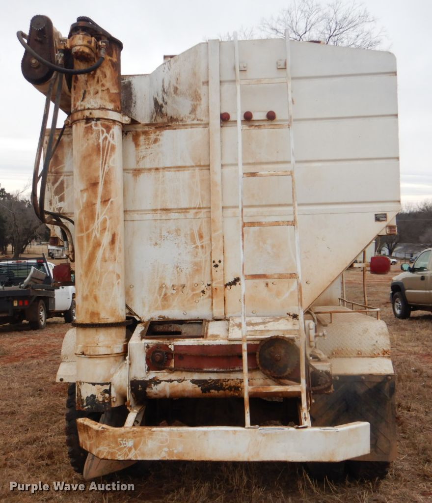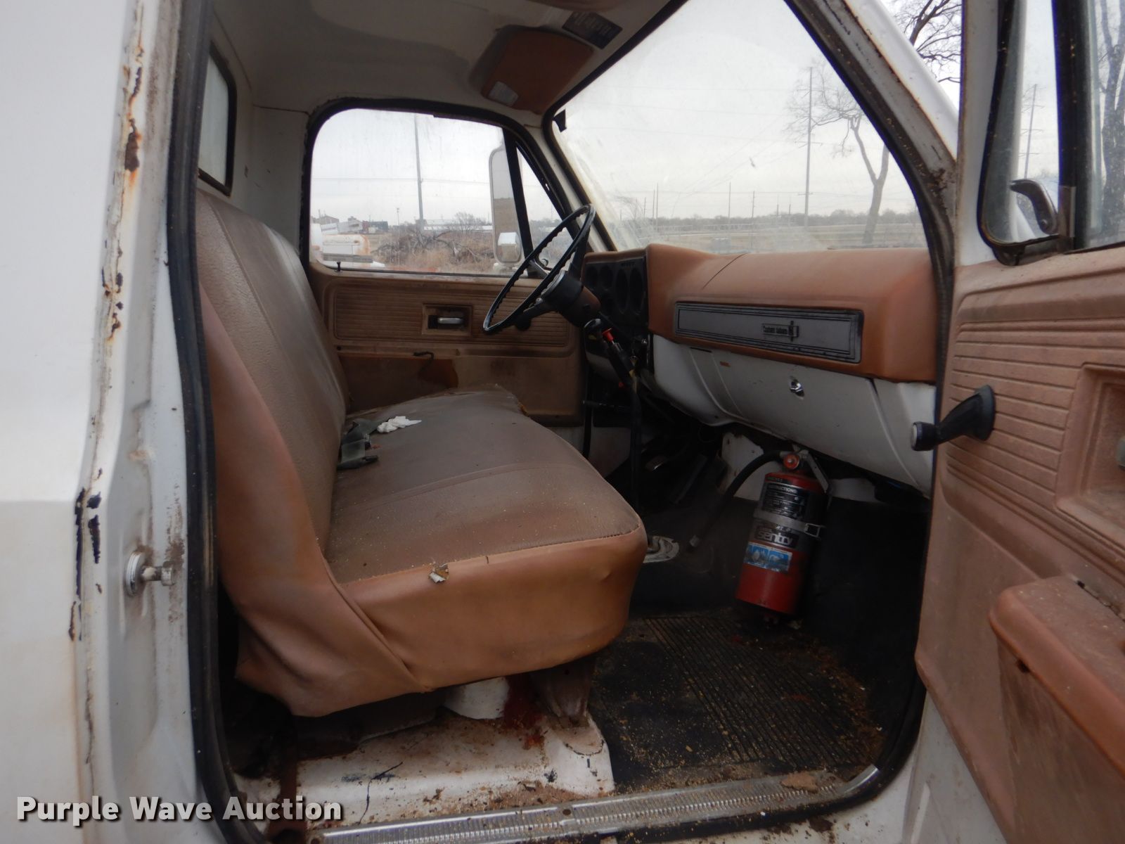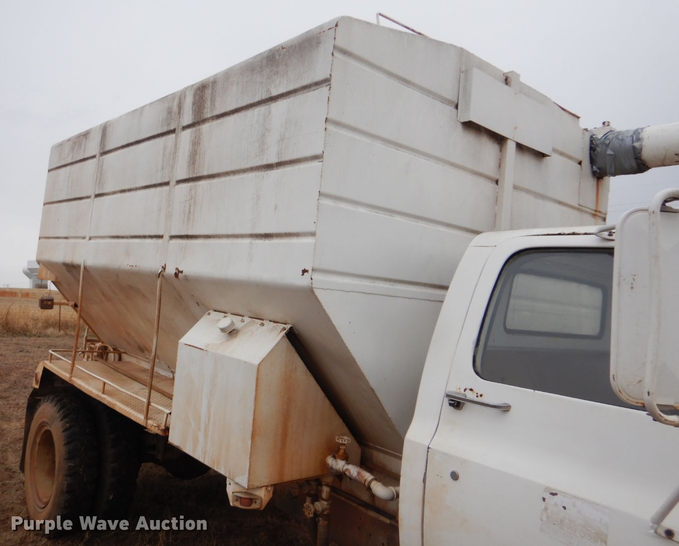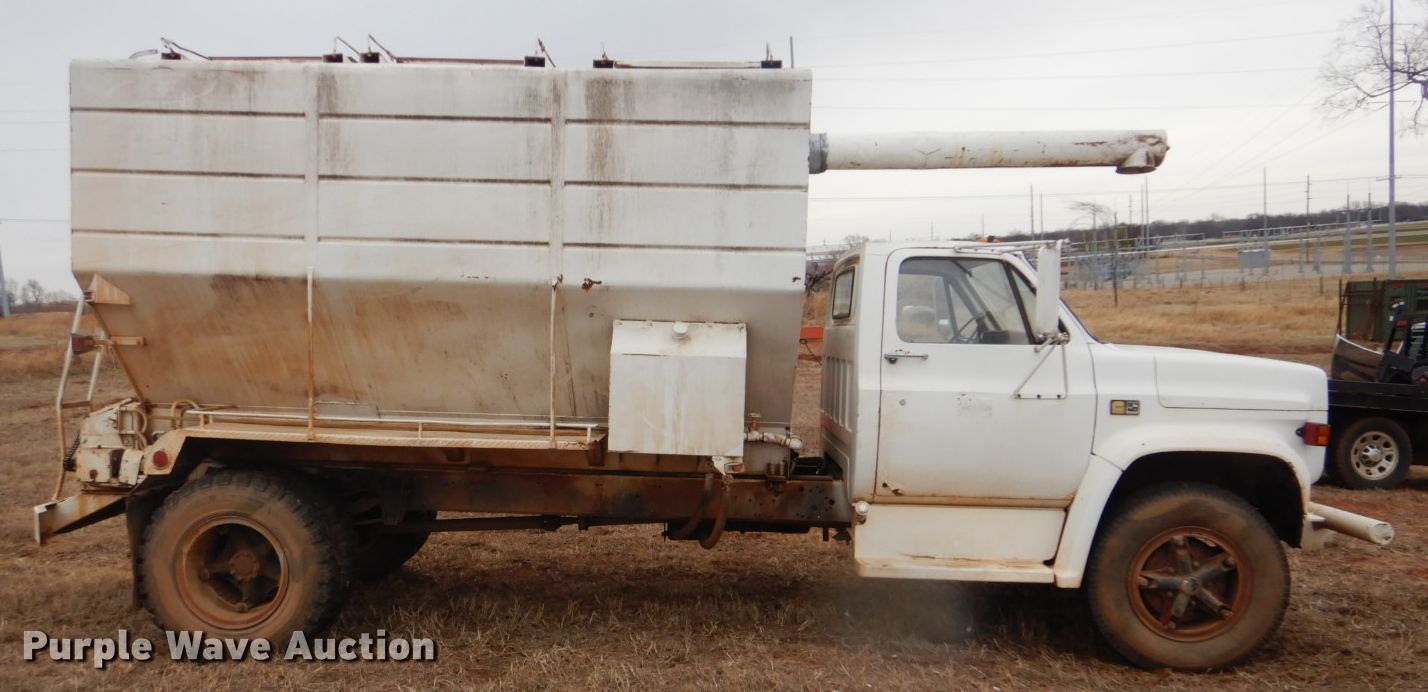 Purple Wave is selling a used Fertilizer or Feed Delivery Truck in Oklahoma. This item is a 1980 Chevrolet CC65042 feed delivery tuck with the following: 91,242 miles on odometer, 350 C.I.D. V8 gas engine, Five speed manual transmission, Two speed rear end, Single axle, AC and heat, PTO, Henderson Manufacturing 12FTB300R feed delivery bed, 12'L, Single compartment, Chief B-330-R feed body, Rear discharge auger, Ground controls, Serial 1830, Spring suspension, Hydraulic brakes, Gladiator 9.0-20 tires, Sale# 2025-KP, Unit# 532