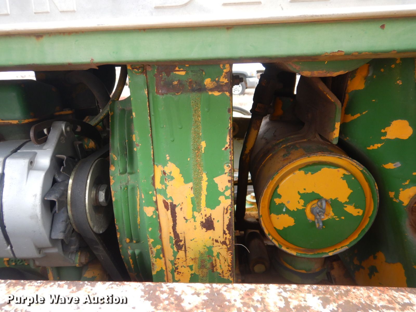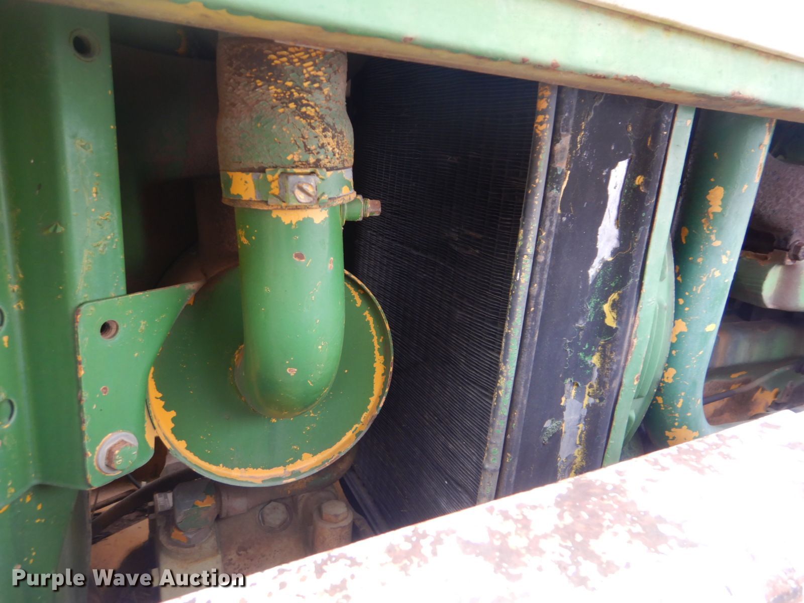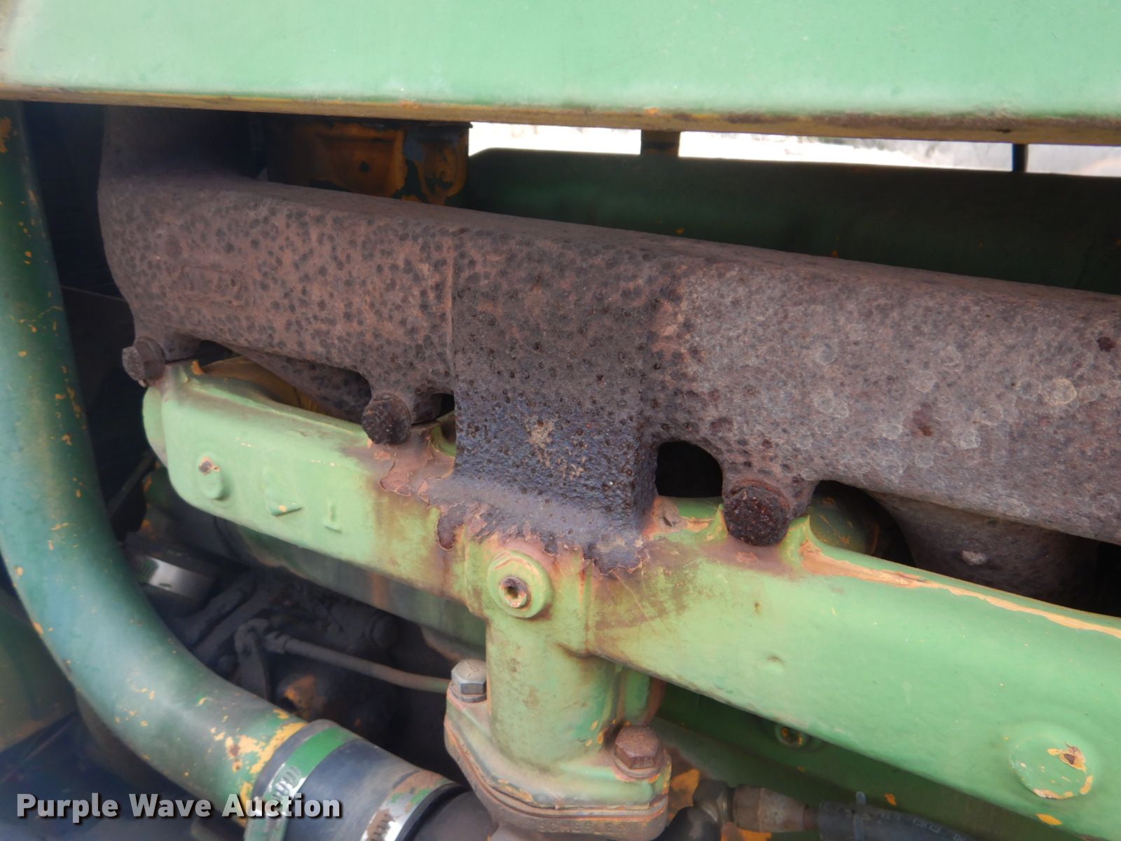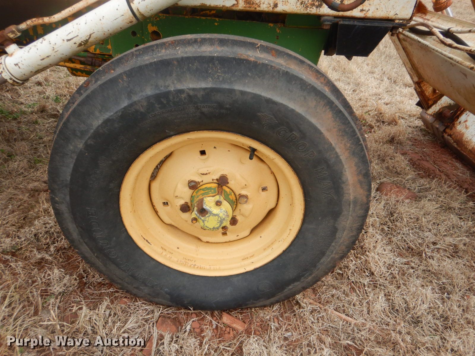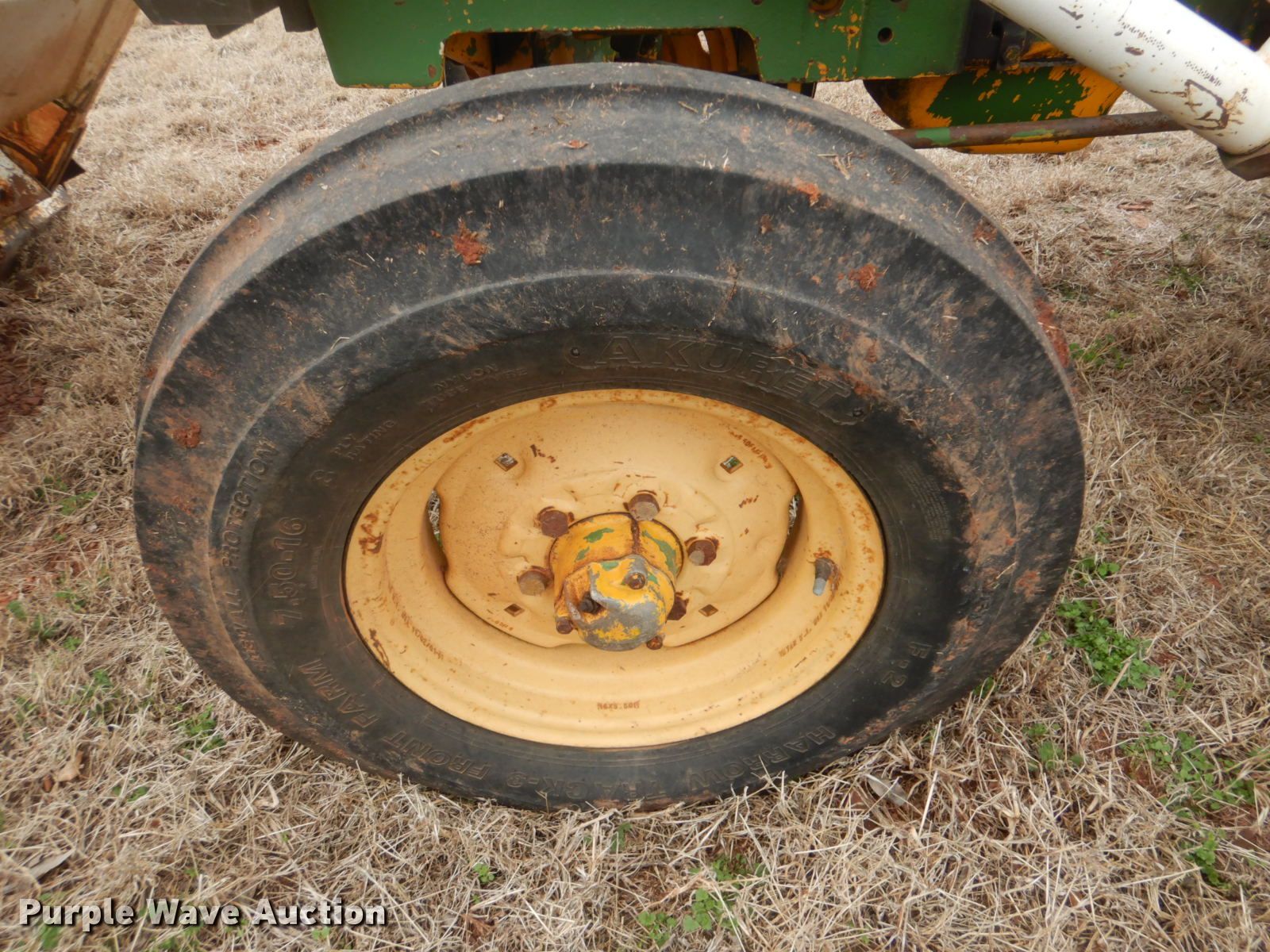 Purple Wave is selling a used Tractor in Oklahoma. This item is a John Deere 401 tractor with the following: 1,887 hours on meter, John Deere 3.3L four cylinder diesel engine, 59 HP, Manual transmission, 8F-4R gears, Work Master 800 loader, 55"W self-leveling bucket, Bale spear, Two lever controls, 540 PTO, Three point, Top link, 7.5-16 front tires, 14.9-28 rear tires, Sale# 2026-KP, Serial 144210
