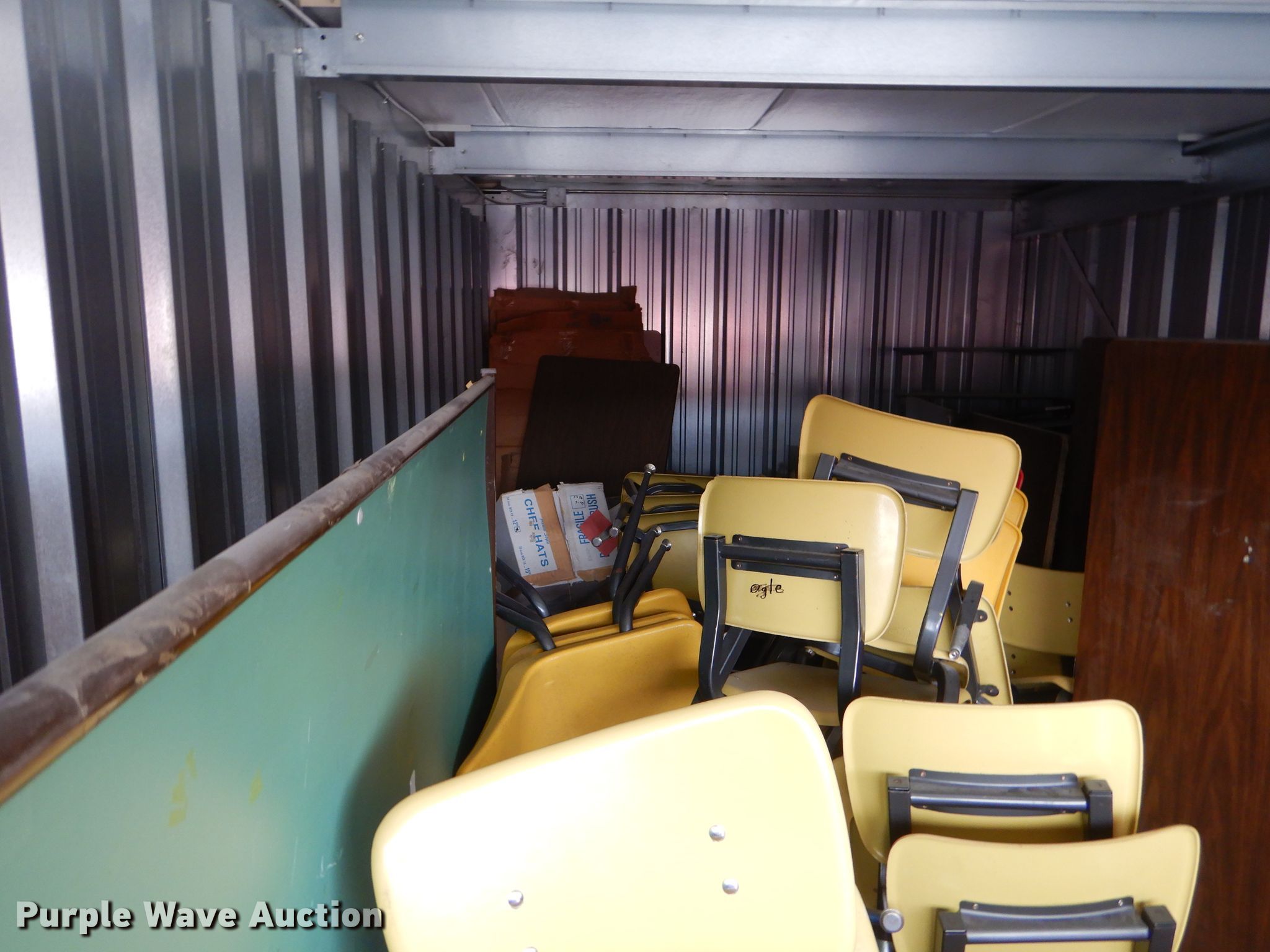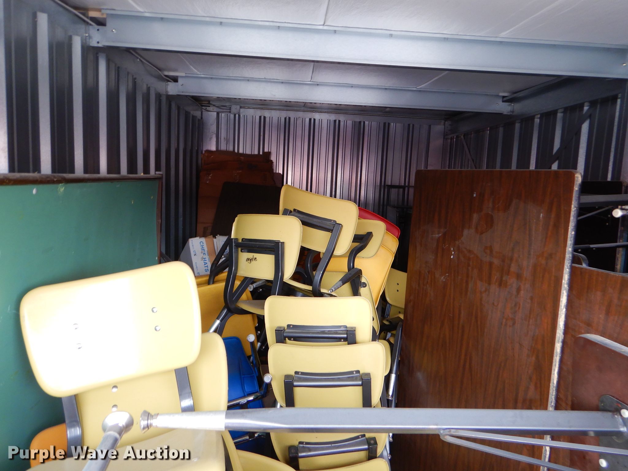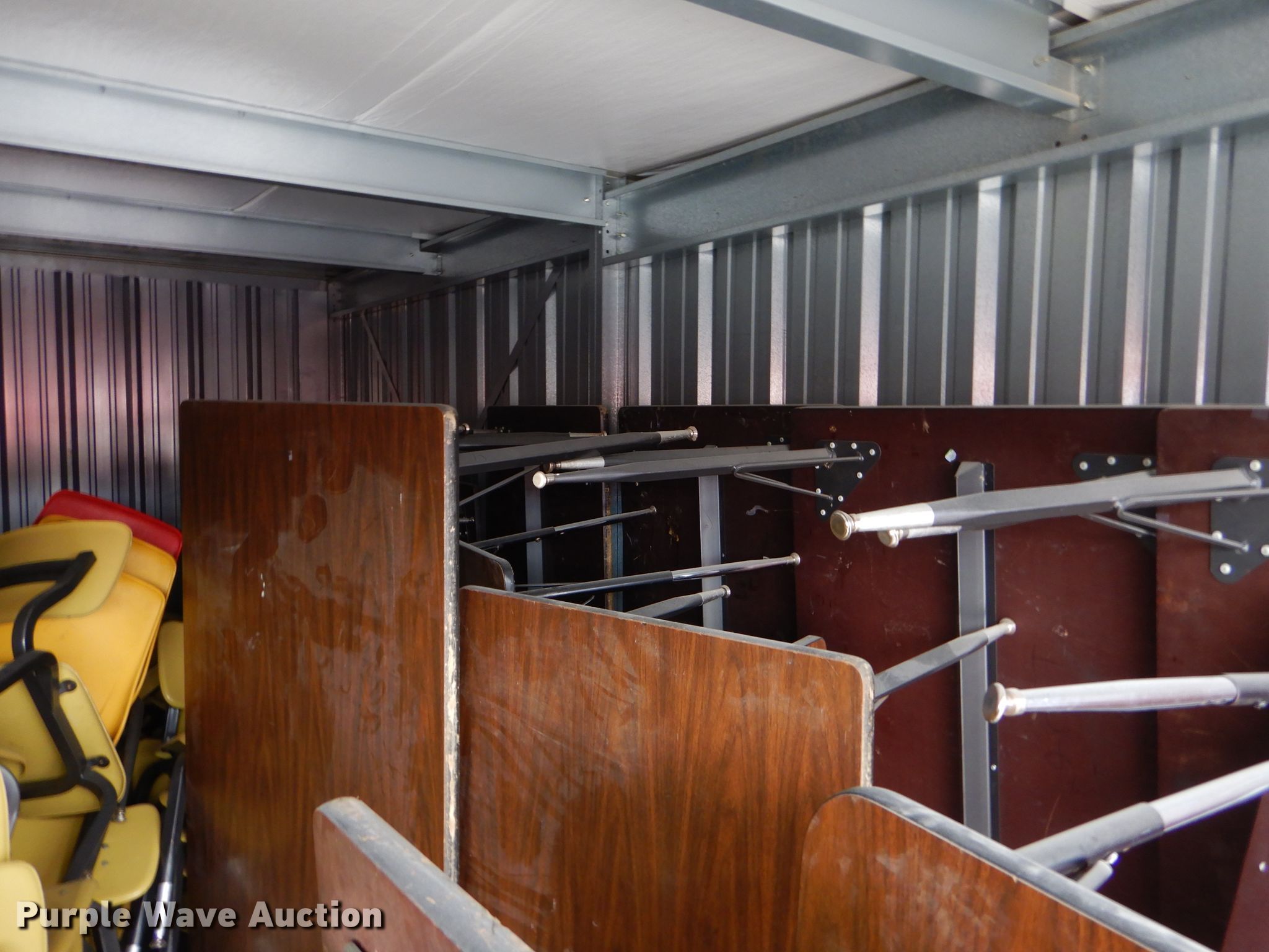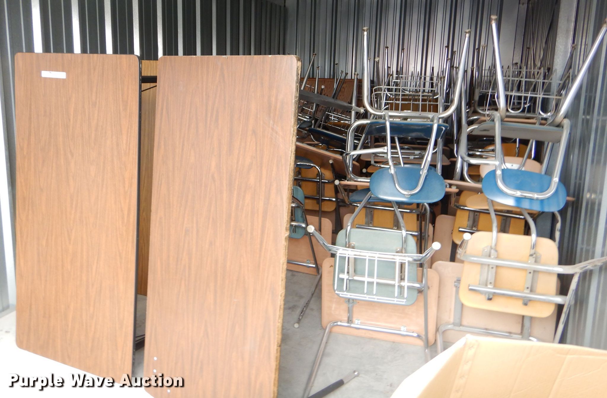 Purple Wave is selling a used Furniture in Kansas. This item is a Furniture with the following: (35) desks, (15) 5' desks, (12) counter tops, Metal table legs, (8) oak dividers, Approximately 40 chairs