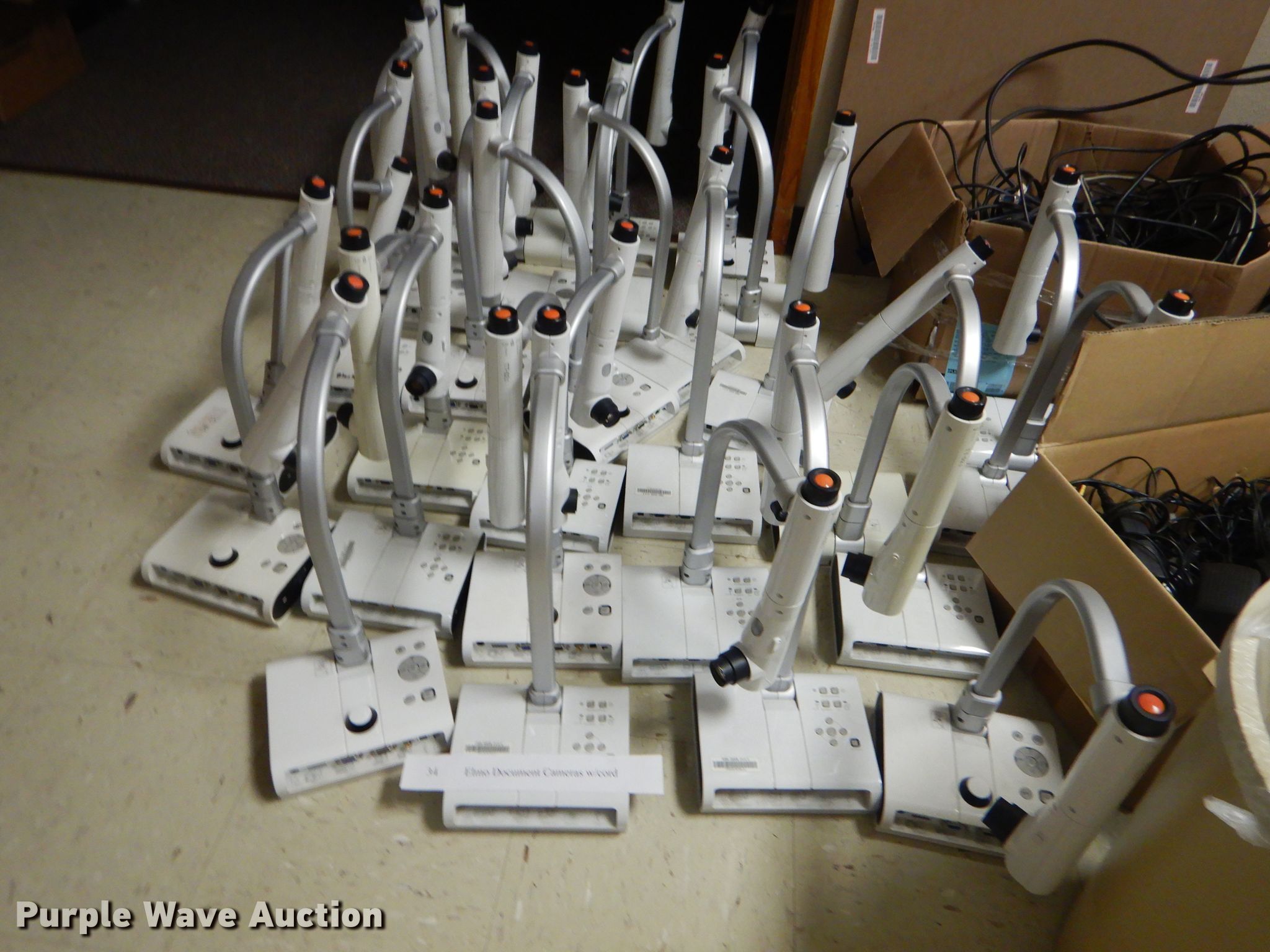 Purple Wave is selling a used Electronics in Kansas. This item is a Approximately 47 Elmo document cameras with the following: Approximately 34 with power cords