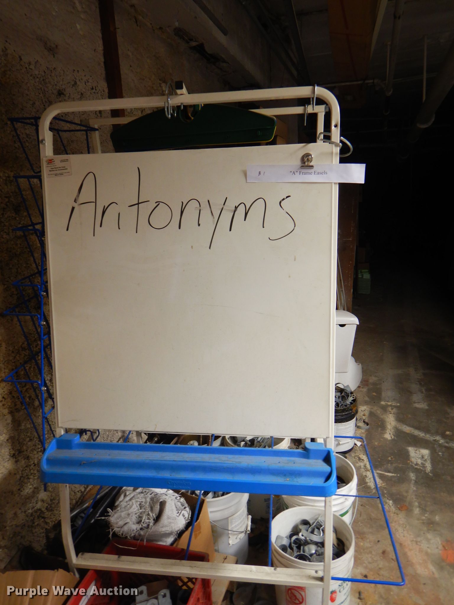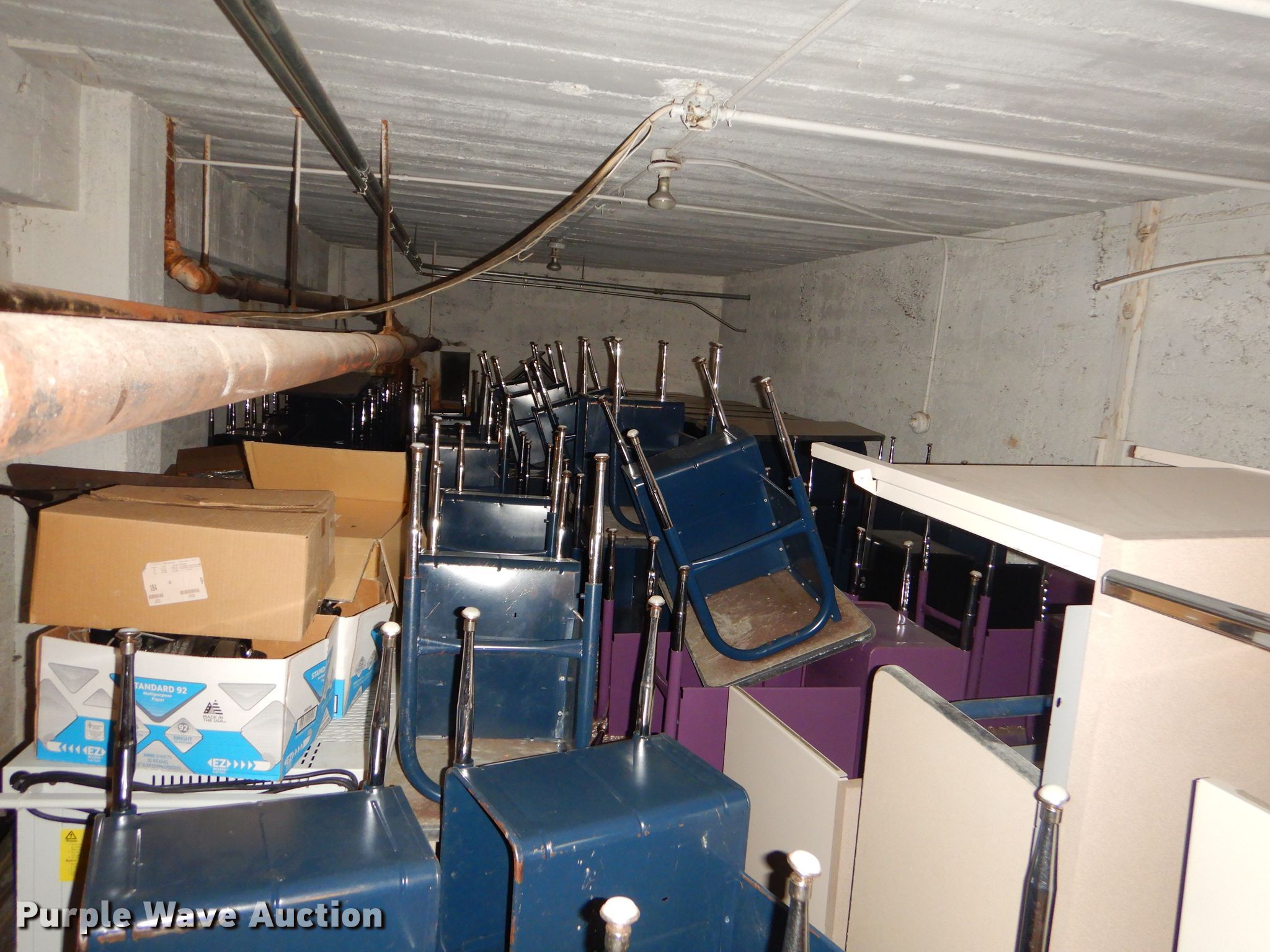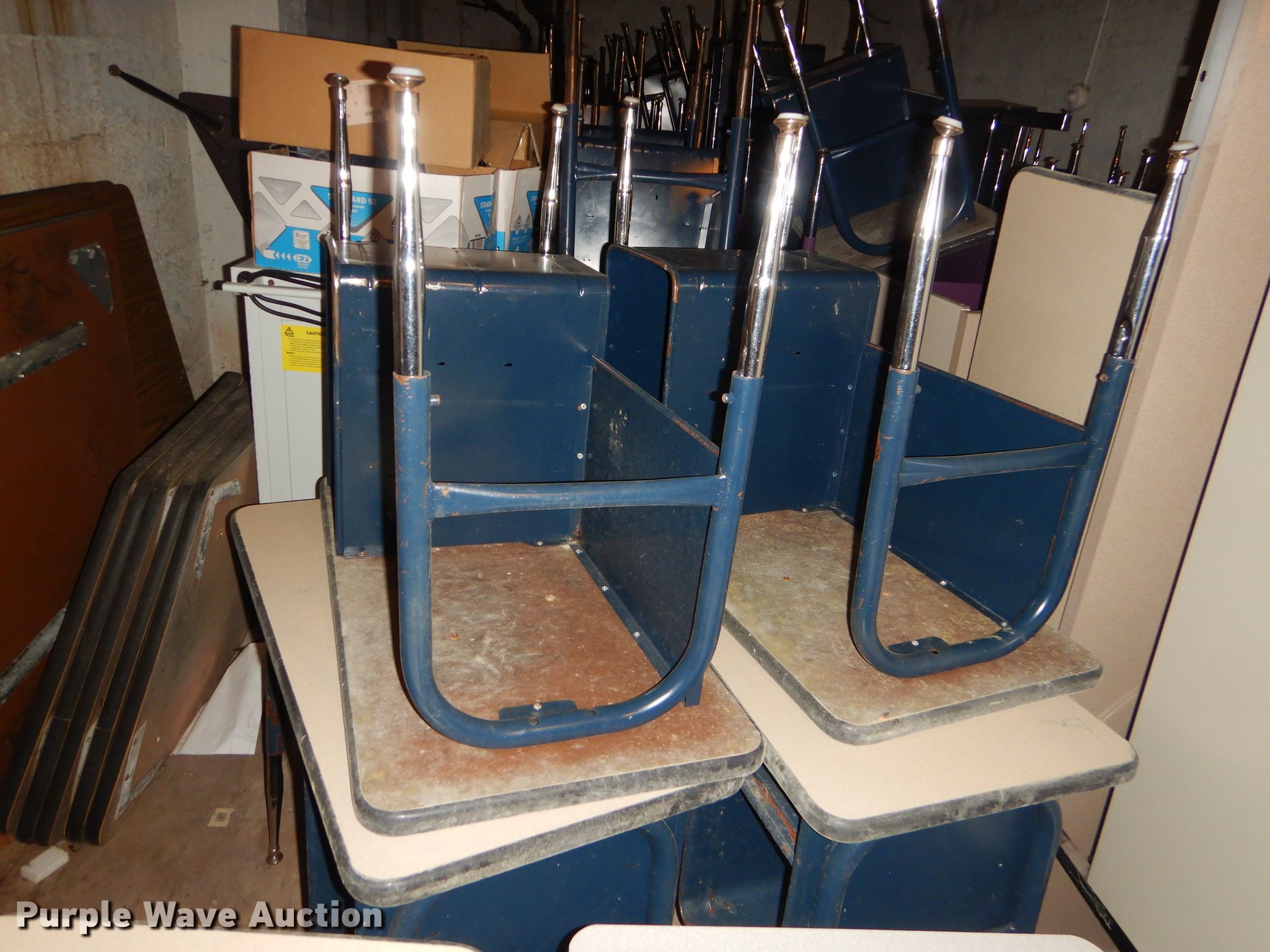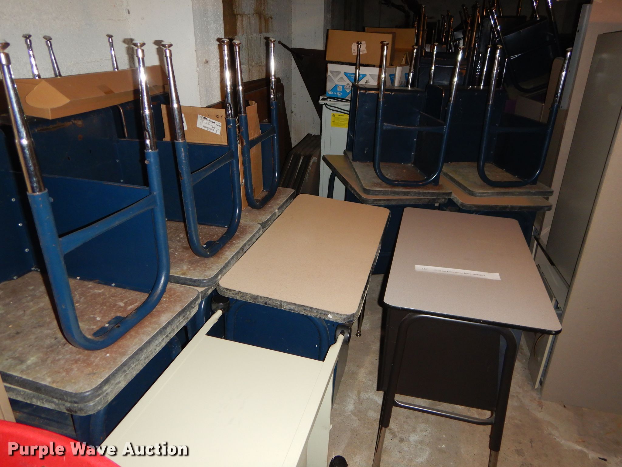 Purple Wave is selling a used Furniture in Kansas. This item is a Furniture with the following: (2) teachers desks, Approximately 150 student desks, (3) A-frame easels