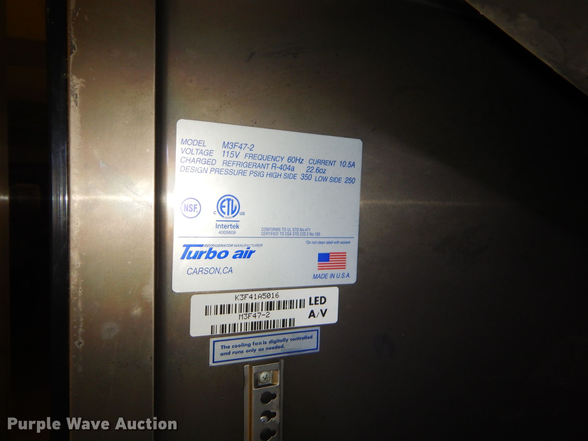 Purple Wave is selling a used Appliances in Kansas. This item is a M3 Turbo M3F47-2 freezer with the following: 115V, Serial K3F41A5016