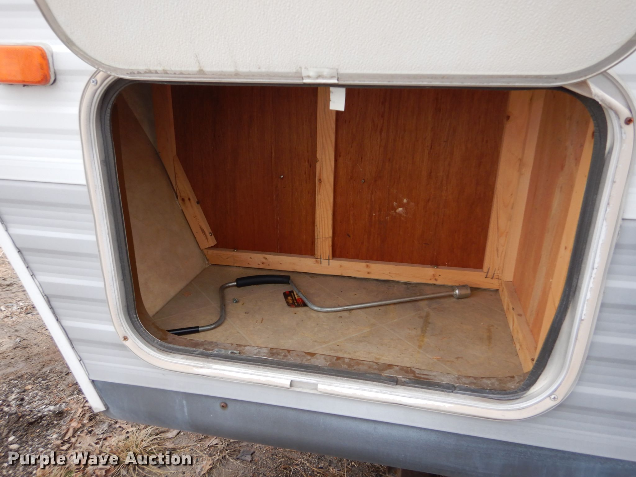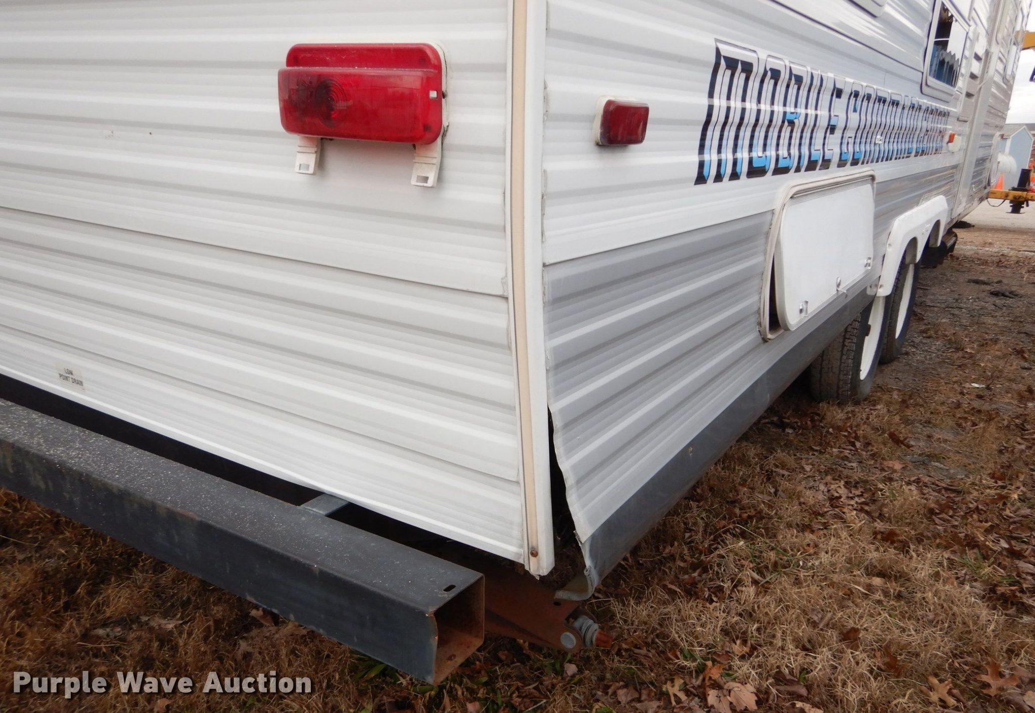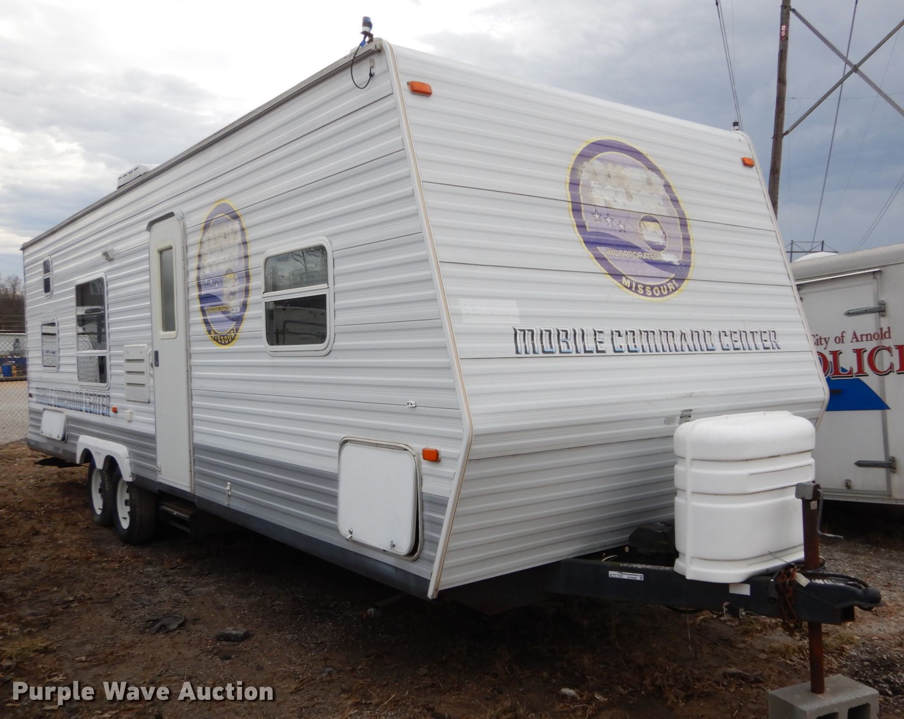Purple Wave is selling a used RV in Missouri. This item is a 2003 Jay Flight 29BH camper with the following: 27'L, Kitchen, Sink, Refrigerator/freezer, Microwave, Oven, Propane stove, Living room, Table, Couch, Bathroom, (2) twin beds, Heater, AC unit, 2 5/16" ball hitch, Spring suspension, Electric brakes, Tandem axle, 205/75R15 tires