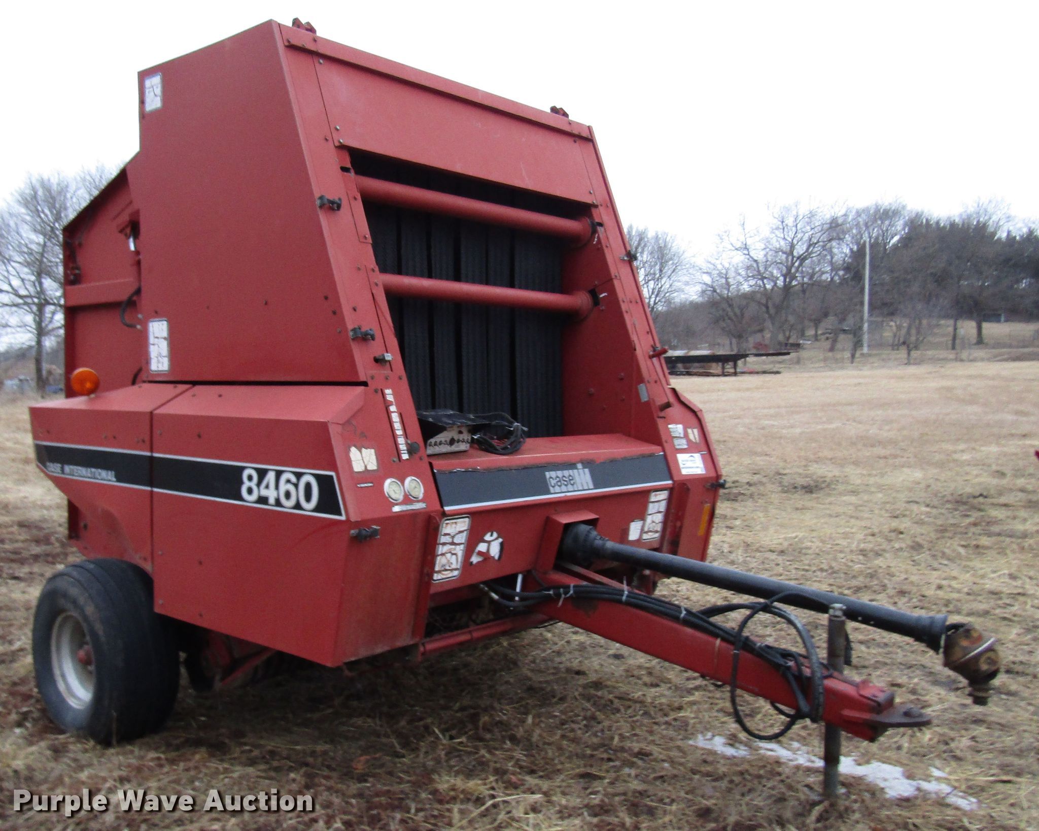 Purple Wave is selling a used Round Baler in Kansas. This item is a 1990 Case IH 8460 round baler with the following: 5' x 6' bale capacity, Hydraulic pickup lift, Auto-tie, Twin twine tie, 540 PTO, 31x13.50-15 tires, Non-operational auto-tie, Serial CFH0056794