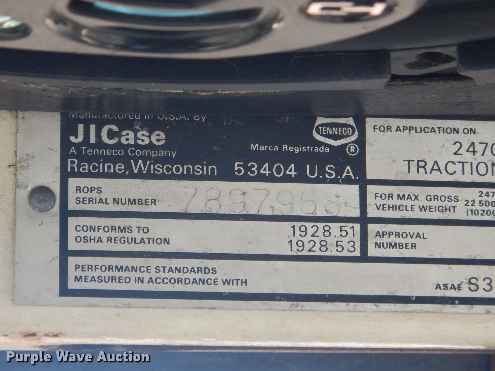 Purple Wave is selling a used Tractor in Kansas. This item is a Case 2470 4WD tractor with the following: 9,121 hours on meter, Hours may vary, still in use, Case six cylinder diesel engine, 154 HP, Powershift transmission, 12F-2R gears, AC and heat, 10'W front blade, Two-lever controls, Three point, Seven pin outlet, 1000 PTO, (2) rear hydraulic remotes, 102" wheelbase, 23.1-30 tires, Serial 10122004