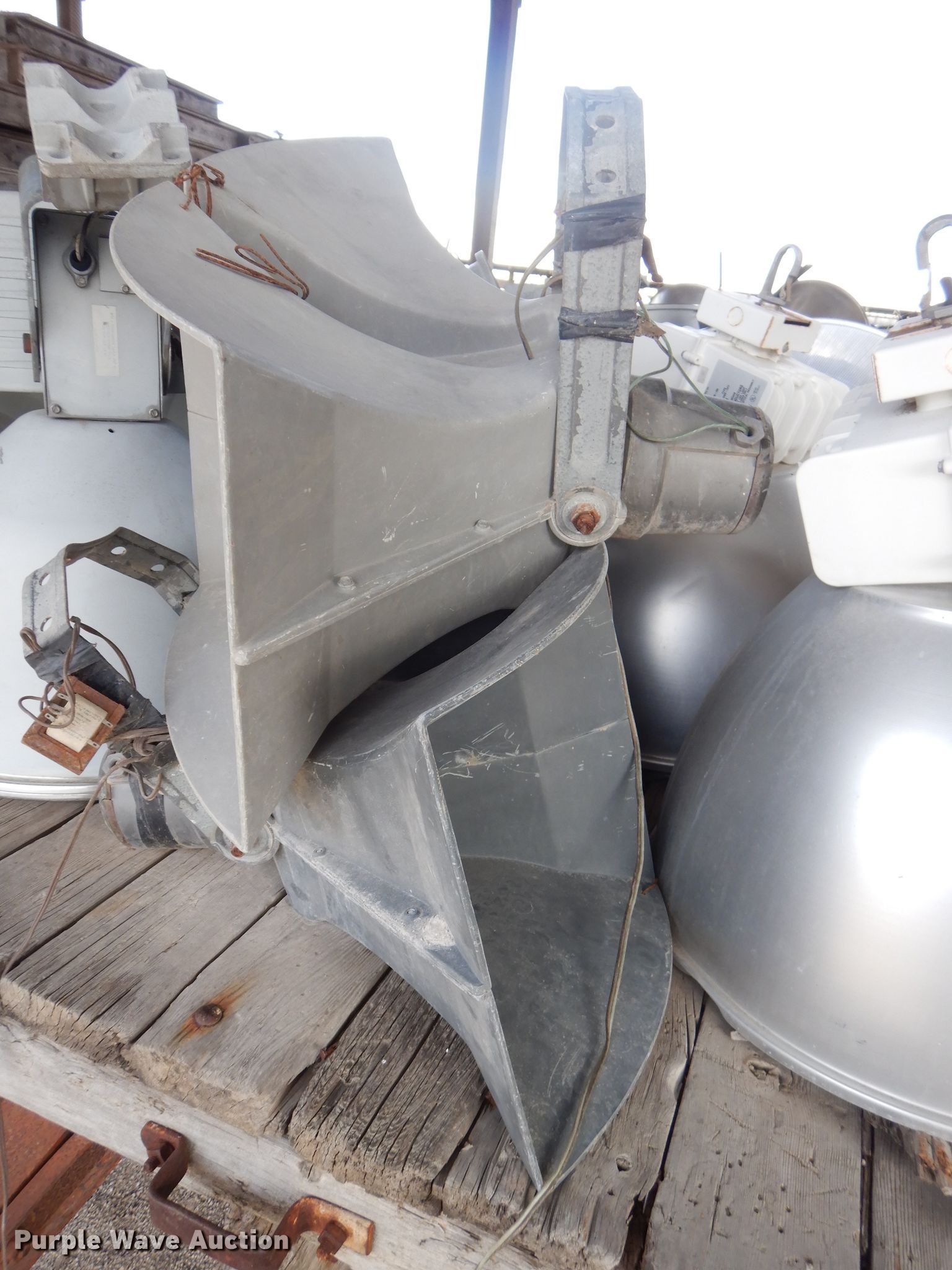 Arena lights. Approx. 16 metal halide lights 400 watts, 120/240V, Some lenses and bulbs missing, Security lights, Loud speakers, Wagon not included. 8510 KS-7. Mound City, KS 66056