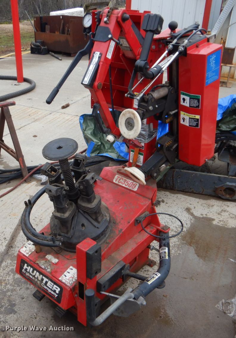 Purple Wave is selling a used Tools in Oklahoma. This item is a 2005 Hunter TC3500 tire machine with the following: Single phase, 800 ft lbs torque, 15 RPM clockwise and counter clockwise, Side shovel, Dual inflation ring, Clamping device, Inflator and pressure limiter, Air inflation pedal, Tire bead loosening/wheel rotation pedal, Wheel clamping pedal