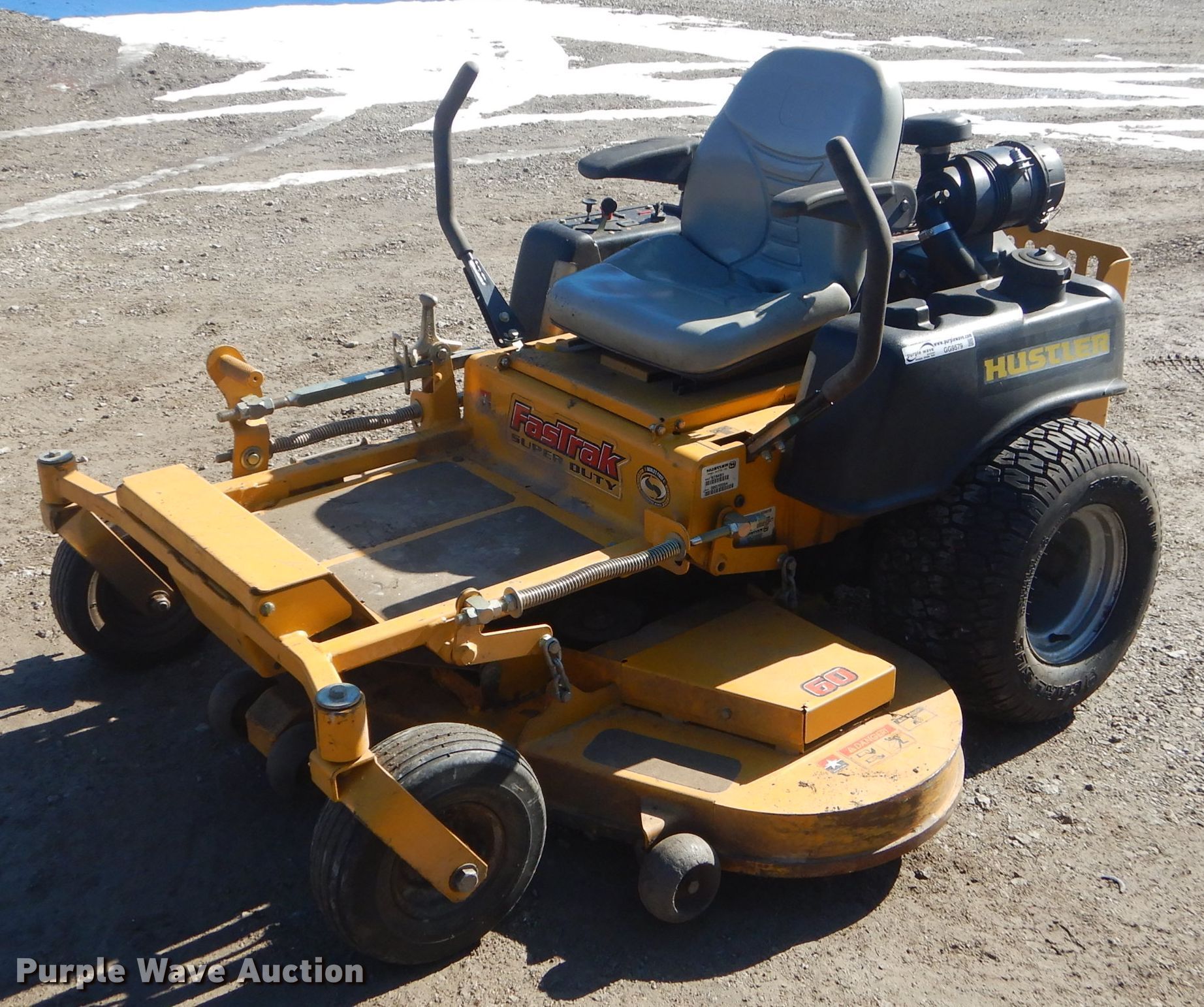 Purple Wave is selling a used Commercial Turf Mower in Kansas. This item is a Hustler FasTrak Super Duty ZTR lawn mower with the following: 721 hours on meter, 60" cut, Kawasaki gas engine, 25 HP, Hydrostatic transmission, 13x5.00-6 front tires, 20x12.00 rear tires, Serial 08070554