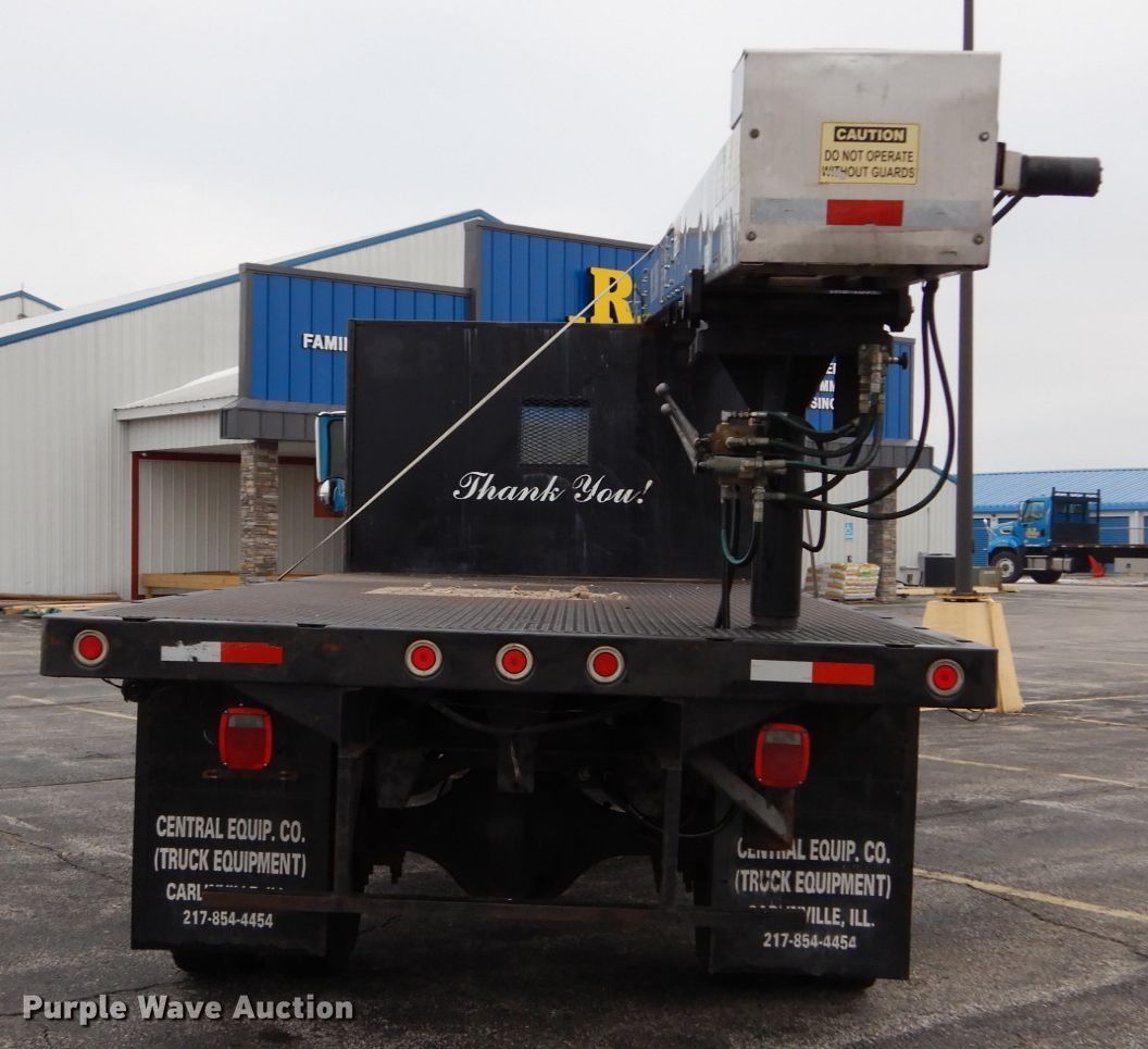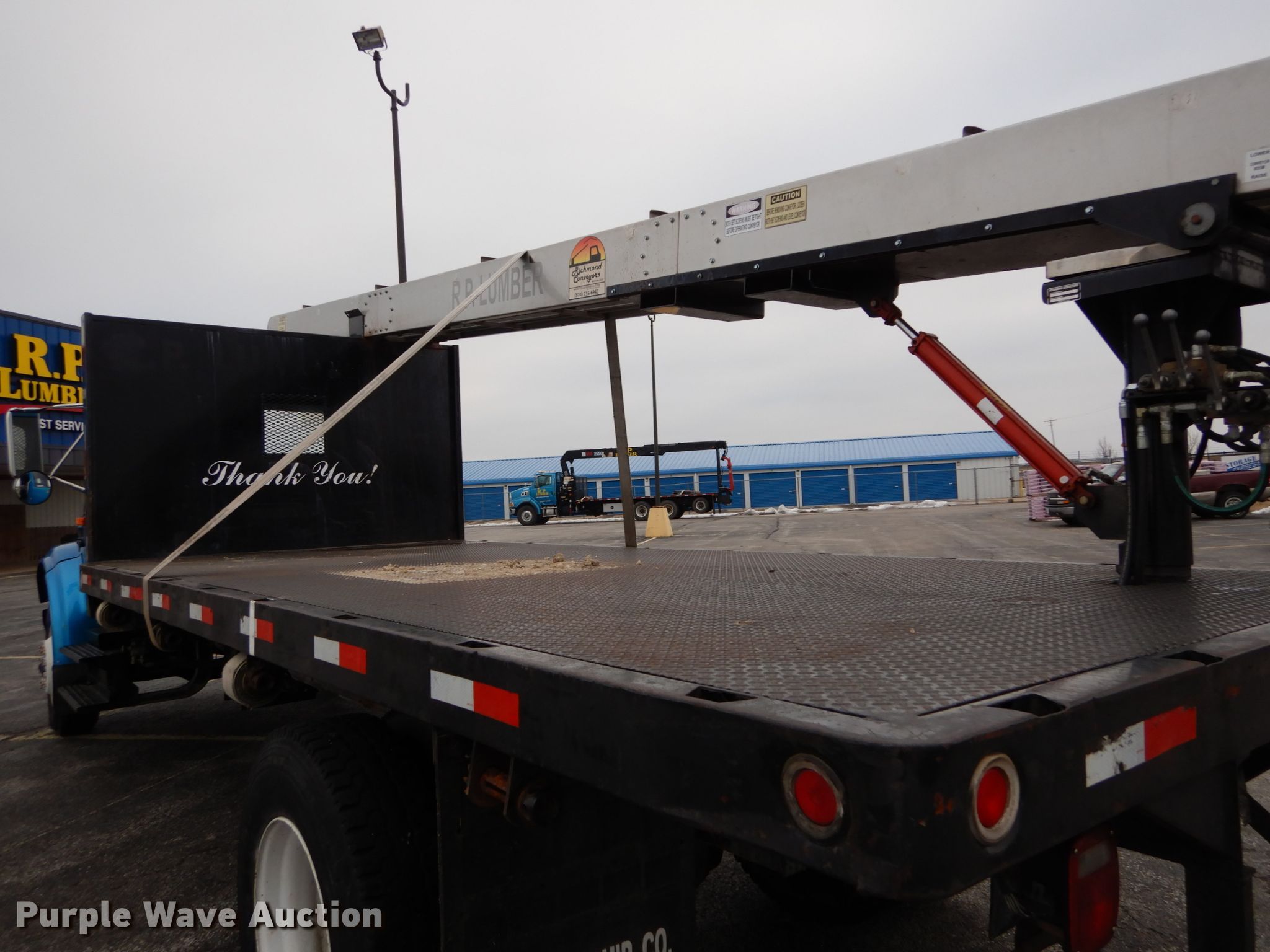 1995 International 4700 dump flatbed truck with conveyor. 162,635 miles on odometer, International T466E 7.3L V8 diesel engine 190 HP, Five speed manual transmission, Single axle, Heat, PTO, 18'L x 96"W flatbed Single ram hoist, Richmond 1492 conveyor 24'L, Serial 0101080408-1, Spring suspension, Hydraulic brakes, 221" wheelbase, 11R22.5 tires, Possible heater core issue, Possible rear main seal issue, Unit# 229. Illinois title. Title distribution may be delayed up to 14 days from verification of funds. 1HTSCABP5SH674104. R.P. Lumber Co., Inc.. 820 South Ewing Road. Pontiac, IL 61764