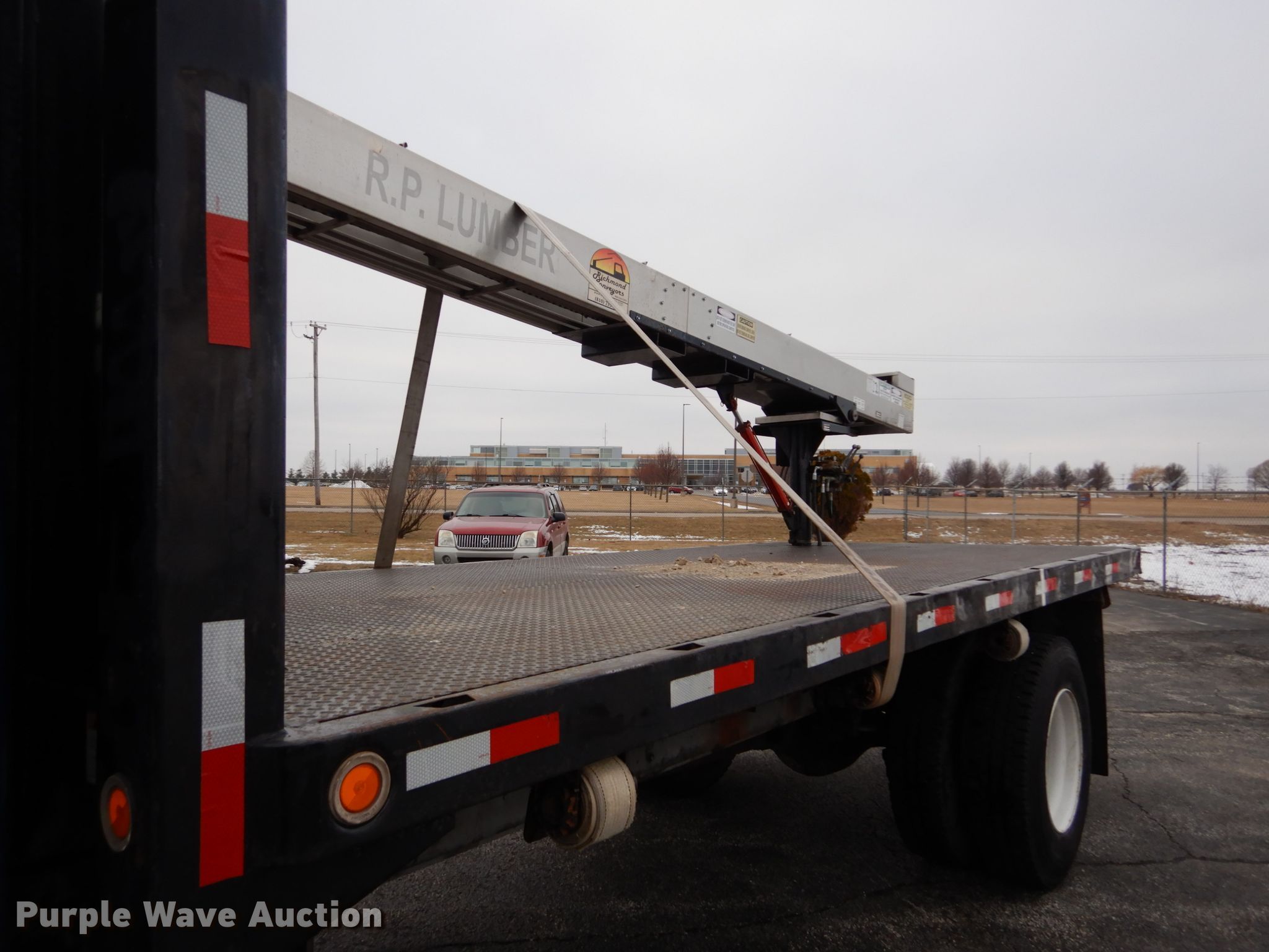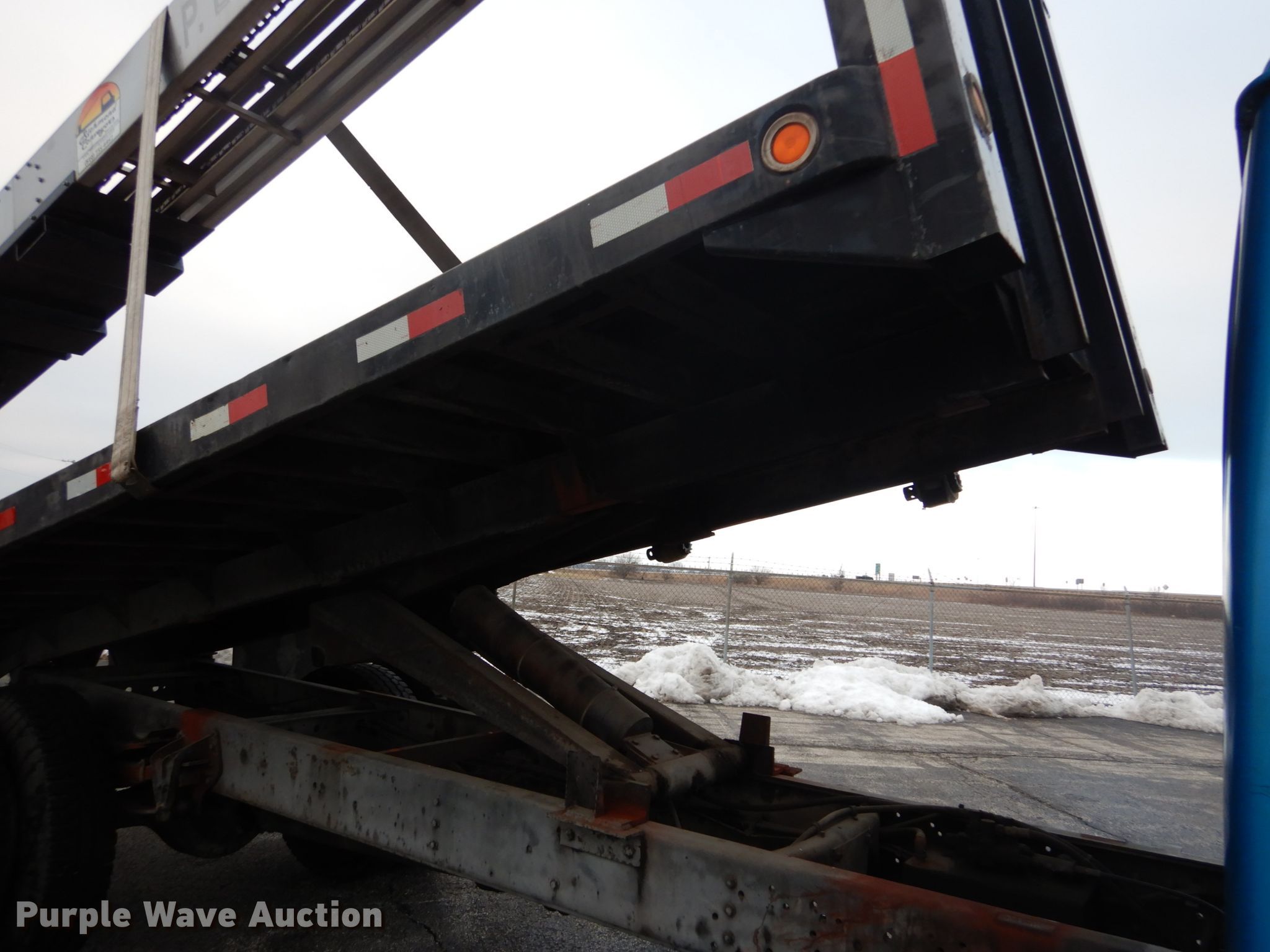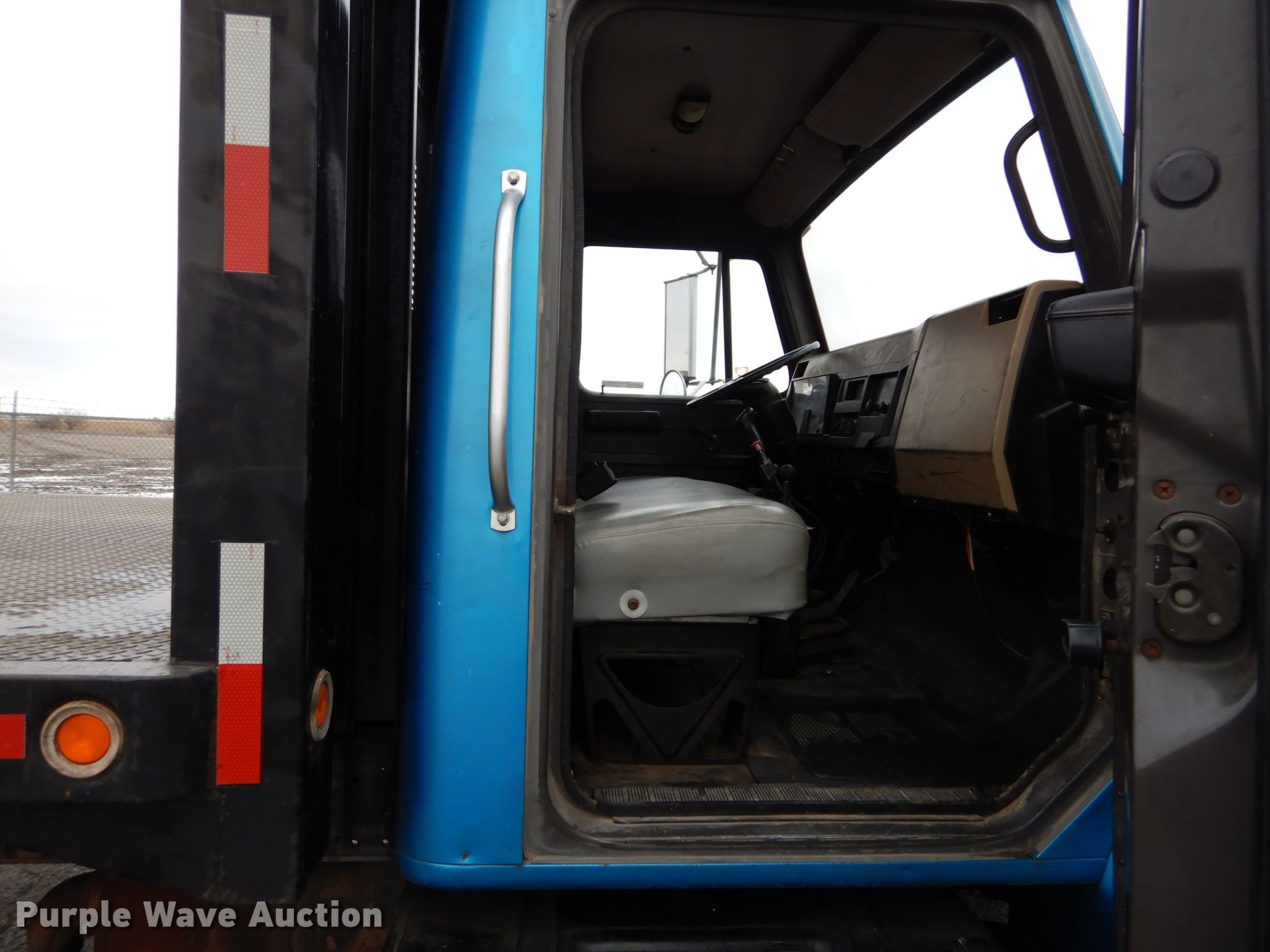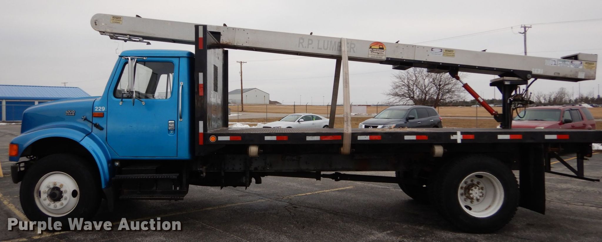 Purple Wave is selling a used Flat Bed Truck in Illinois. This item is a 1995 International 4700 dump flatbed truck with conveyor with the following: 162,635 miles on odometer, International T466E 7.3L V8 diesel engine, 190 HP, Five speed manual transmission, Single axle, Heat, PTO, 18'L x 96"W flatbed, Single ram hoist, Richmond 1492 conveyor, 24'L, Serial 0101080408-1, Spring suspension, Hydraulic brakes, 221" wheelbase, 11R22.5 tires, Possible heater core issue, Possible rear main seal issue, Unit# 229