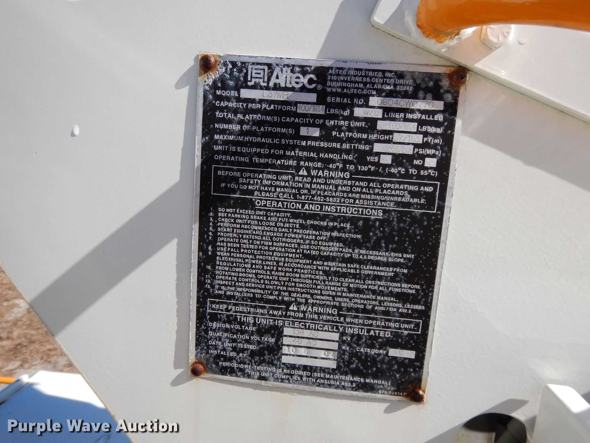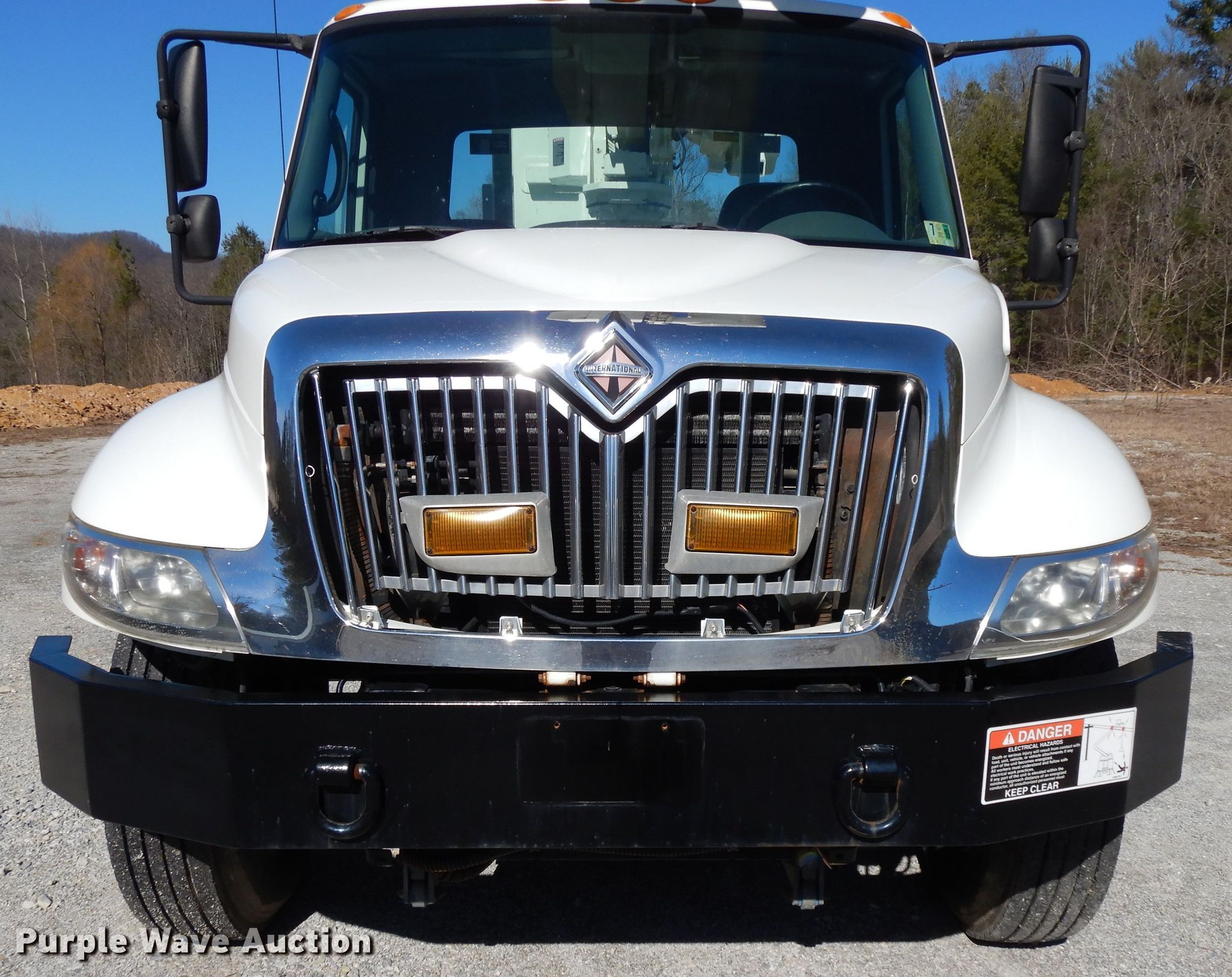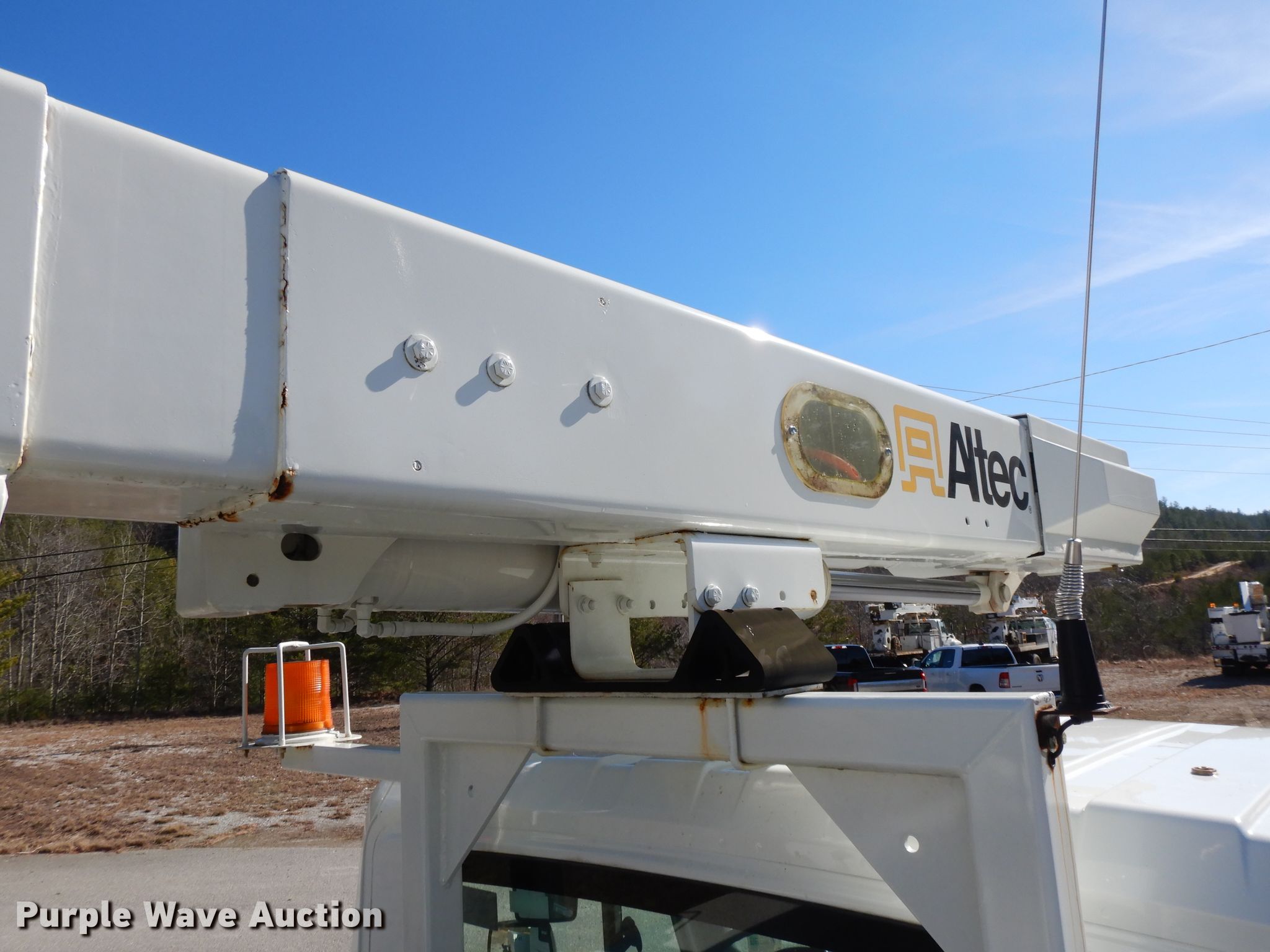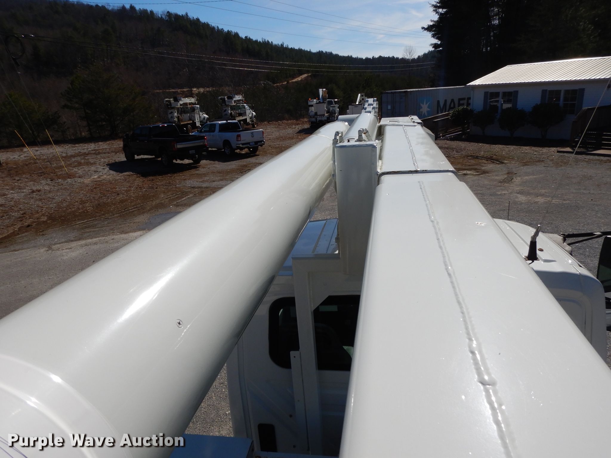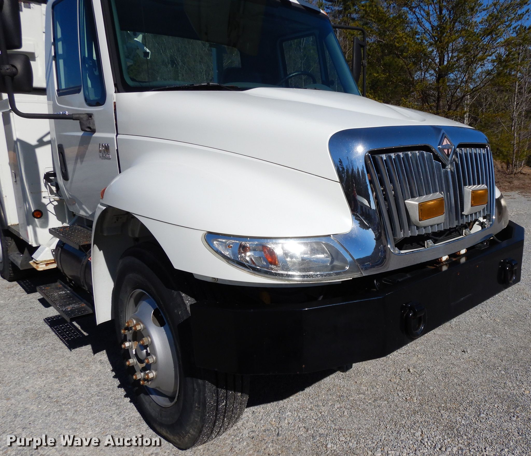Purple Wave is selling a used Bucket Truck in North Carolina. This item is a 2005 International 4300 bucket truck with the following: 232,687 miles on odometer, International DT466 7.6L L6 diesel engine, Allison automatic transmission, Single axle, AC and heat, Auxiliary controls, Brake controller, PTO, Altec 12.5'L utility bed, Altec L37MR articulating, insulated boom, 400 lbs maximum lift capacity, 42' maximum lift height, Man basket, Platform and ground controls, Material handler, Serial 0804CW0770, Spring suspension, Air brakes, 11R22.5 tires