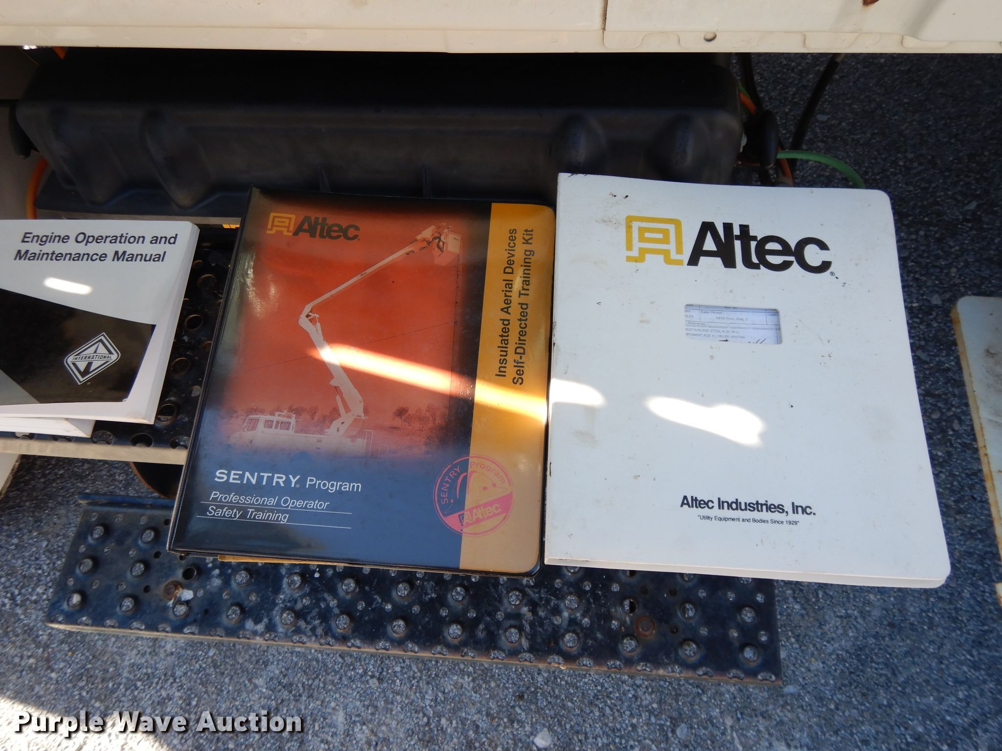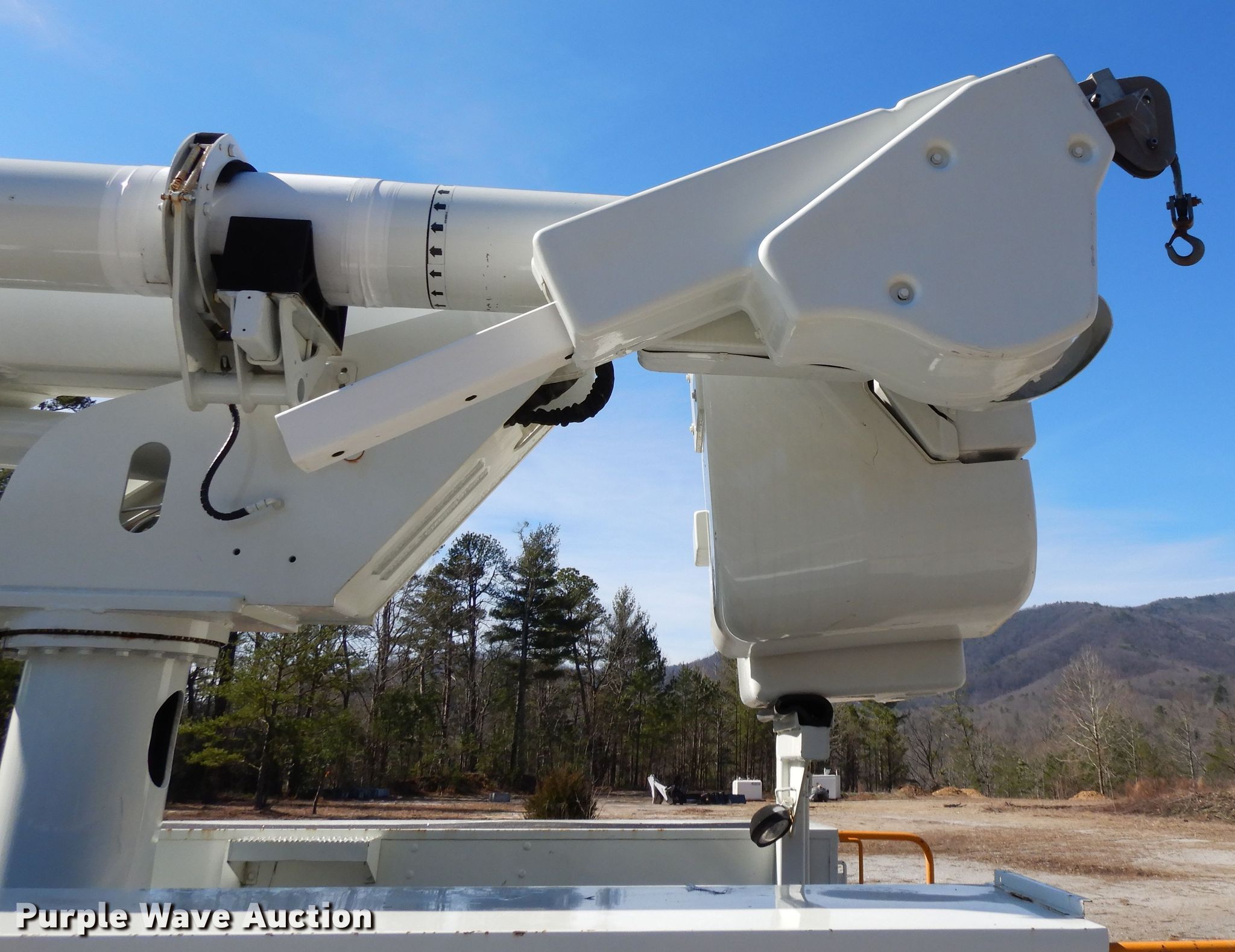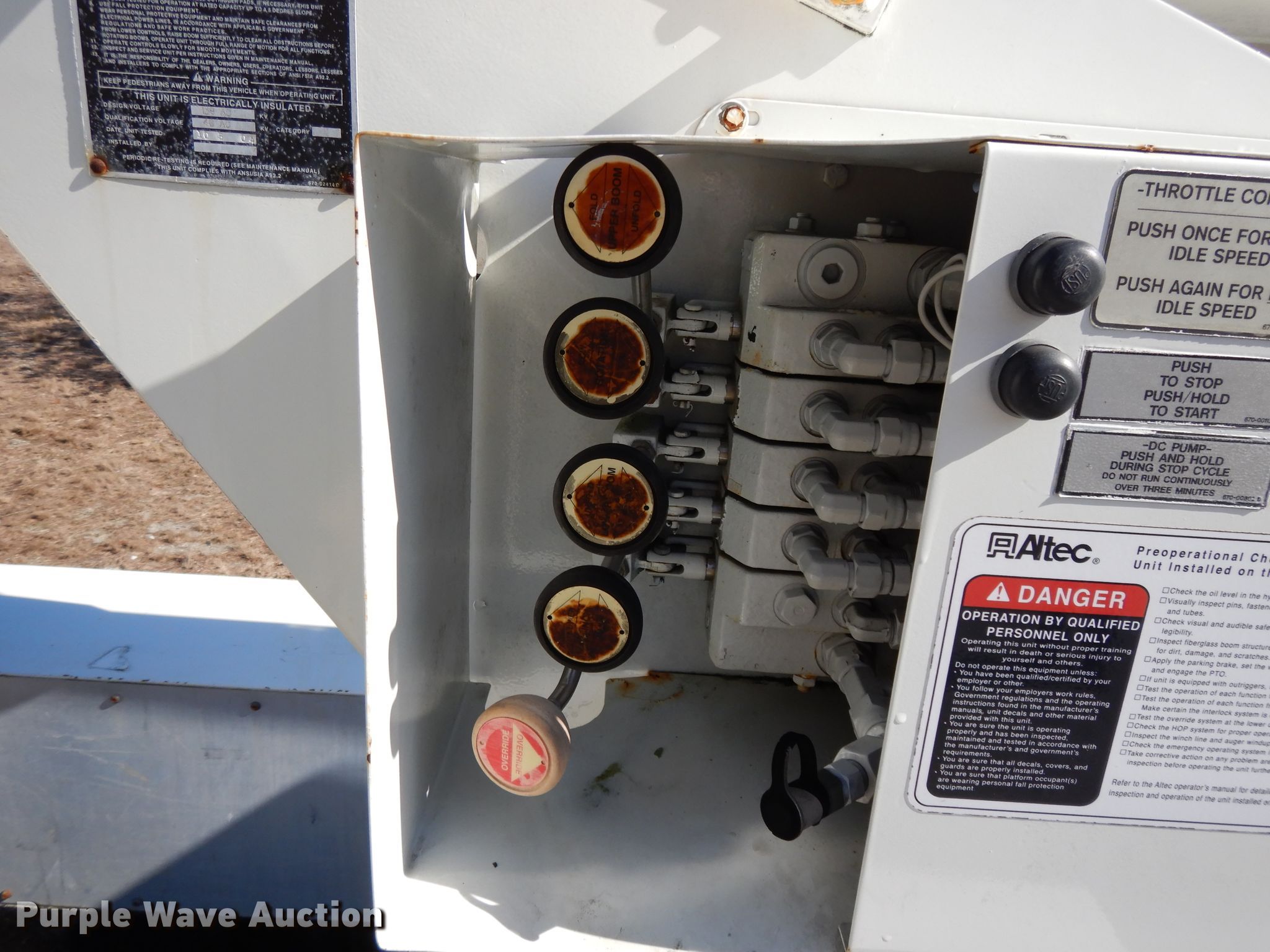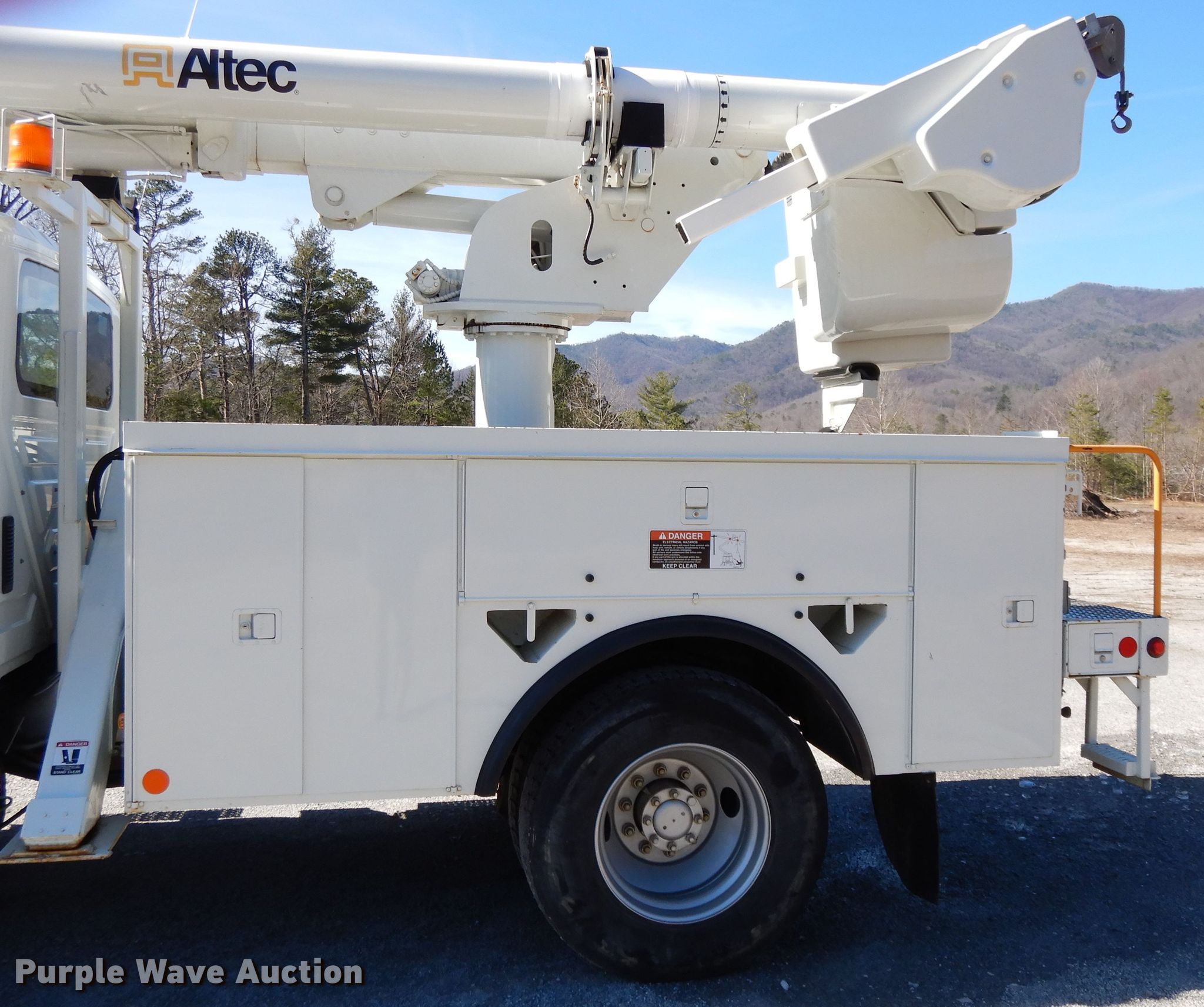 Purple Wave is selling a used Bucket Truck in North Carolina. This item is a 2005 International 4300 bucket truck with the following: 232,687 miles on odometer, International DT466 7.6L L6 diesel engine, Allison automatic transmission, Single axle, AC and heat, Auxiliary controls, Brake controller, PTO, Altec 12.5'L utility bed, Altec L37MR articulating, insulated boom, 400 lbs maximum lift capacity, 42' maximum lift height, Man basket, Platform and ground controls, Material handler, Serial 0804CW0770, Spring suspension, Air brakes, 11R22.5 tires