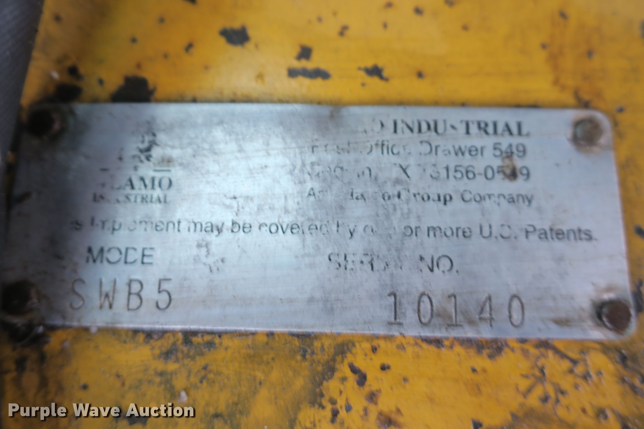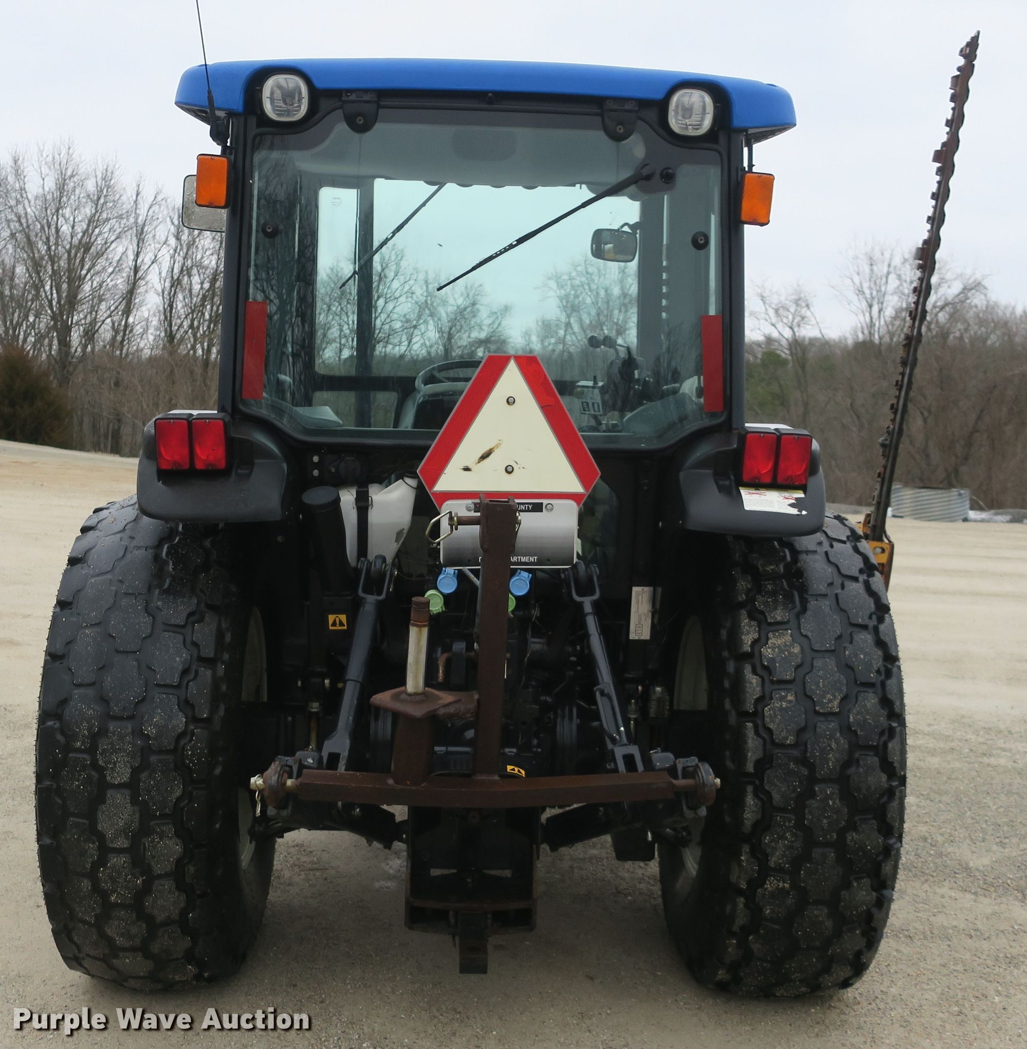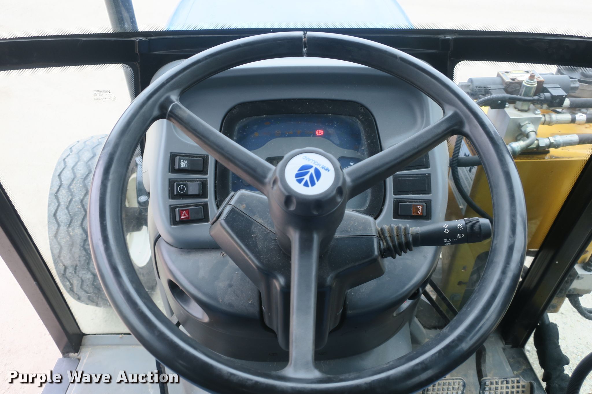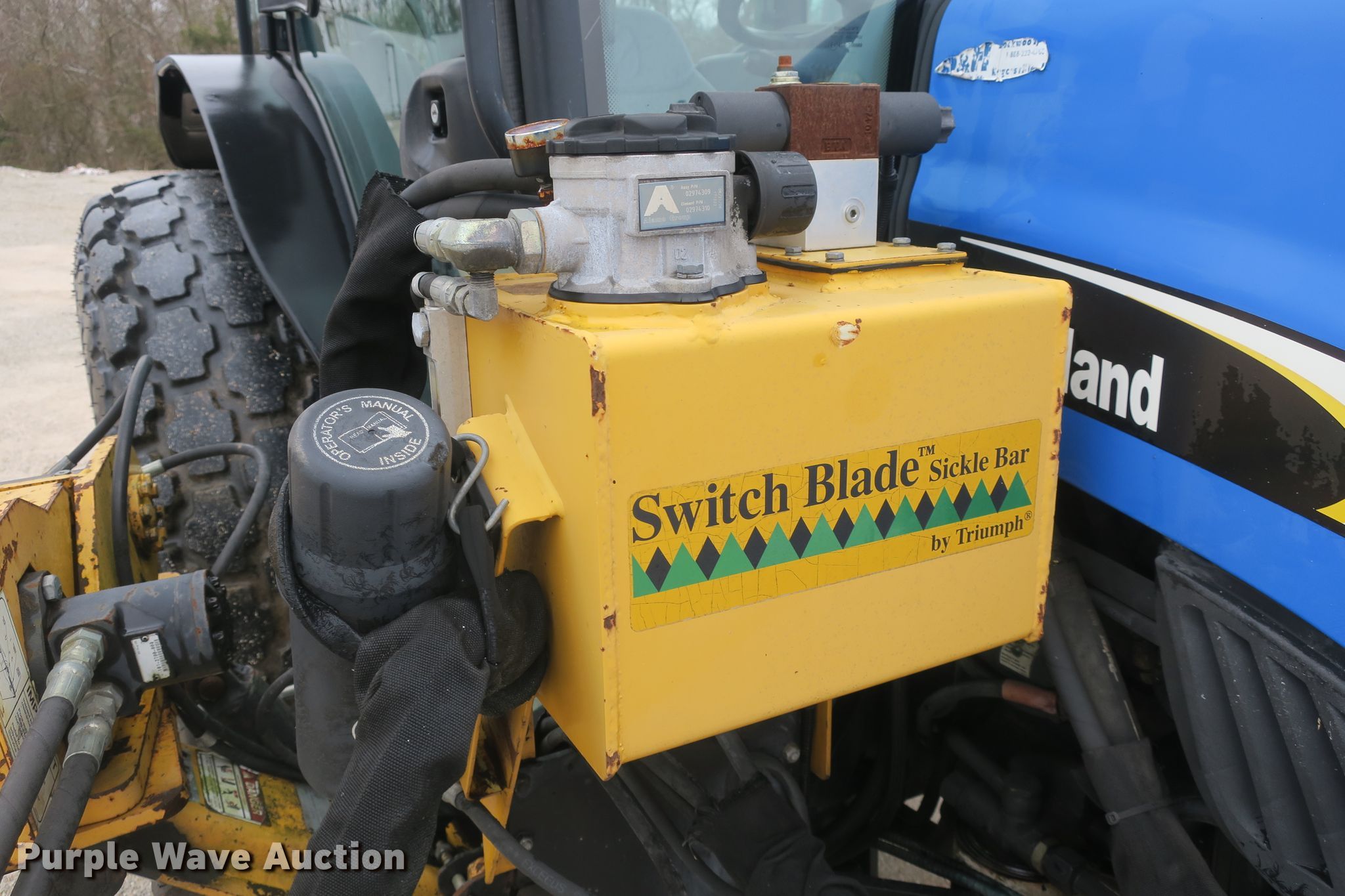 Purple Wave is selling a used Tractor in Missouri. This item is a New Holland TN60DA tractor with the following: 1,287 hours on meter, Iveco 803505C three cylinder diesel engine, Synchro transmission, 16F-16R gears, Differential lock, AC and heat, Three point, Top point, 540 PTO, (2) rear hydraulic remote sets, 11L-15 SL front tires, 16.9-24 rear tires, Alamo SWB5 sickle mower, Serial 10140, Serial HJE051959