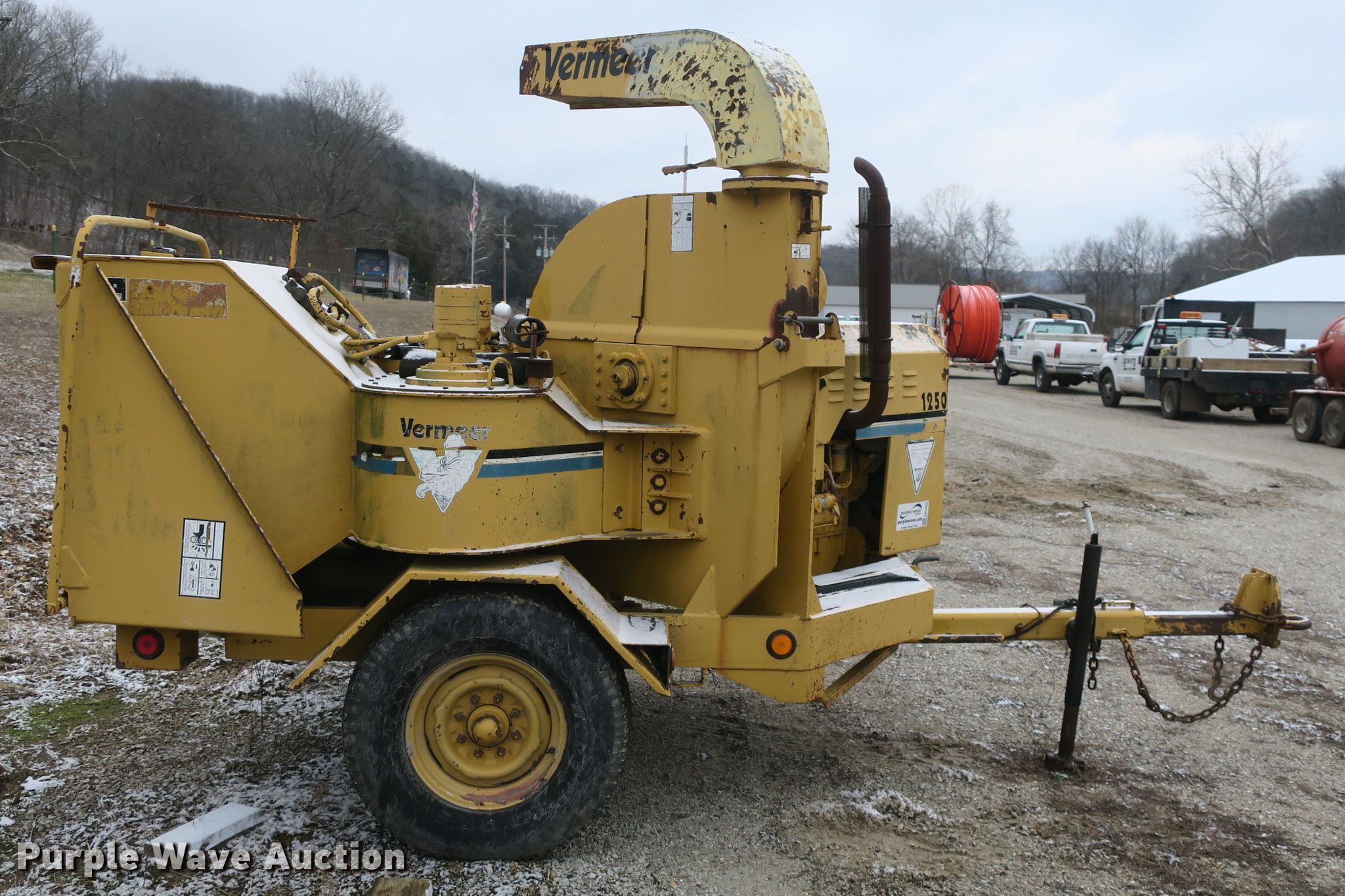 Purple Wave is selling a used Wood Chipper or Stump Grinder in Missouri. This item is a 1997 Vermeer BC1250 wood chipper with the following: 1,160 hours on meter, Perkins four cylinder diesel engine, 48"W feed chute, 12" capacity, Electric brakes, LT235/85R16 tires