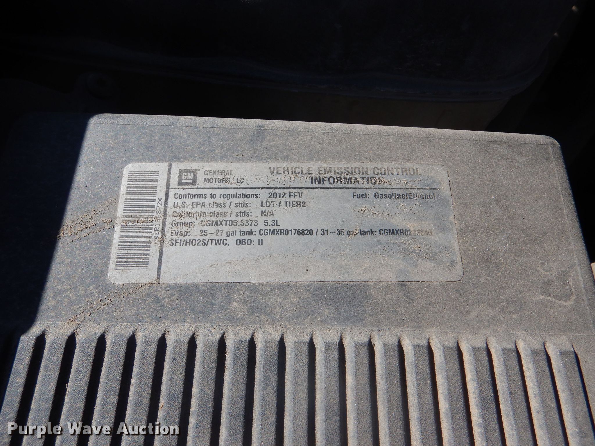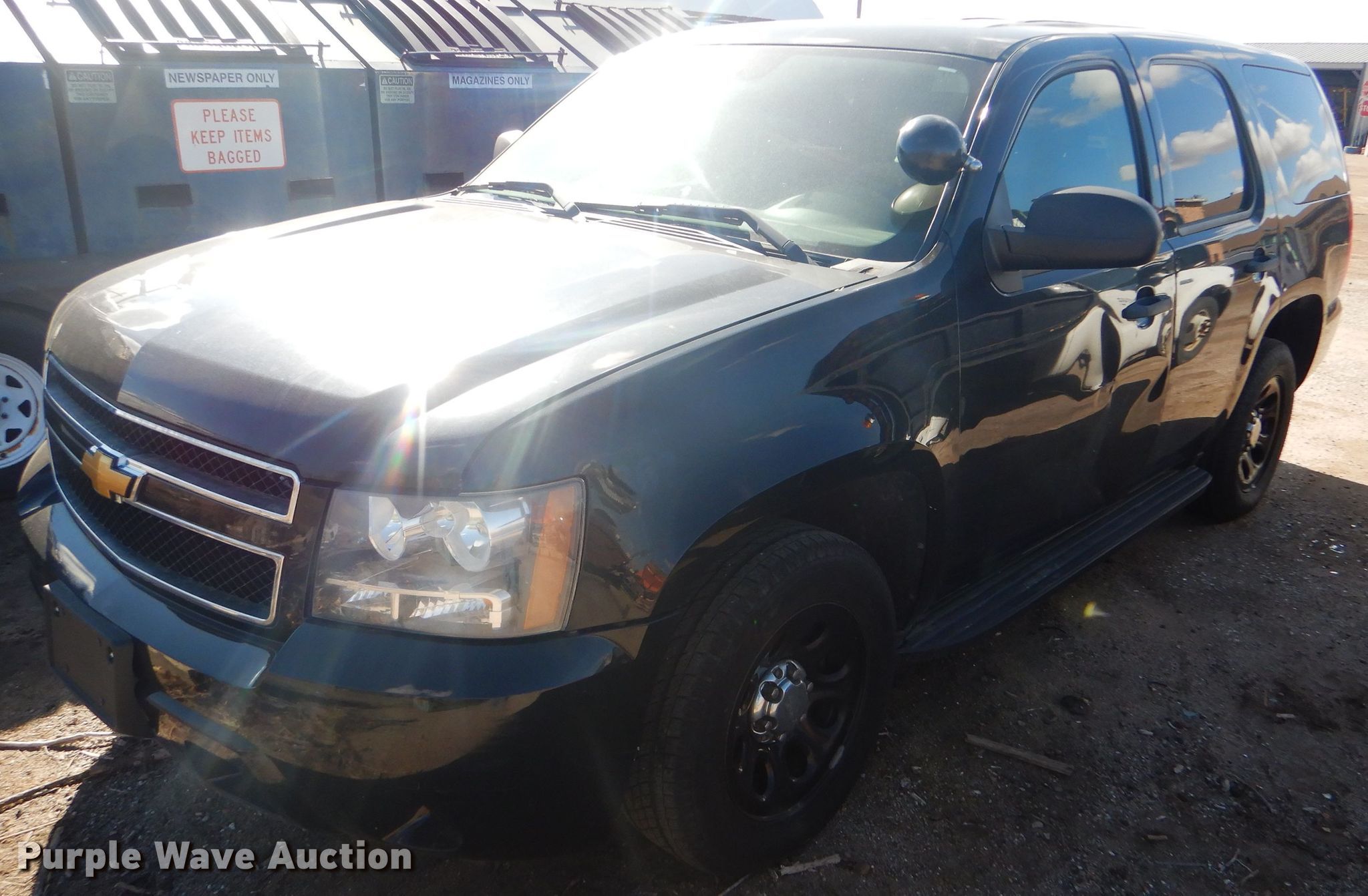 Purple Wave is selling a used Passenger Vehicle in Kansas. This item is a 2012 Chevrolet Tahoe Police SUV with the following: 155,841 miles on odometer, 5.3L V8 OHV 16V FFV gas engine, Automatic transmission, AC and heat, Cruise, Power windows, locks, and seat, 245/65R17 front tires, 245/75R16 rear tires, Coolant leak
