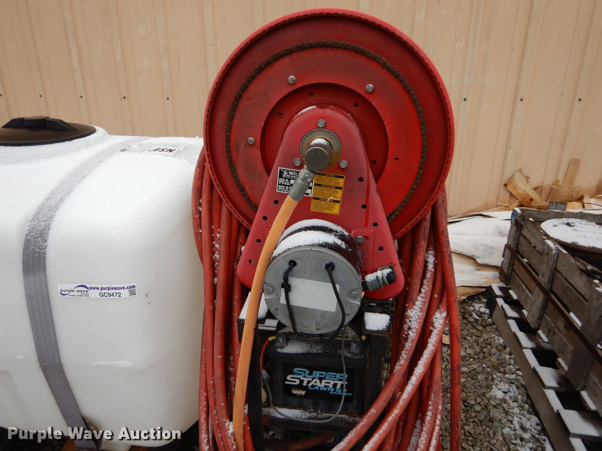 Purple Wave is selling a used Lawn and Garden in Illinois. This item is a Sprayer with the following: 90 gallon poly tank, Electric hose reel, Honda single cylinder gas engine, Skid mounted, Unknown operating condition