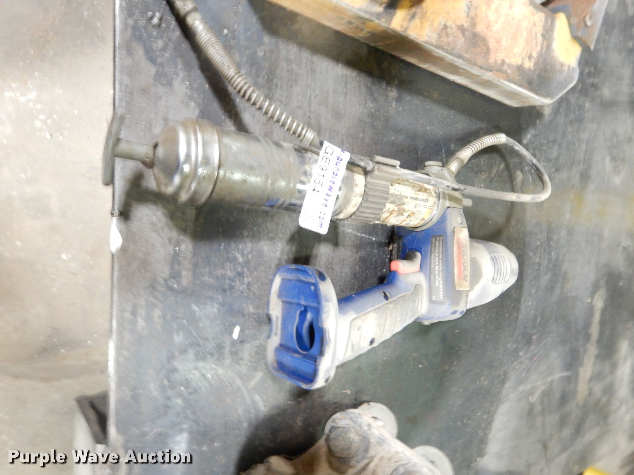 Purple Wave is selling a used Tools in Oklahoma. This item is a Tools with the following: Grease gun, Bolt-on pintle hitch, Unknown operating condition