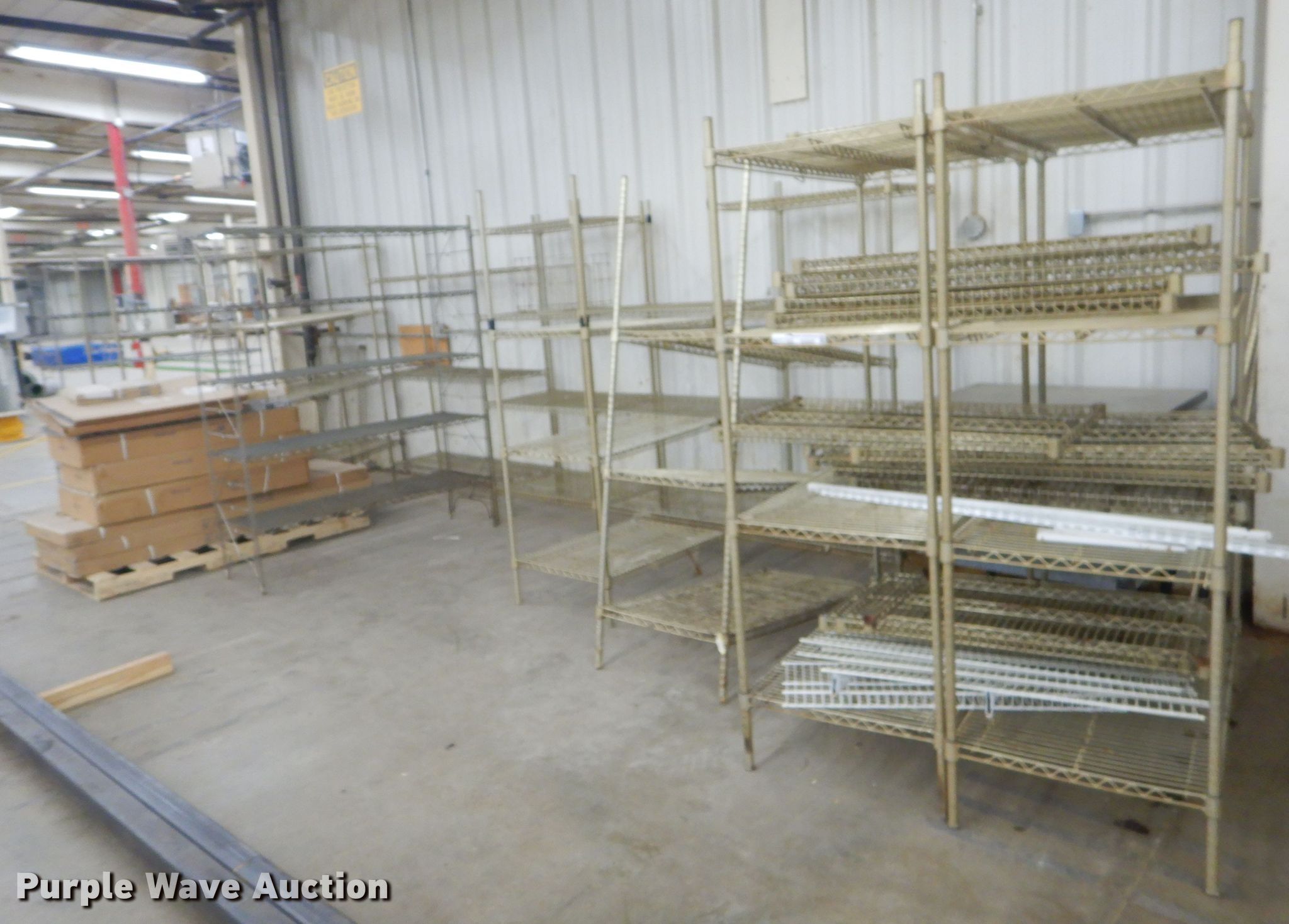 Purple Wave is selling a used Shelving and Storage in Kansas. This item is a Metal shelving with the following: (2) 18" x 5' x 6', (10) 2' x 47", Some still in boxes
