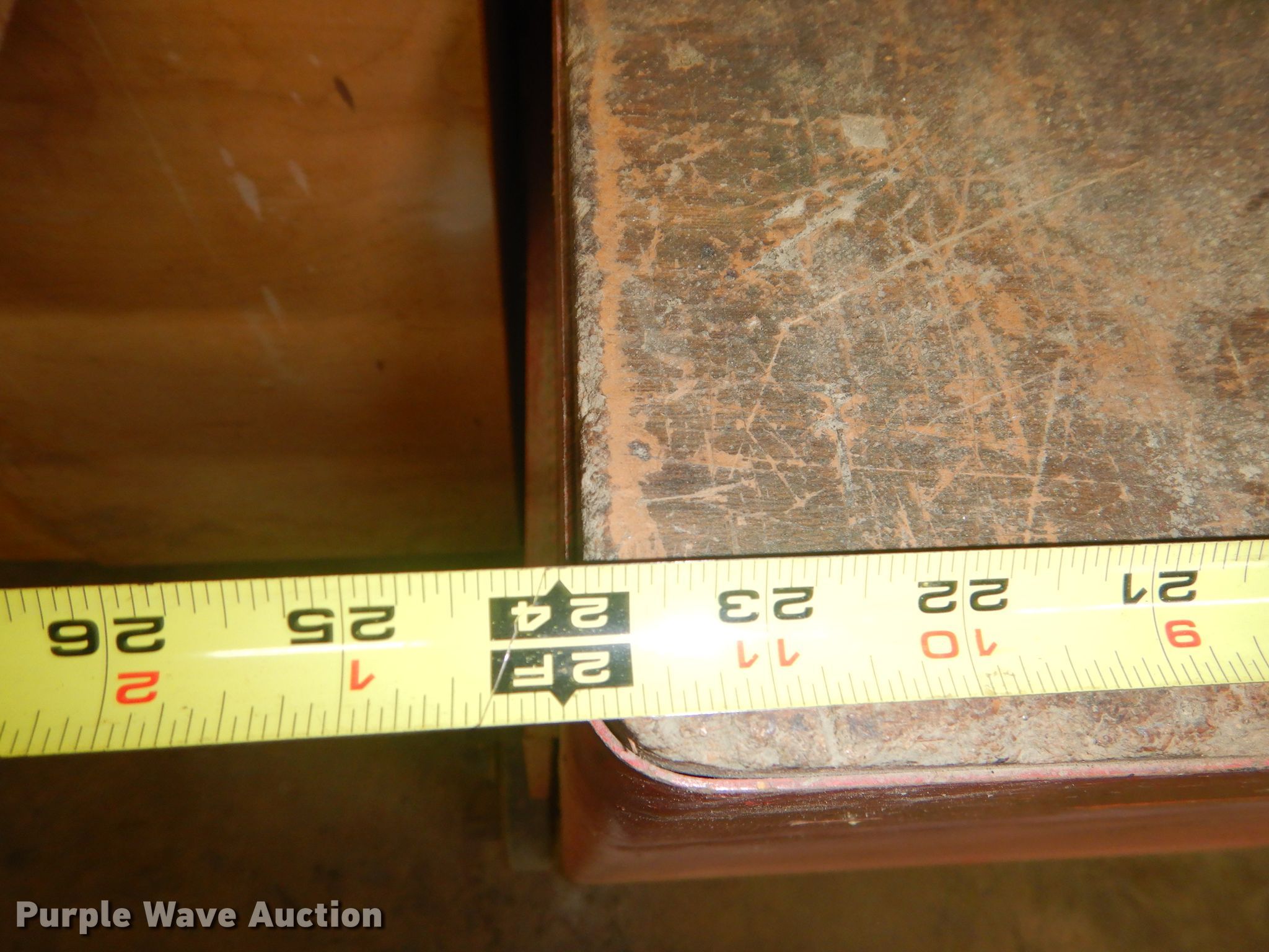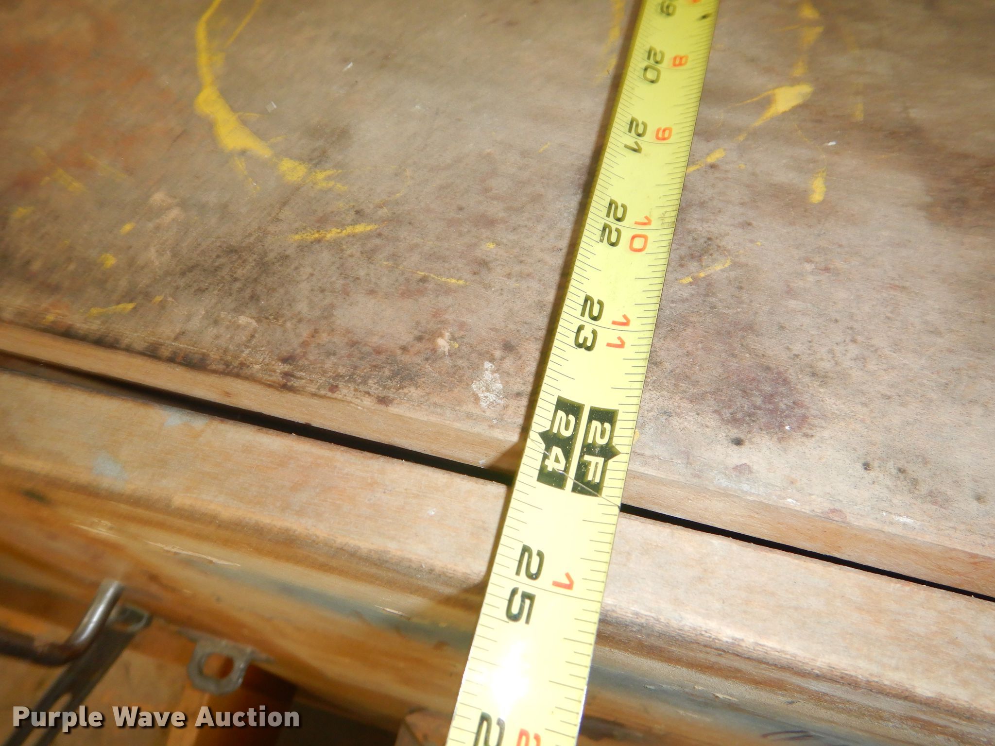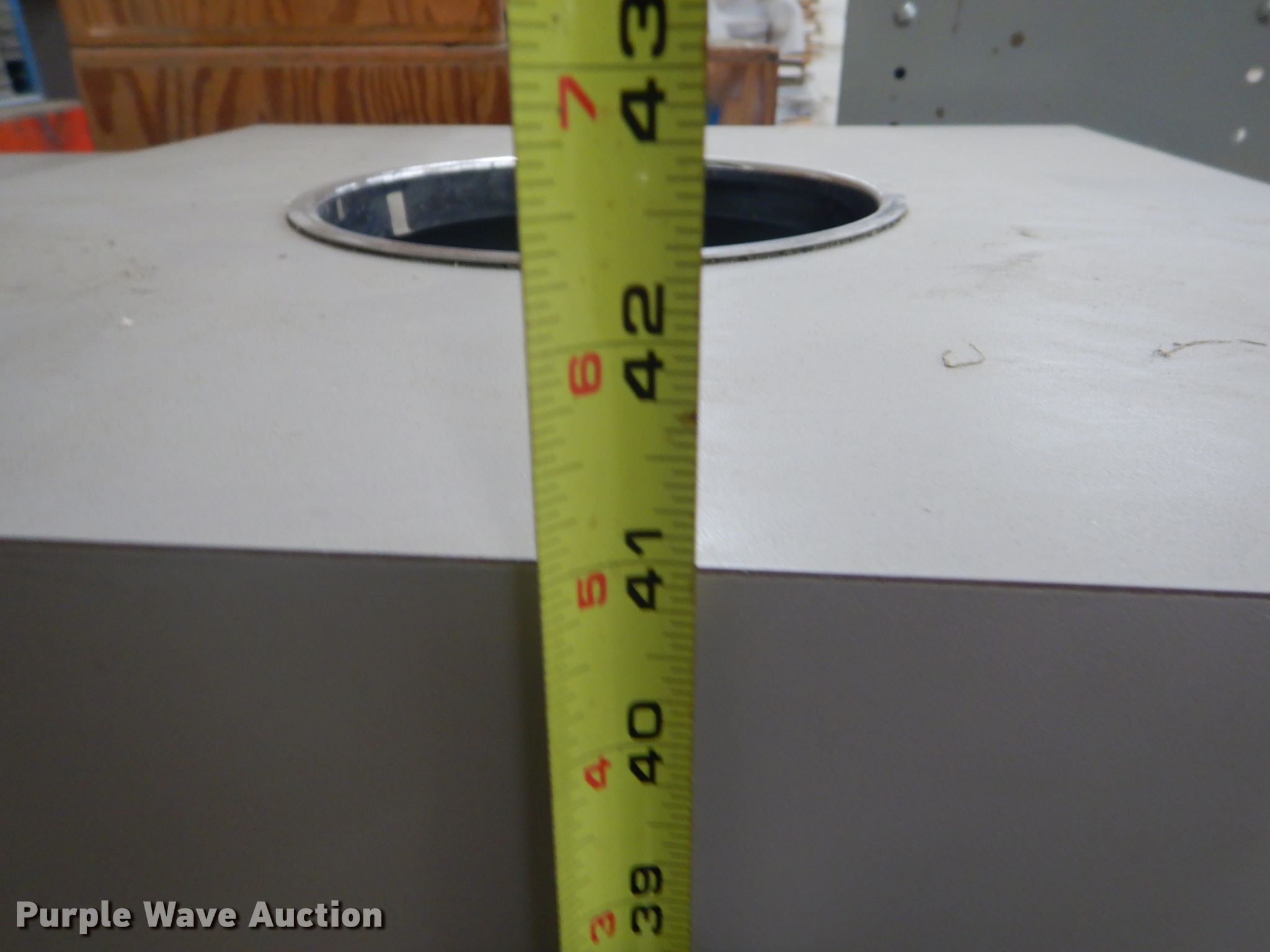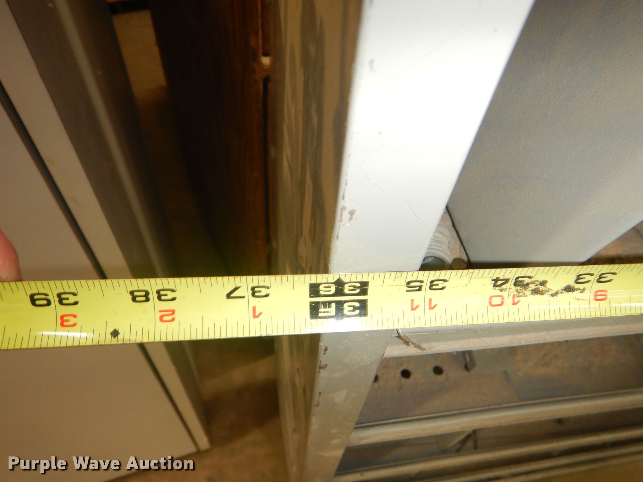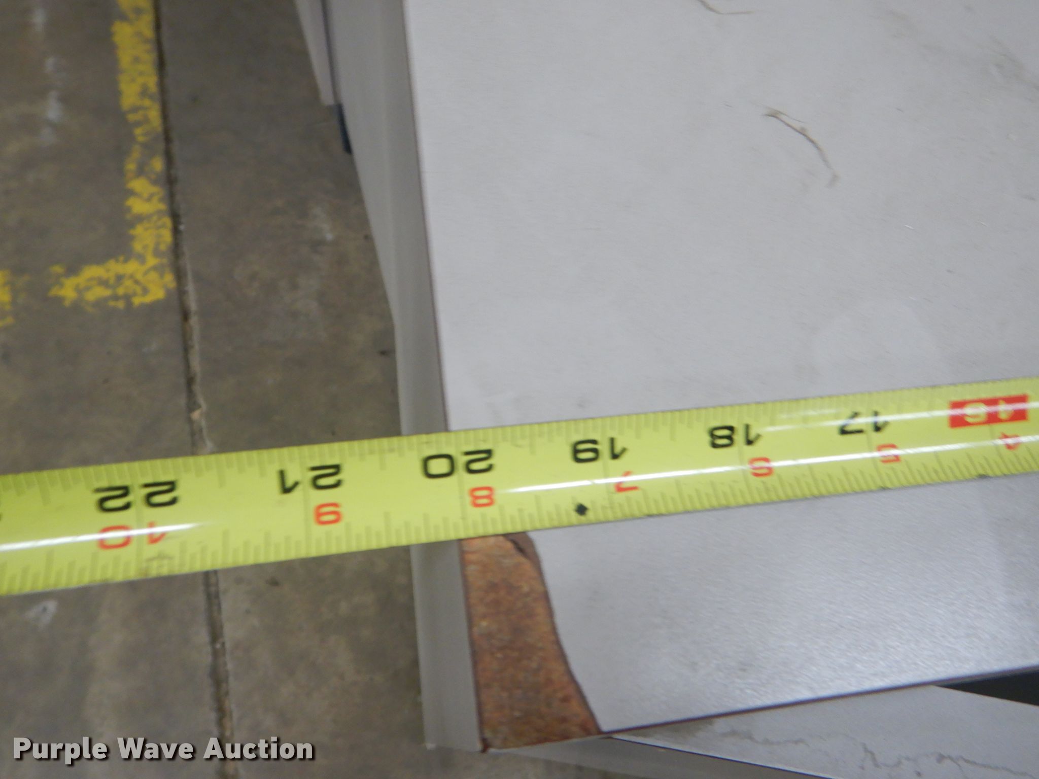 Purple Wave is selling a used Shelving and Storage in Kansas. This item is a Storage units with the following: Fluorescent light fixture, (4) additional bulbs, 6' x 2' x 43" wood cabinet, 2' x 45" seven drawer metal cabinet, Plastic cabinet, (45) drawers, One drawer missing, Wood cabinet, 2' x 3' x 51", (4) shelves, Lockable, Wood cabinet, 39" x 20" x 57", (24) drawers, Metal bin cabinet, 3' x 40", Assorted nuts and bolts, (5) trash containers, 20" x 20" x 41"