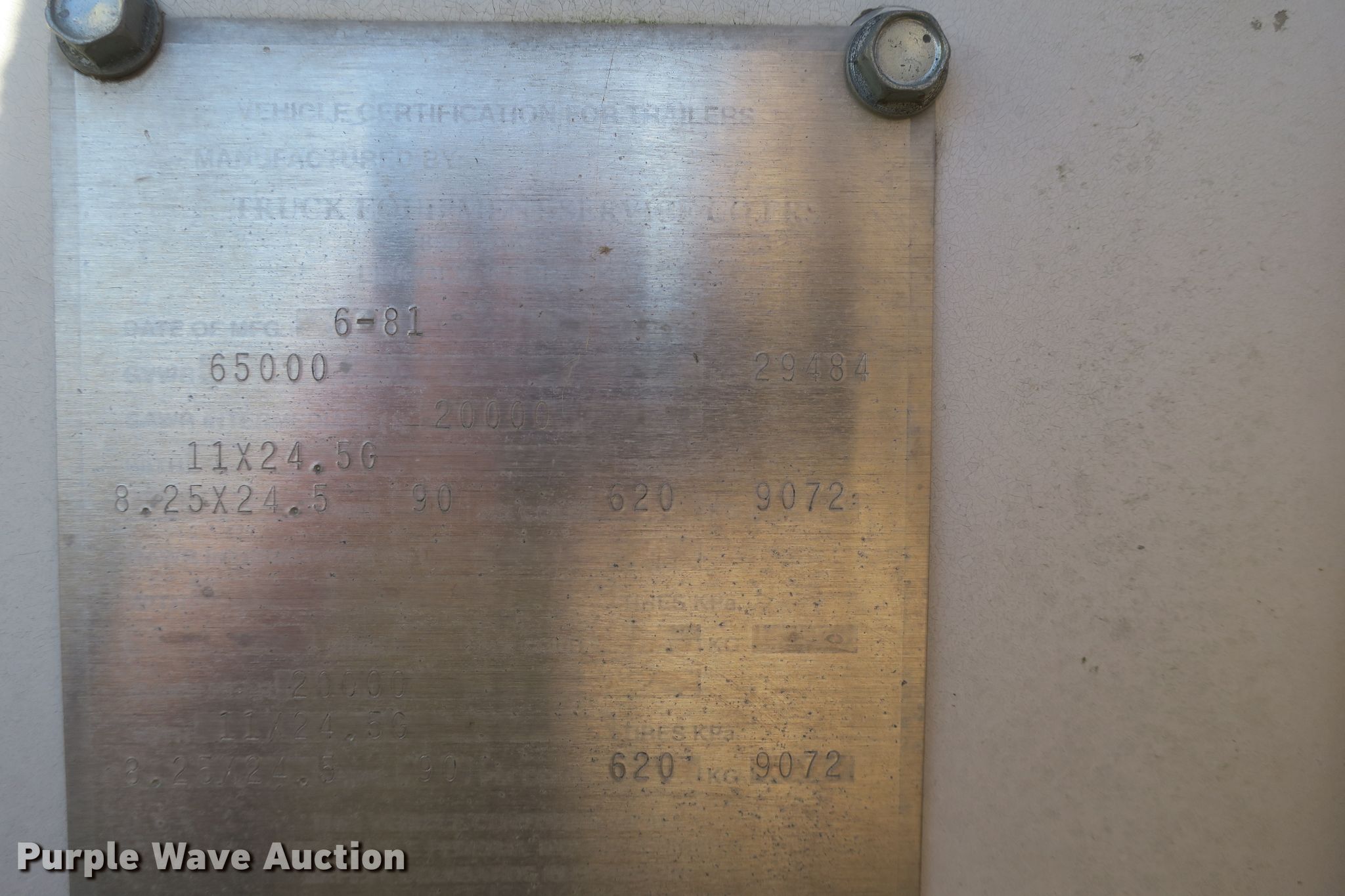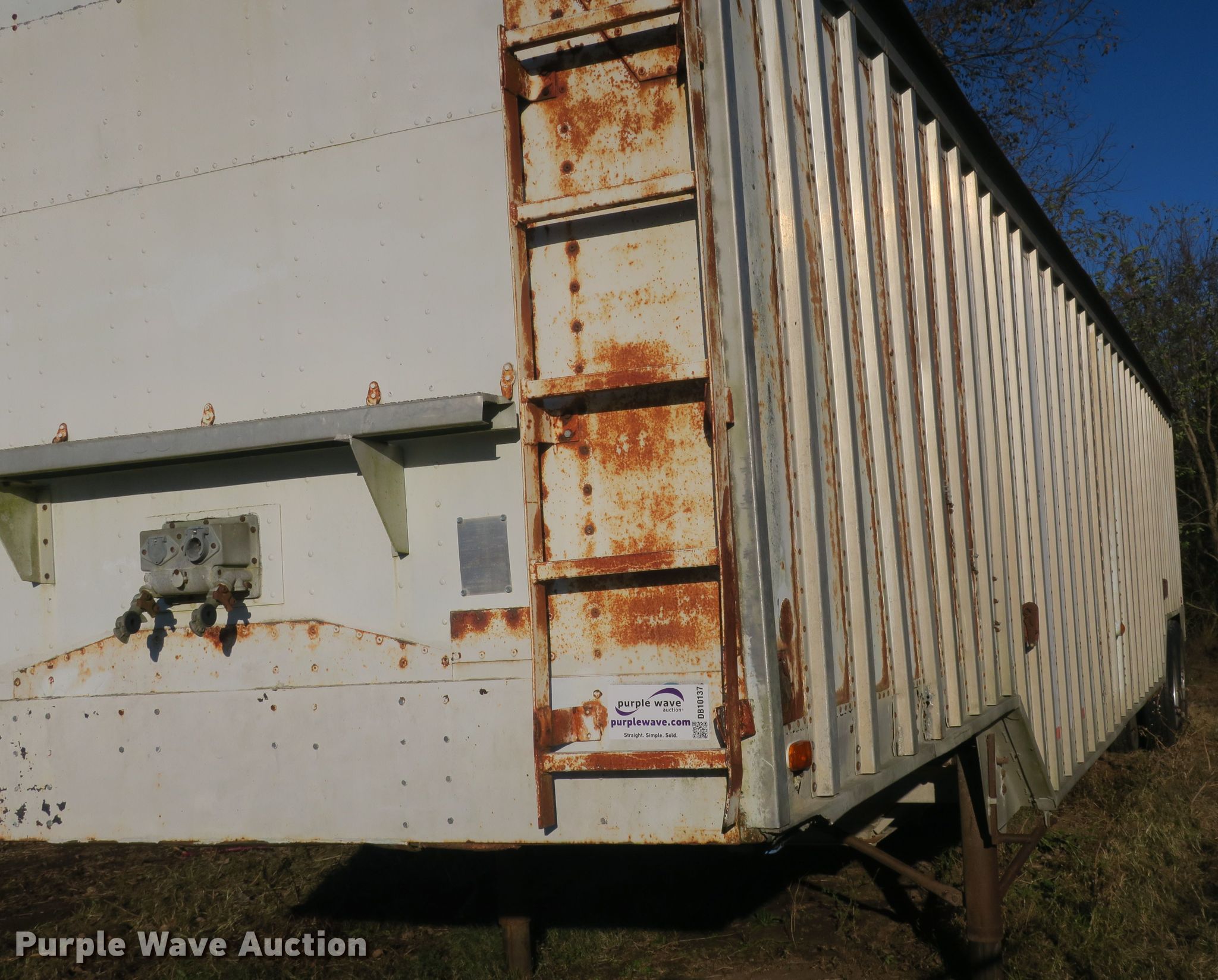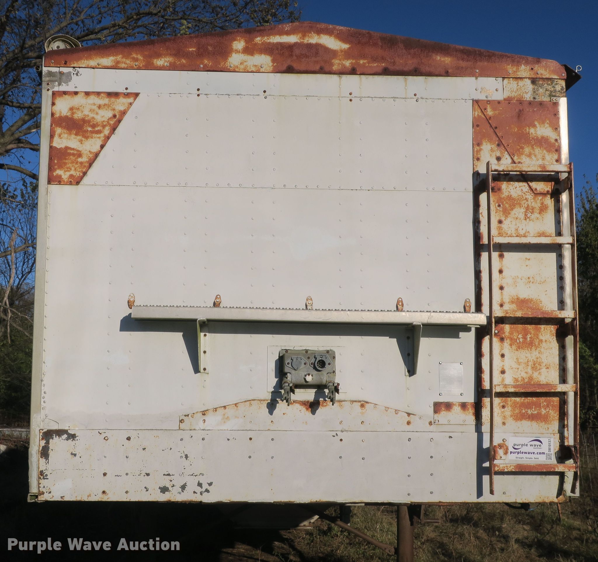 Purple Wave is selling a used Grain or Commodity Trailer in Missouri. This item is a 1981 Corn Husker 800 double hopper bottom grain trailer with the following: 42'L x 96"W overall, 80" side height, Manual trap gates, Roll tarp, Dual leg landing gear, Spring suspension, Air brakes, Tandem axle, Steel wheels, 11R24.5 tires, GVWR 65,000 lbs