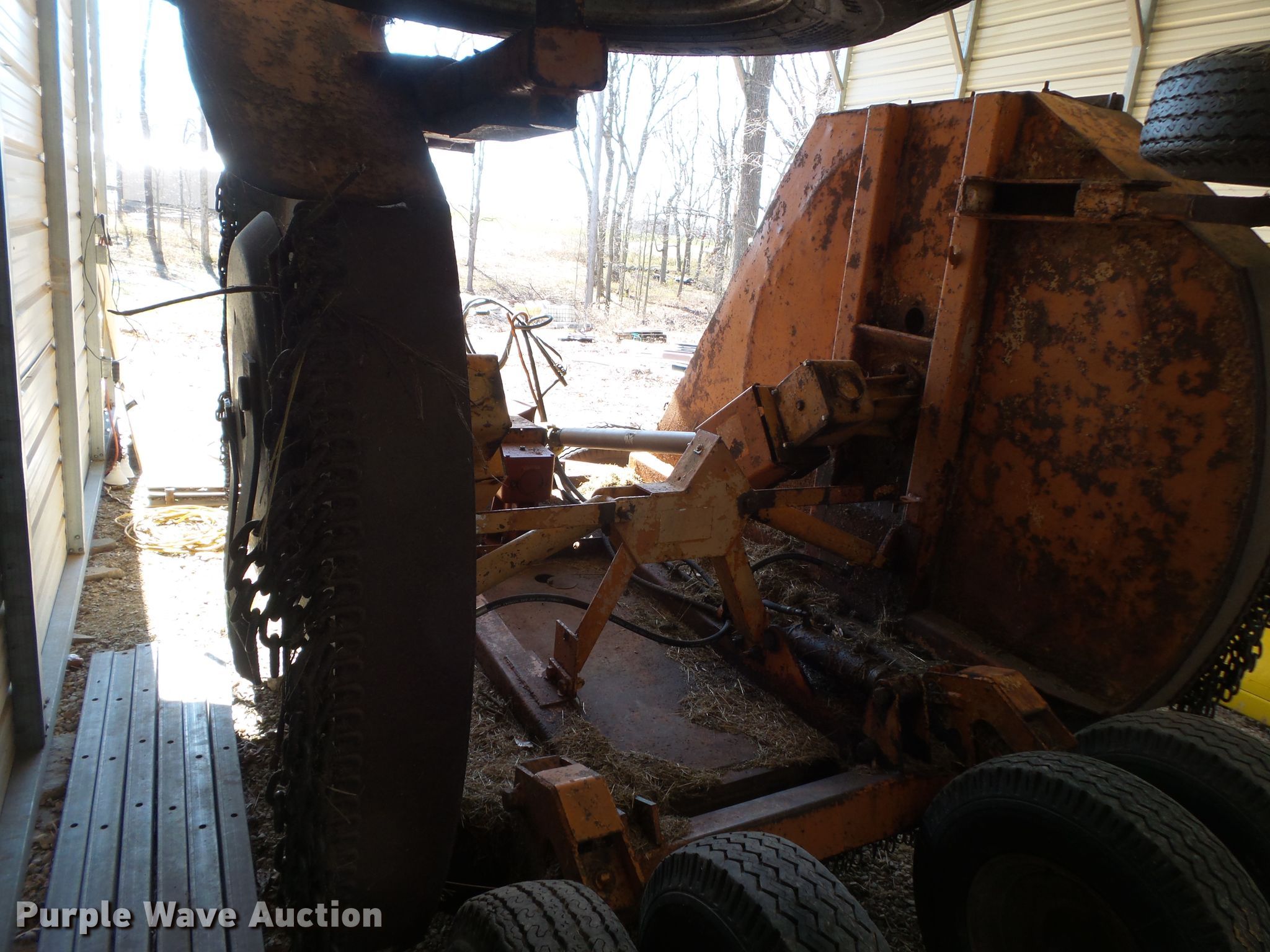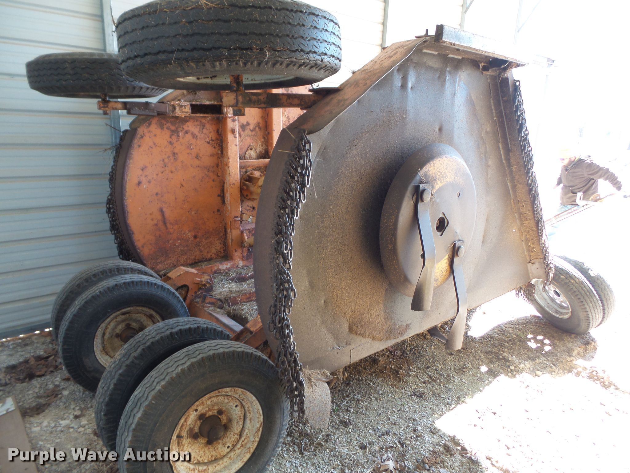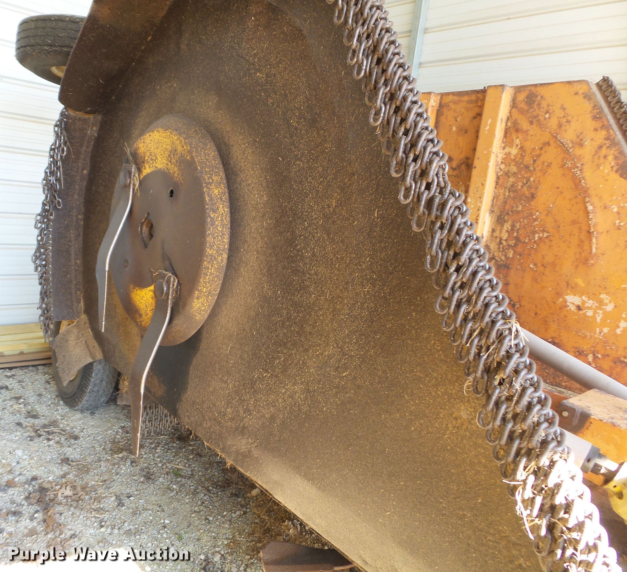 Purple Wave is selling a used Mower, Cutter, Shredder in Missouri. This item is a Batwing rotary mower with the following: 15'W, Hydraulic lift and fold, 540 PTO, 7.5-15 tires, Additional tires included