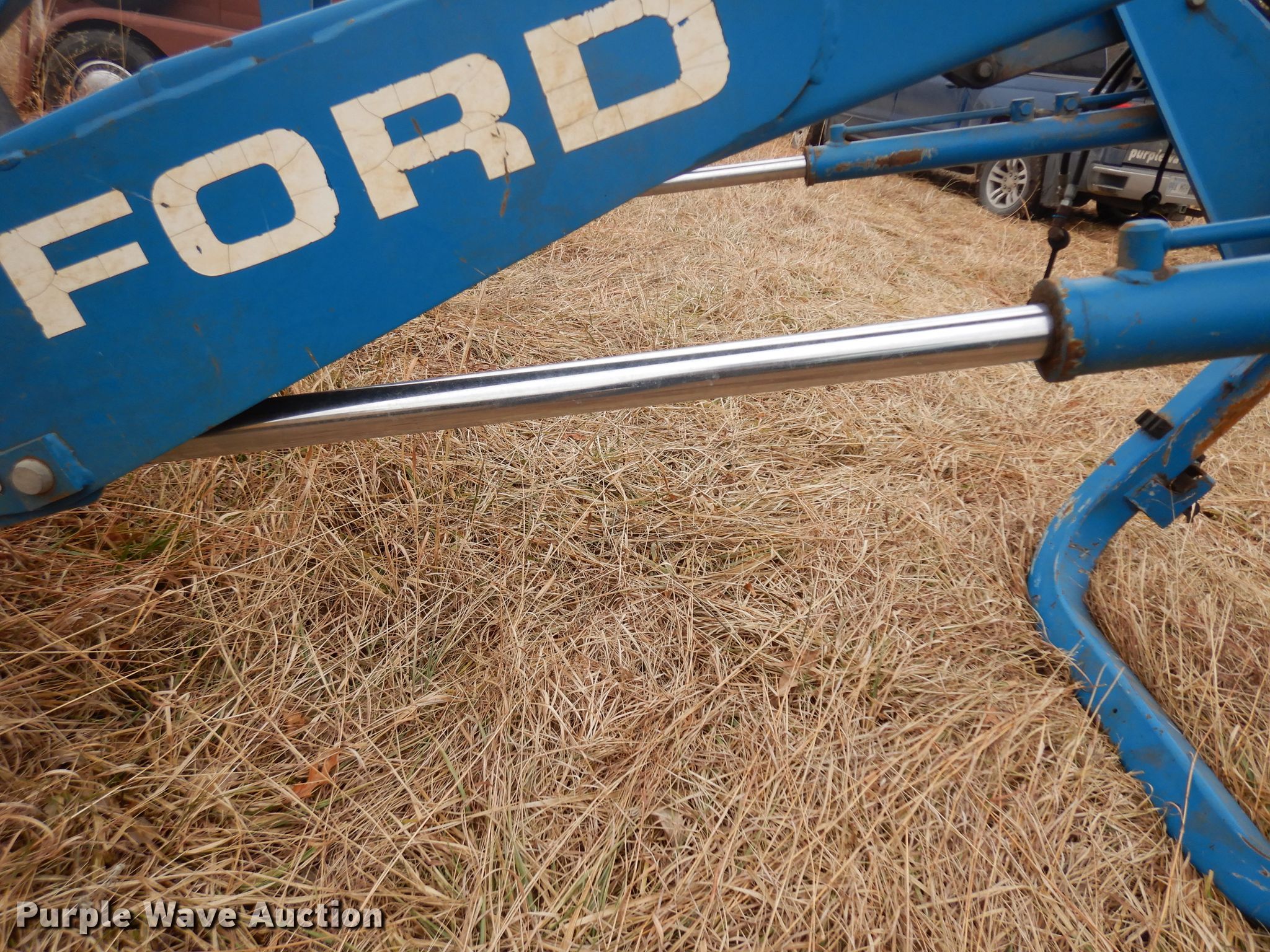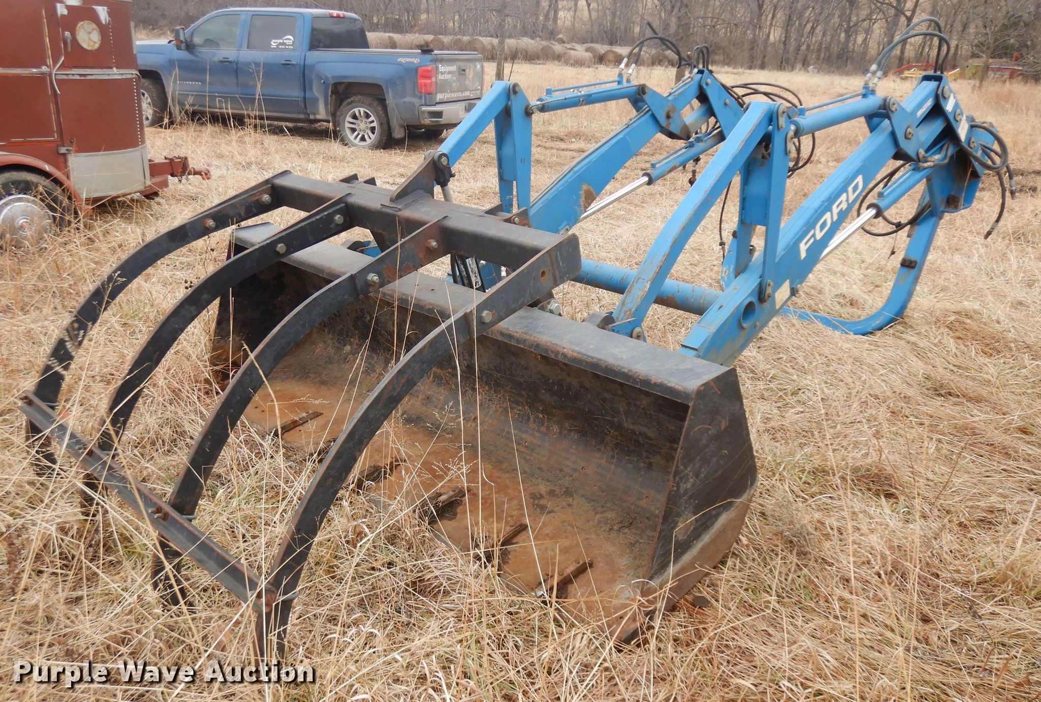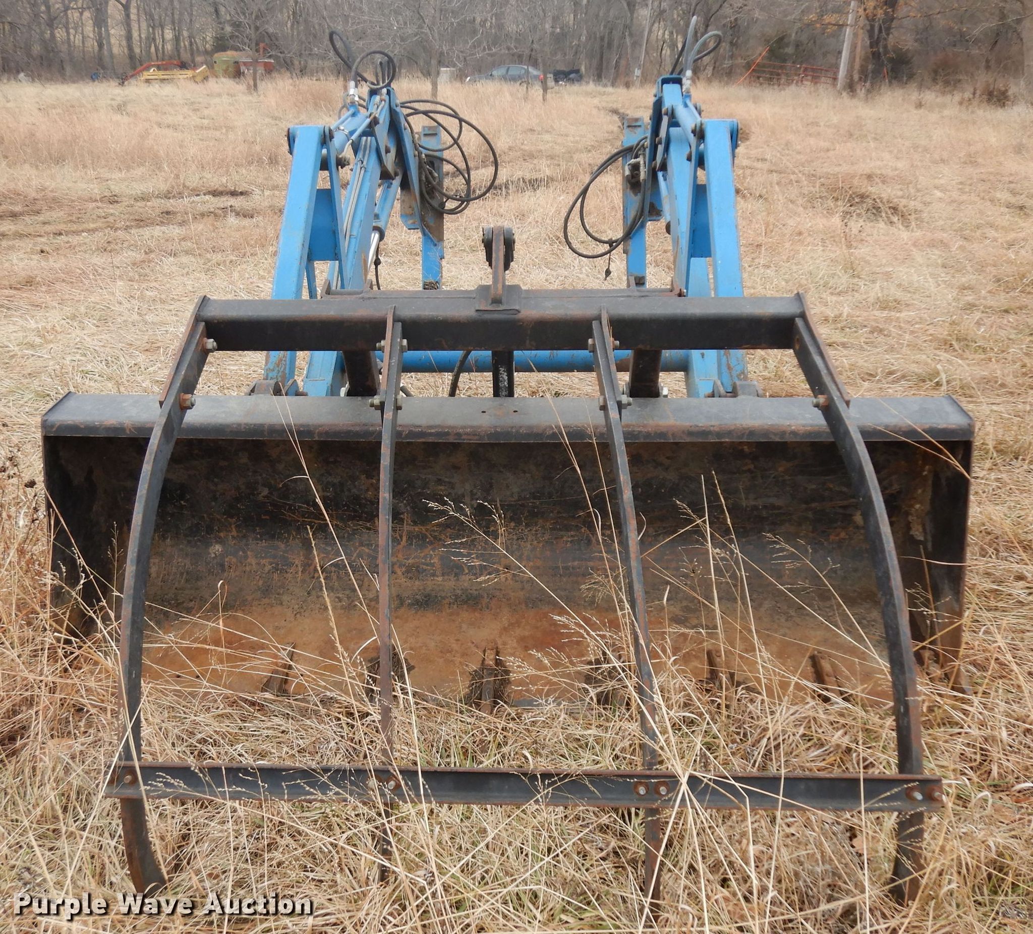 Purple Wave is selling a used Ag Tractor Loader or Attach. in Kansas. This item is a Ford 2360 loader with the following: 8'W bucket, Grapple, Quick attach