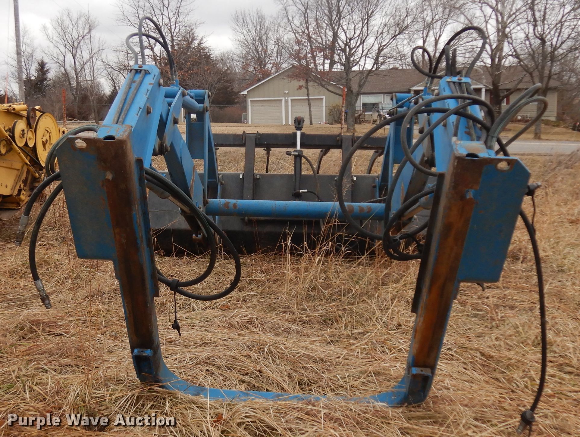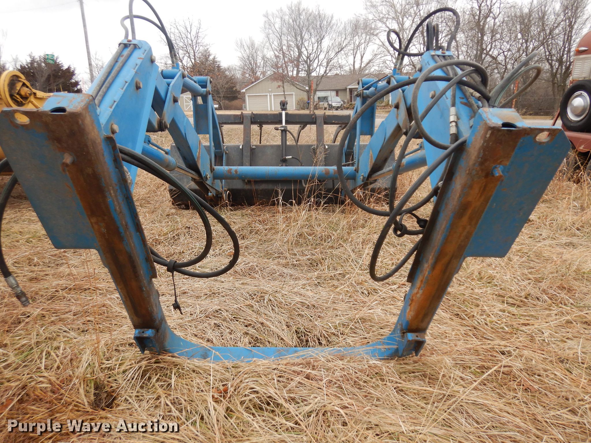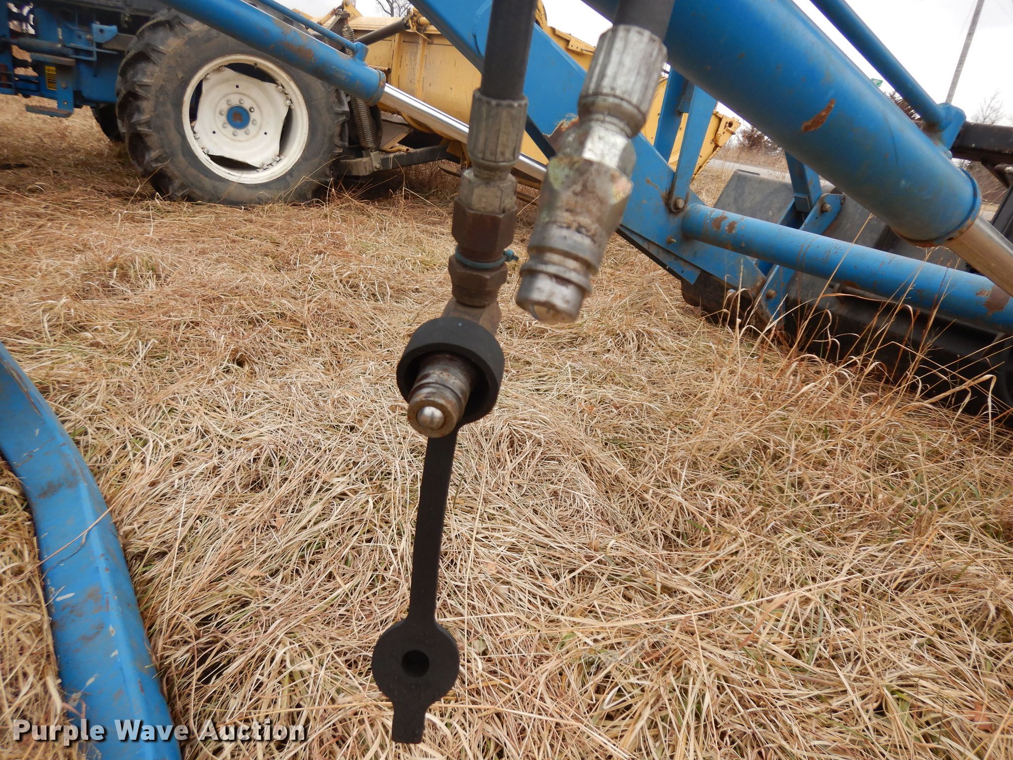 Purple Wave is selling a used Ag Tractor Loader or Attach. in Kansas. This item is a Ford 2360 loader with the following: 8'W bucket, Grapple, Quick attach