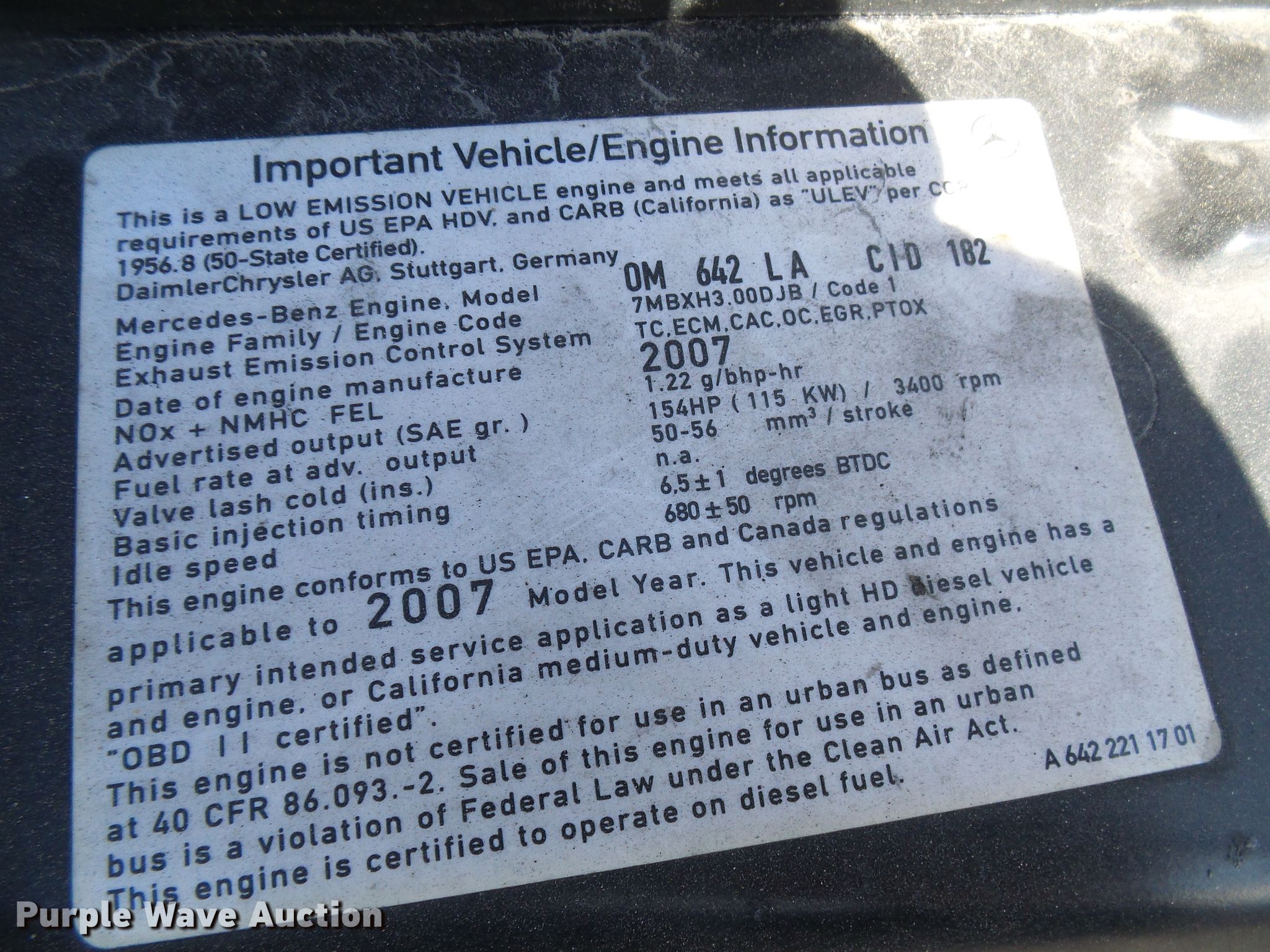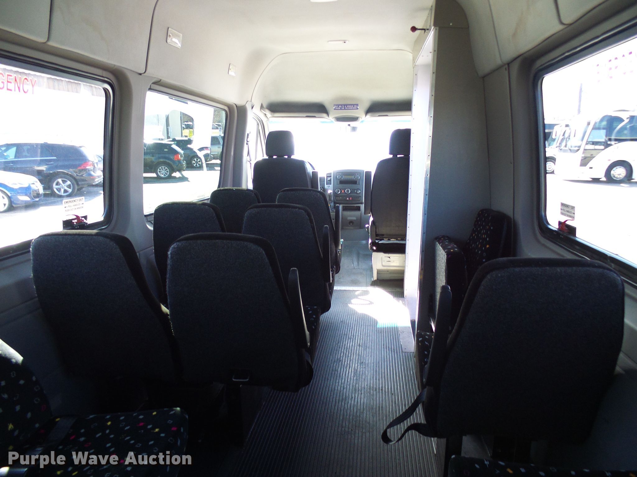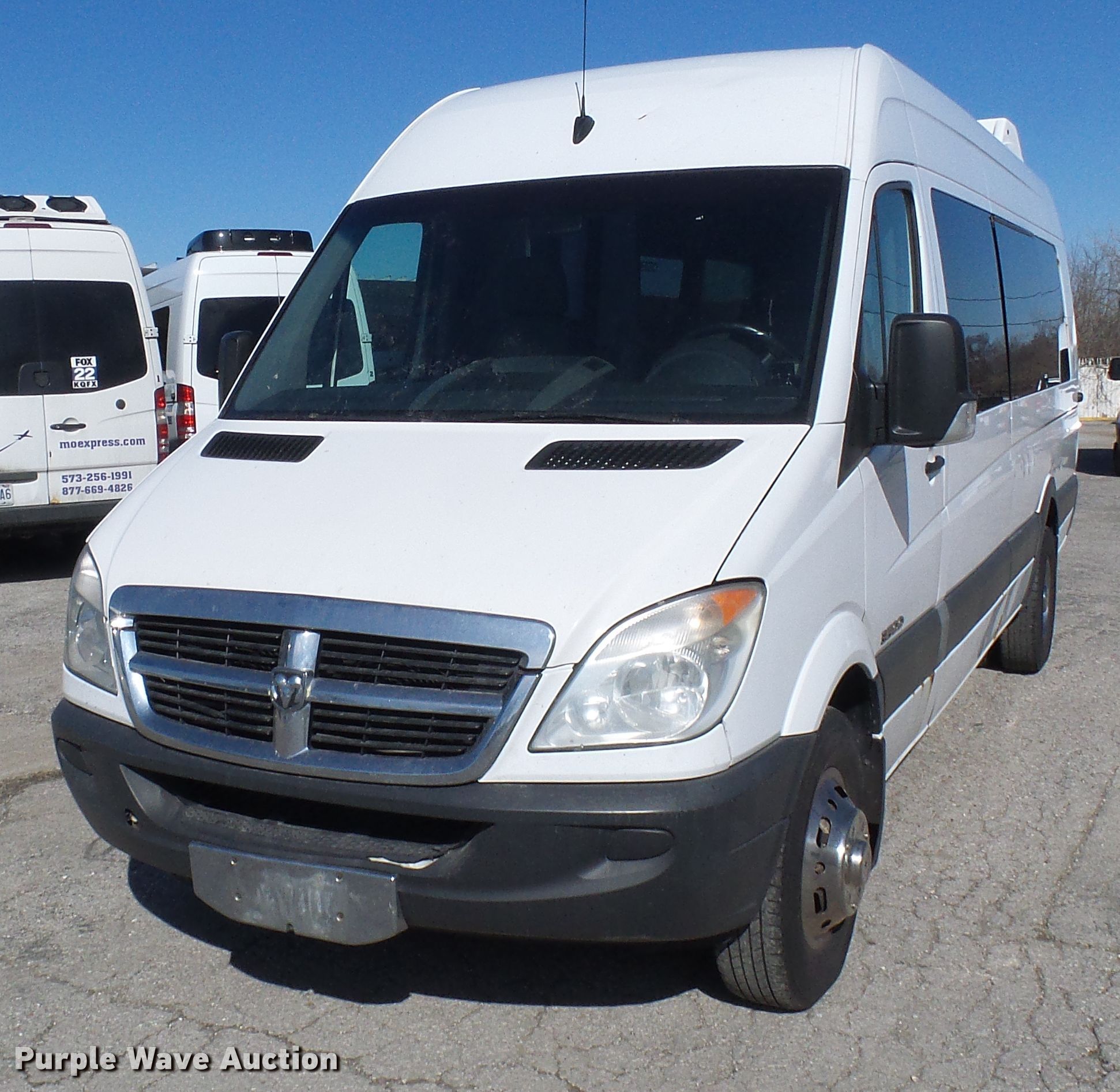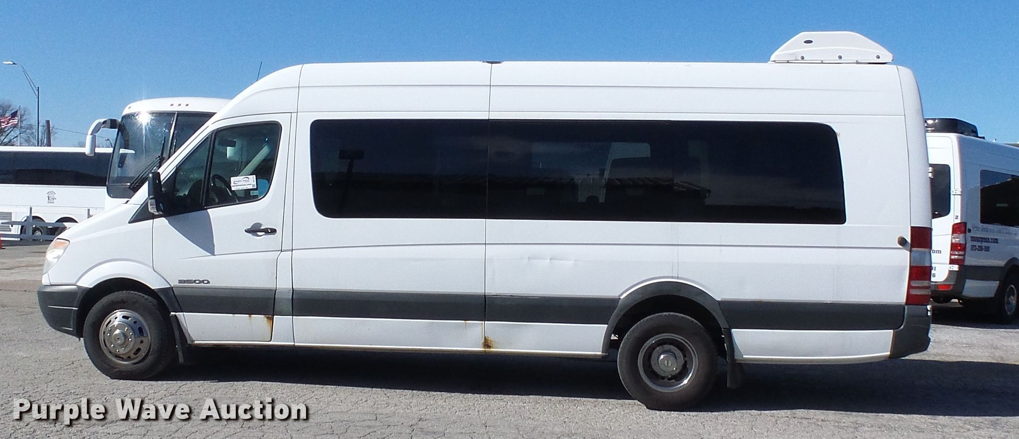Purple Wave is selling a used Bus in Missouri. This item is a 2007 Dodge Sprinter 3500 shuttle bus with the following: 659,566 miles on odometer, 3.0L V6 DOHC 24V diesel engine, Automatic transmission, Single axle, AC and heat, 14 passenger capacity, Spring suspension, Hydraulic brakes, 215/85R16 tires