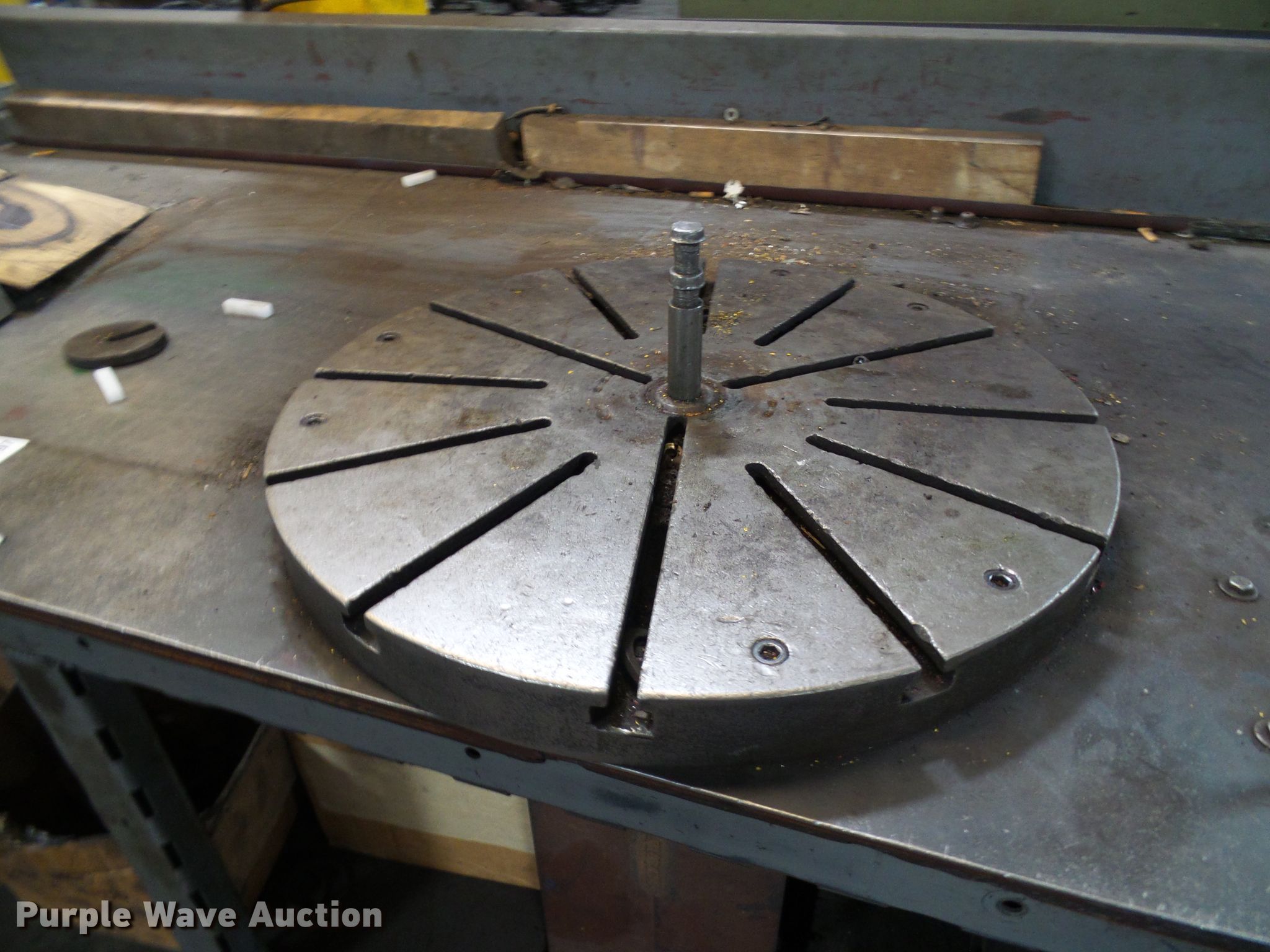 Purple Wave is selling a used Machine Shop Tools and Equip. in Missouri. This item is a Hydraulic press with the following: Electric motor, 86"L x 40"W table, 24" table top